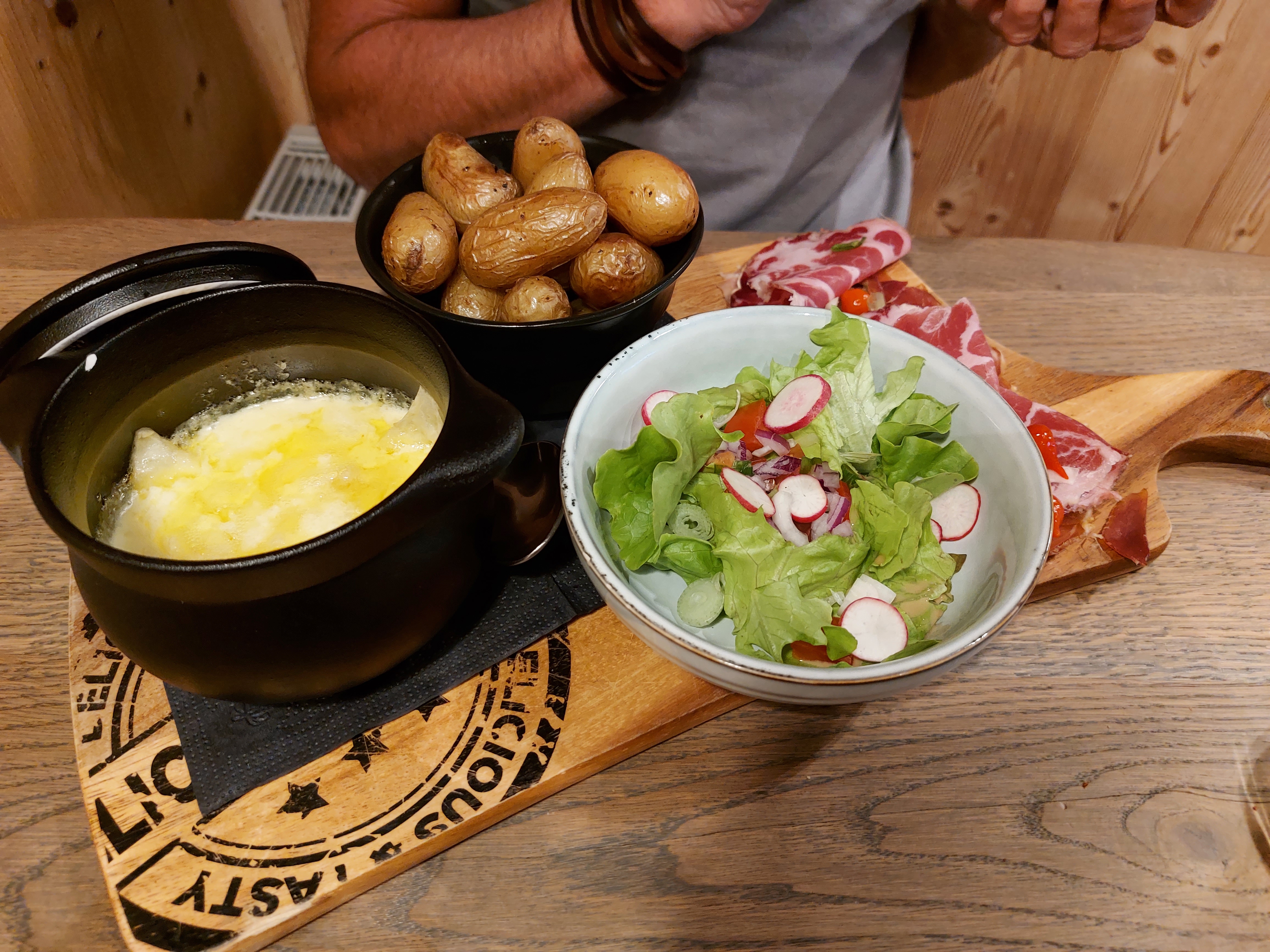 Plus comme avant !! Réservation(après négociation car le patron refuse les resa pour les planches 🤦🏻♀️Alors que le resto était loin d’être plein) pour 12 personnes a 18h30 ,en arrivant nous avons installé nous même nos tables car pas un serveur ! Nous commandons tous des boissons pas une cacahuète RIEN !!! 9€ le mojito je pense avoir droit à 3 cacahuètes 😝quand même ! L’année dernière il était servi des petits toasts avec les apéros… bref les planches de charcuterie et fromage arrivent après un long moment d’attente elles sont pas mal malgré le prix un peu excessif ! Je dois aller chercher des petites serviettes car rien sur la table, les serveurs sont inexistants …les commerçants des carroz en été se foutent un peu de la clientèle !!