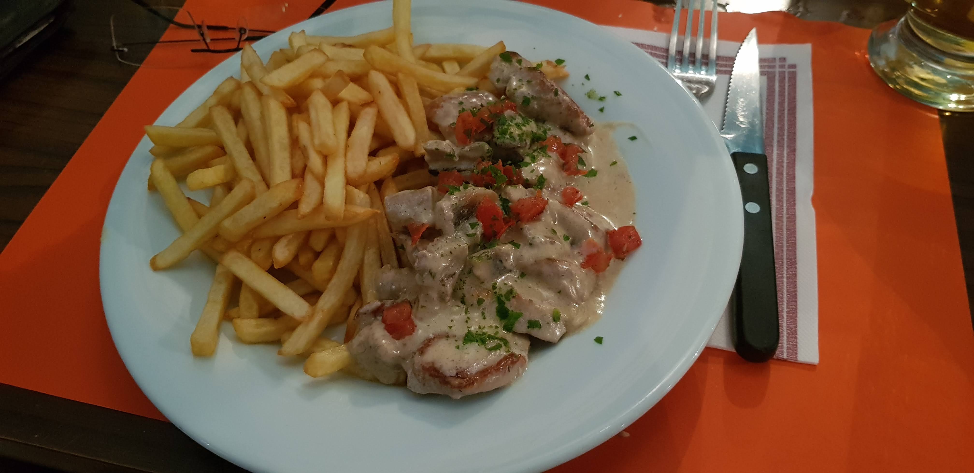 La déco est un peu rebutante car elle est probablement changée très souvent. Nous sommes arrivés en octobre et le restaurant avait une ambiance Oktoberfest. Le service était sympathique et rapide. A mes yeux trop vite. J'ai commandé du bœuf mi-saignant avec une sauce aux champignons et quelques accompagnements. Le bœuf était excellent et avait la sauce à la température idéale et les accompagnements étaient plutôt chauds et très pâteux, probablement à cause du réchauffage ou du micro-ondes. Parfois, un service rapide ne sert à rien.