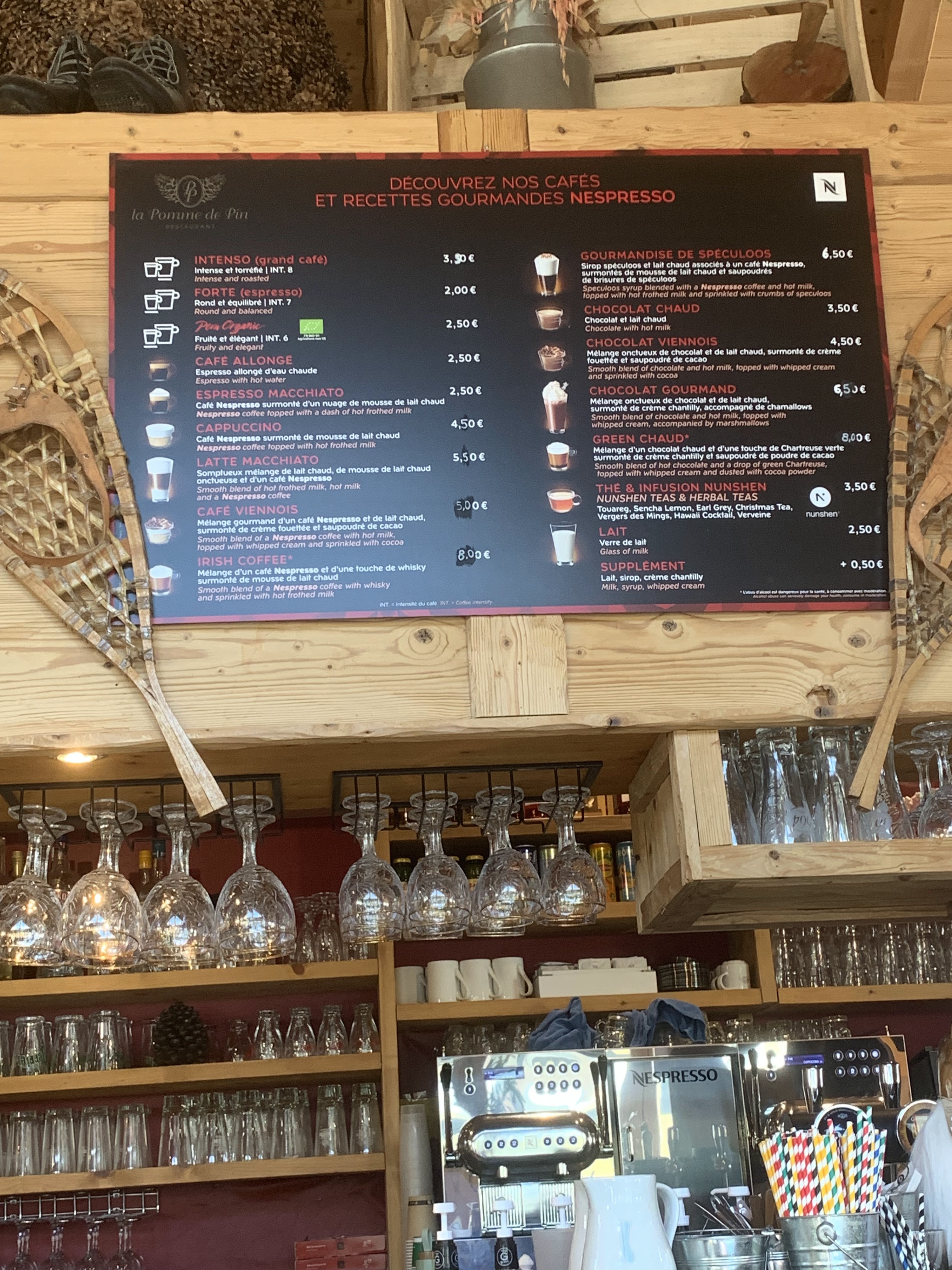 Au pied des pistes pour boire un coup ou manger 👍 Une palette de boissons chaudes, cafés, chocolat bien sûr mais aussi liégeois et autres à découvrir.