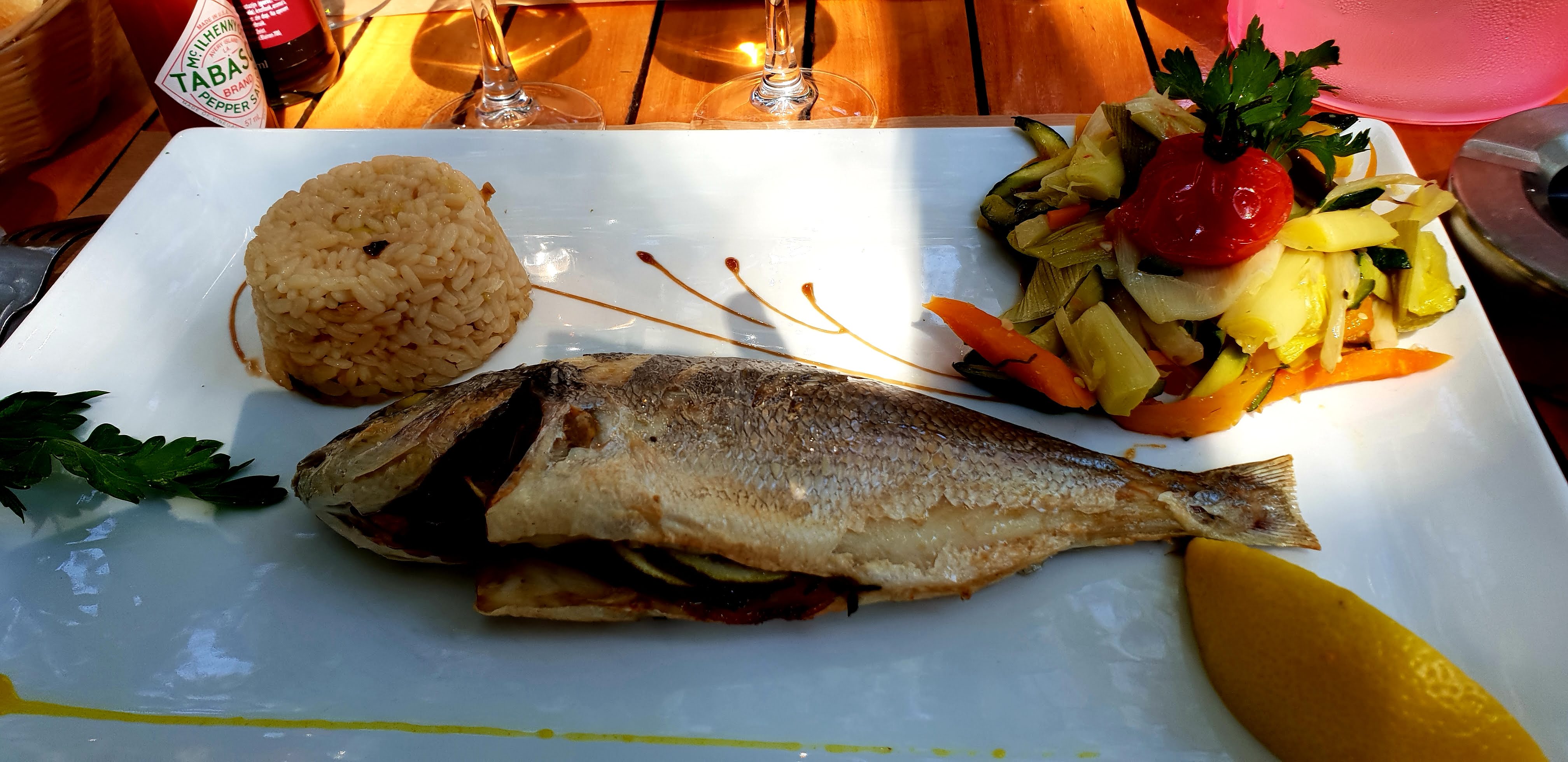 Très bonne papillote de dorade mais aurait pu être plus généreuse. Par ailleurs le voiturier n'est pas du tout gentil, il nous a levé les essuies glaces car nous sommes allés deux heures à la plage après manger! Si je le recroise il va m'entendre