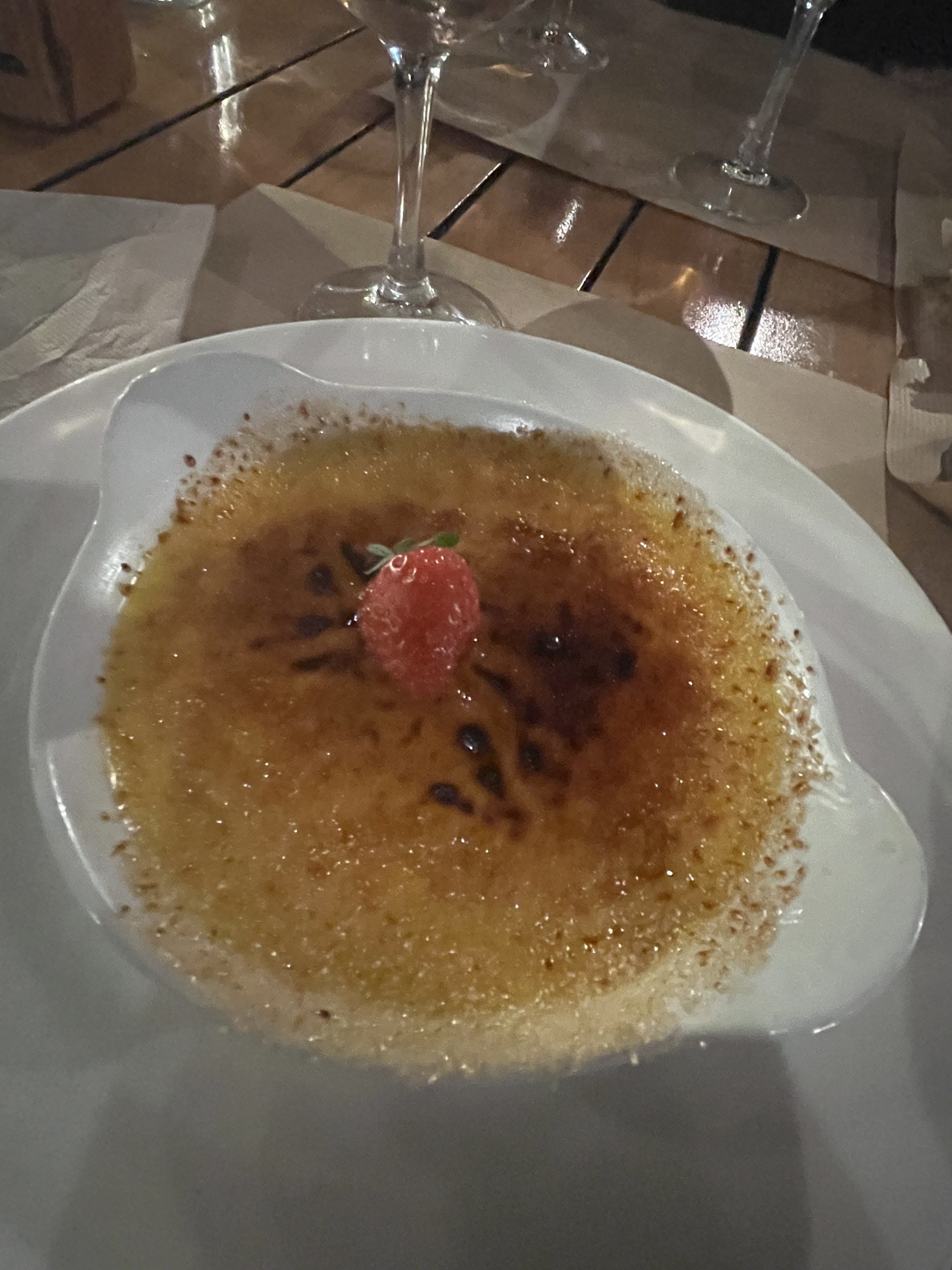 C'était un ravissement pour les papilles... Parfaitement cuit, chaque mets étaient un pure délice. Nous nous sommes perdus dans un monde de saveur grâce à leurs pâtes aux crustacés et à leurs desserts. Pour moi ce fut un mouelleux et pour ma compagne une crème brûlée... Malgré le monde le personnel était souriant et tres bien organisé. Le seul bémol serait le vent qui a commencé à violemment soufflé mais ça ce n'est pas du fait de cet établissement 😉... En tout cas, nous reviendrons volontiers comme chaque années ! ❤️♥️❤️♥️