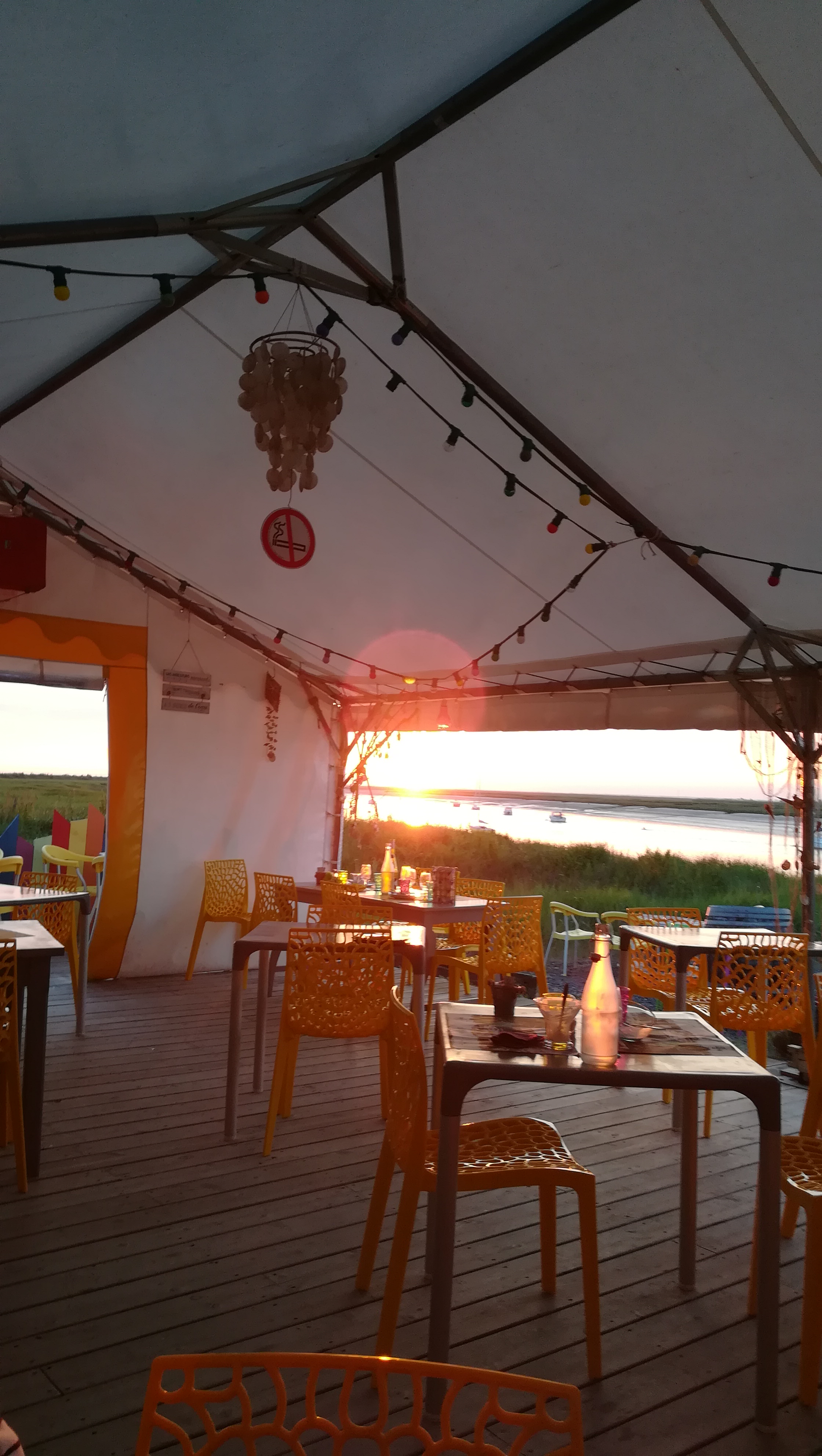 Lieu magique, face à l eau, très agréable, tables à l extérieur, atypique. Les patrons très accueillants, bonne cuisine. Y aller en soirée pour voir le coucher de soleil