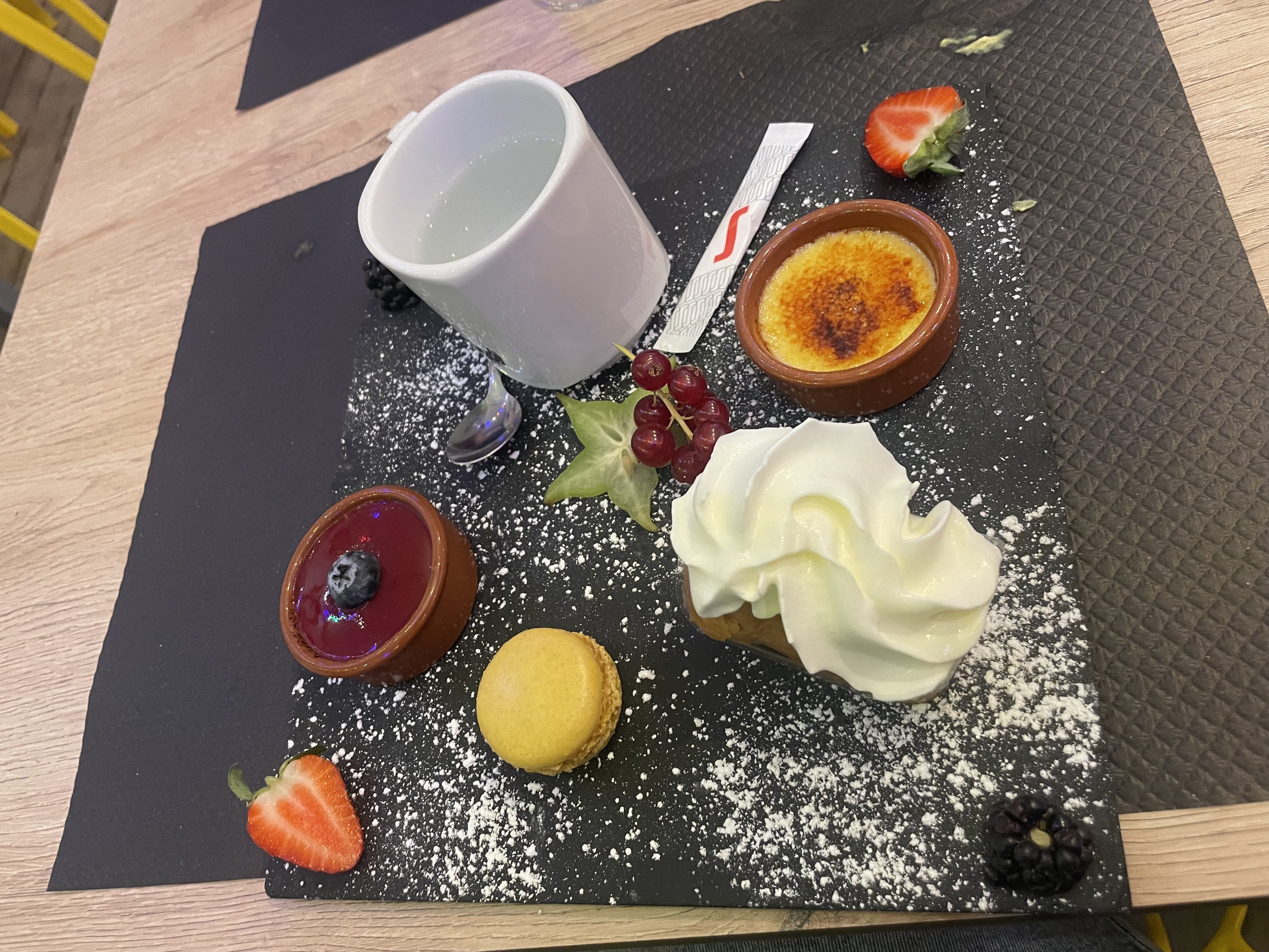 Vue sublime sur le port, super calme sa fait du bien. Le plateau de fruit de mer exellent moules au roquefort très bonne et l'incontournable café gourmand super merci encore pour l'accueil chaleureux de cette équipe de jeune bien dynamique 😁