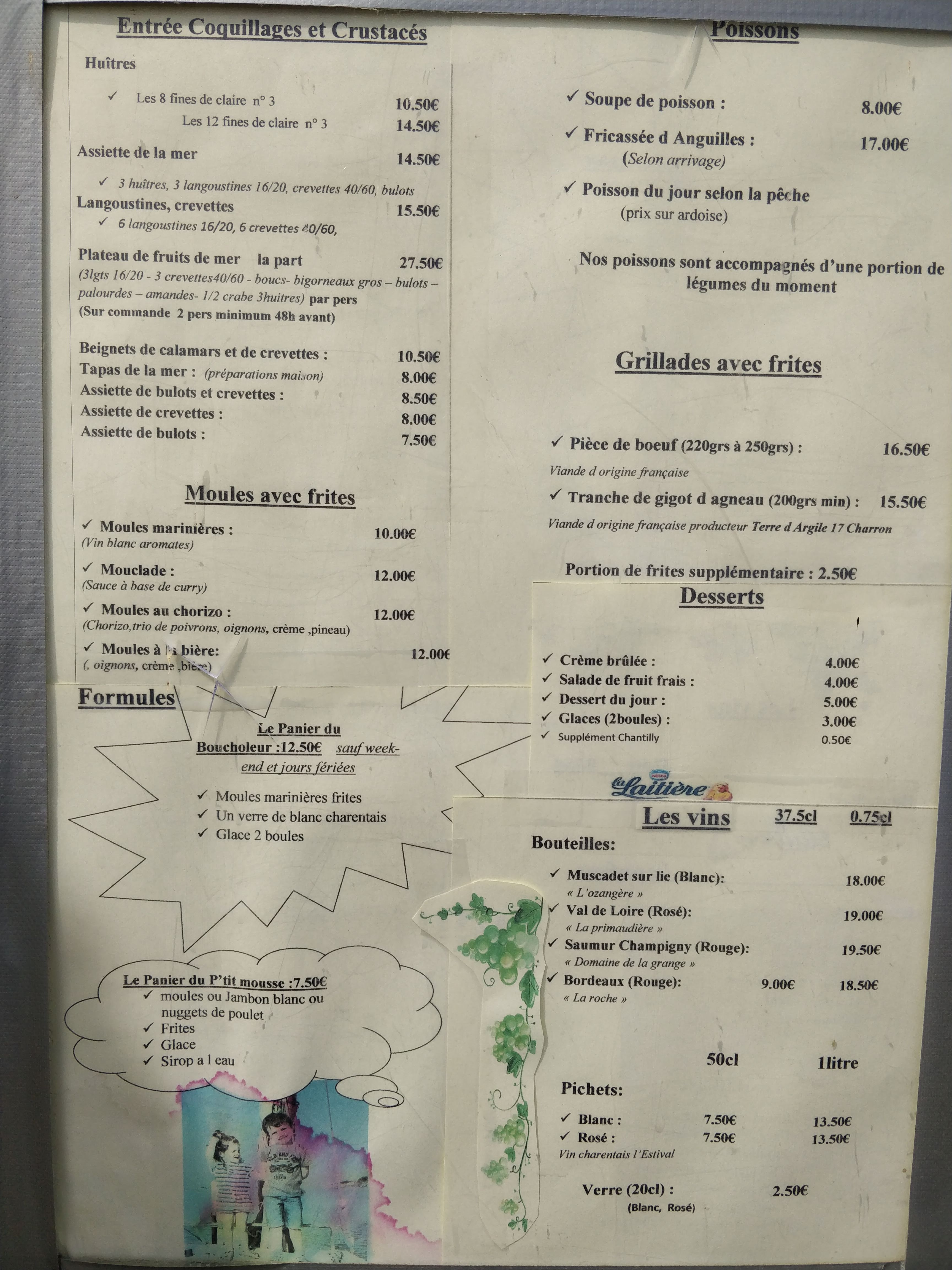 soyons clair, on y va pas pour le cadre, bien qu'il y ai pire comme environnement. L'Accueil est sympathique, cuisine simple des produits de la mer, assiette bien garnie et plat bien préparé, produits frais le service est correct. Si vous voulez vous régaler d'une bonne mouclade, c'est là.