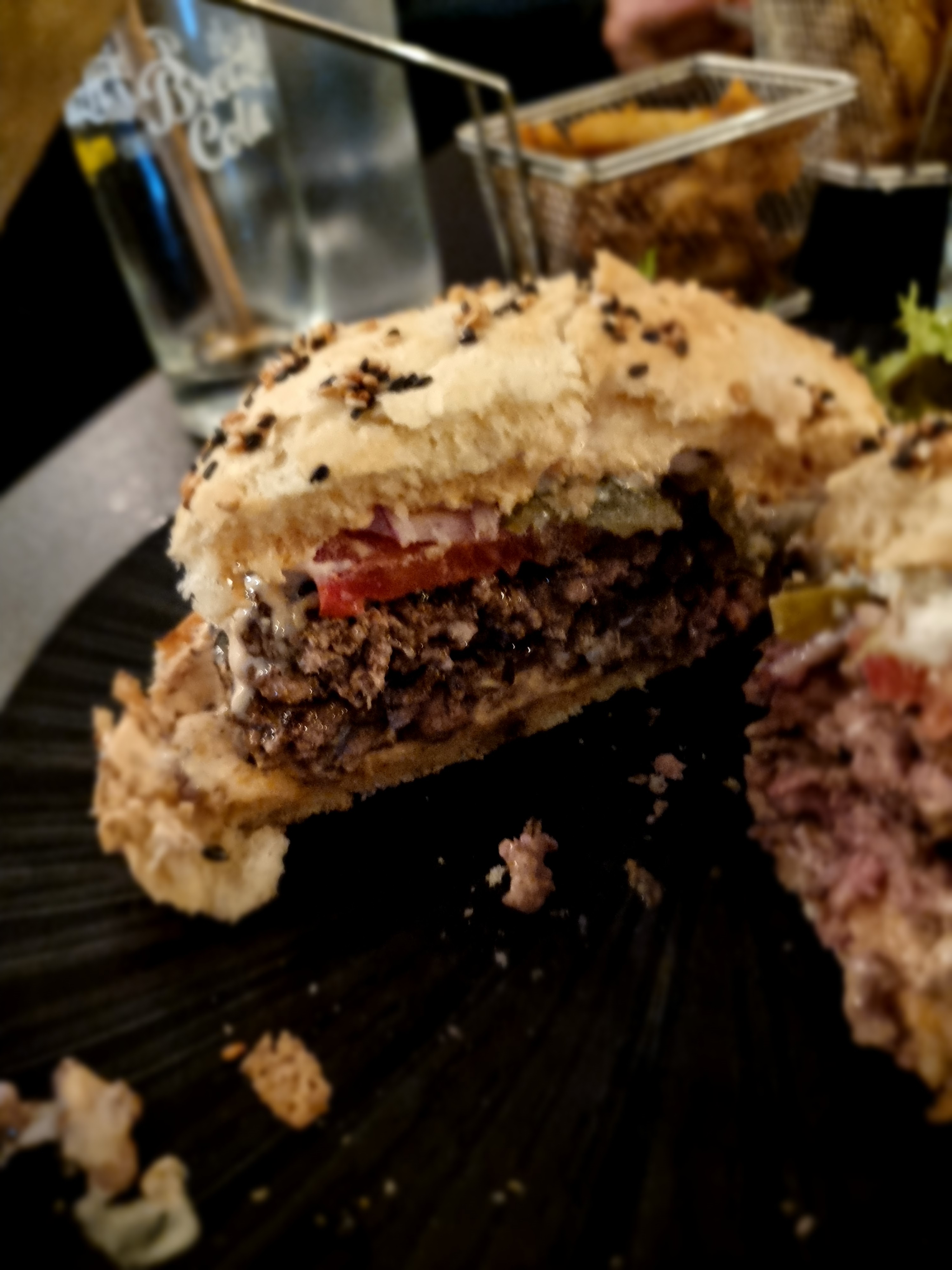 Burger moyen, pain burger partait en miettes,pas de goût, dommage.