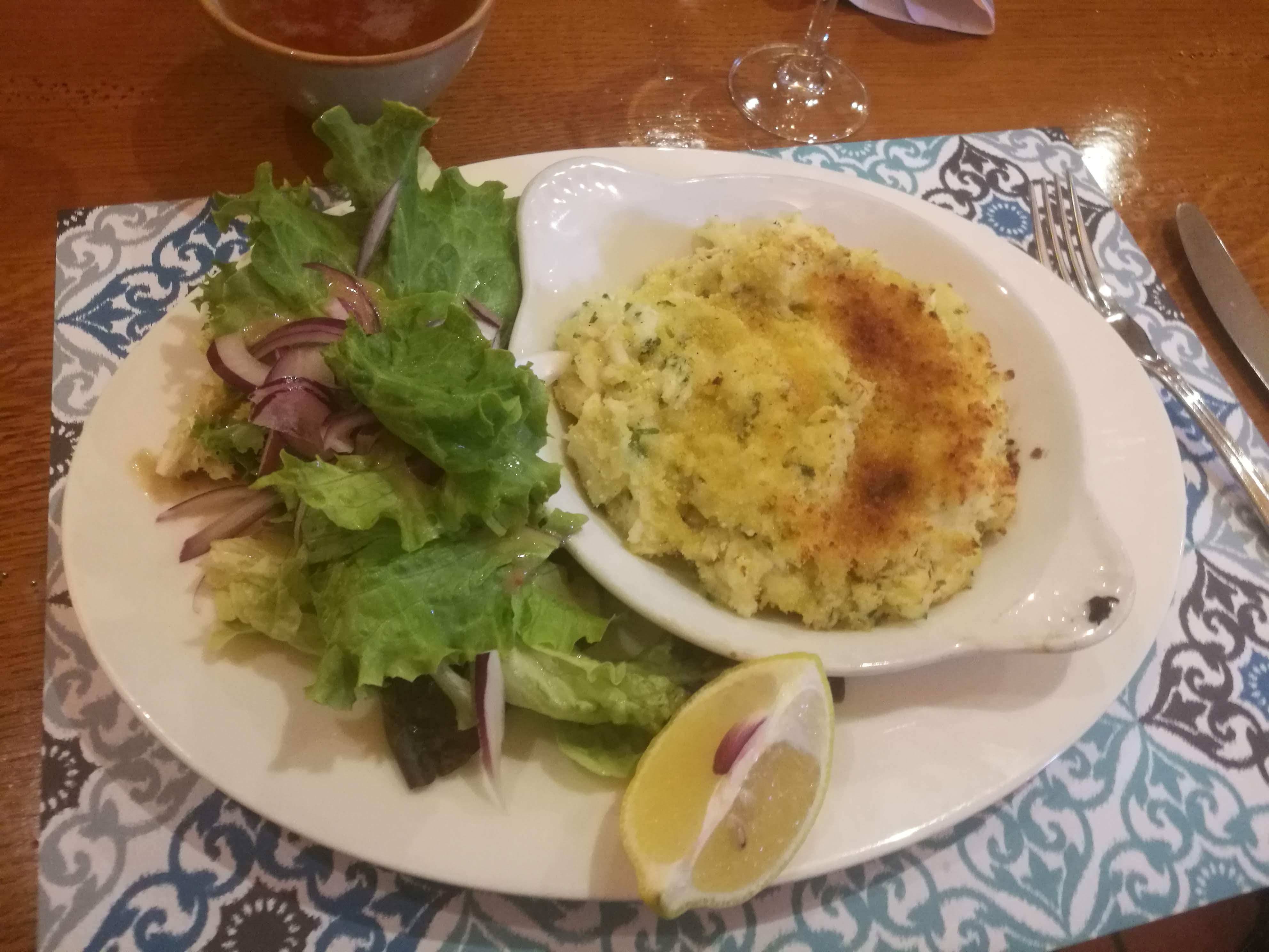 Nous avons pris plusieurs plats . Plutôt bon mais décevant pour le fish and chips : poisson trop cuit et sec , chapelure fine et huileuse