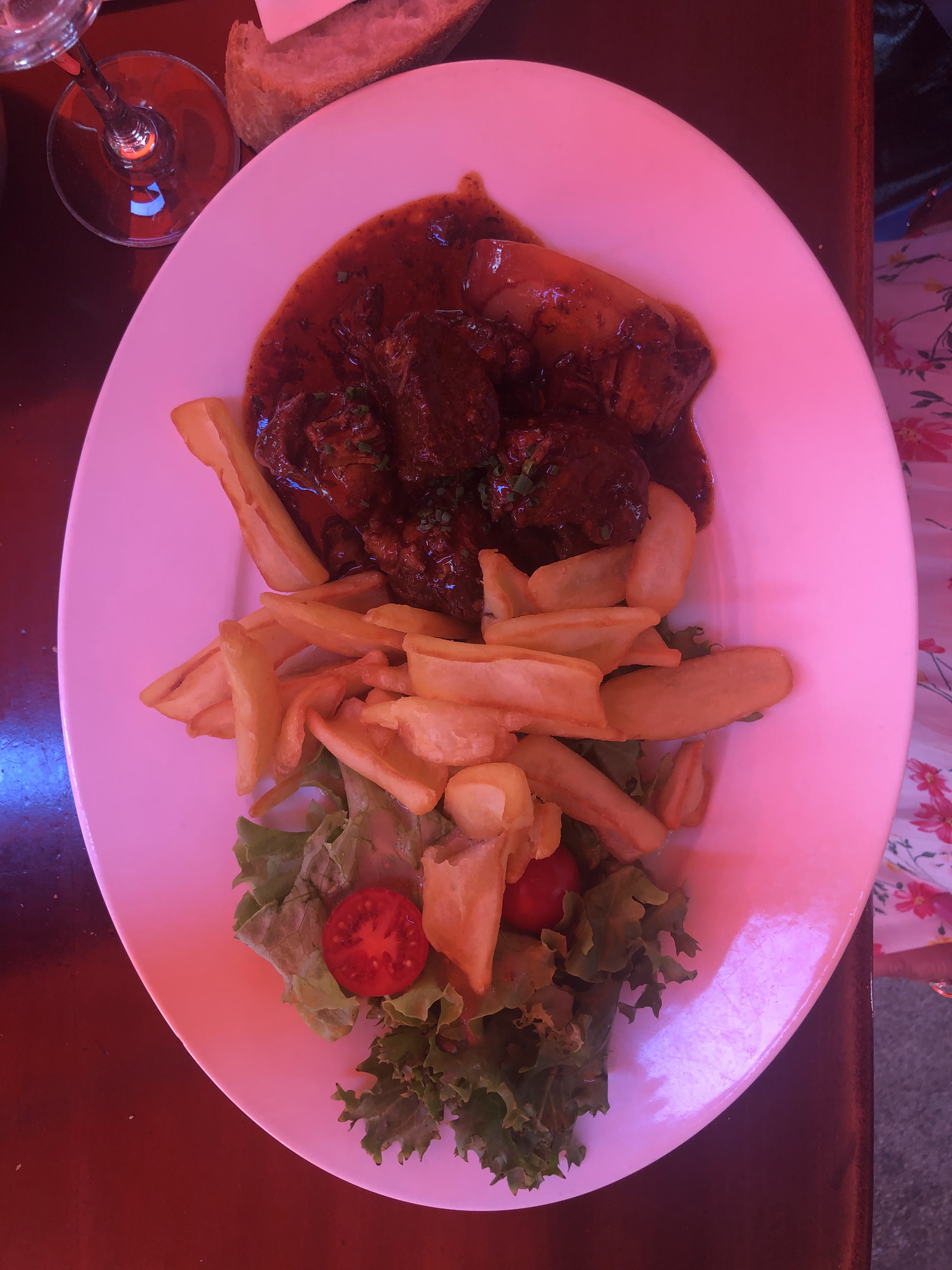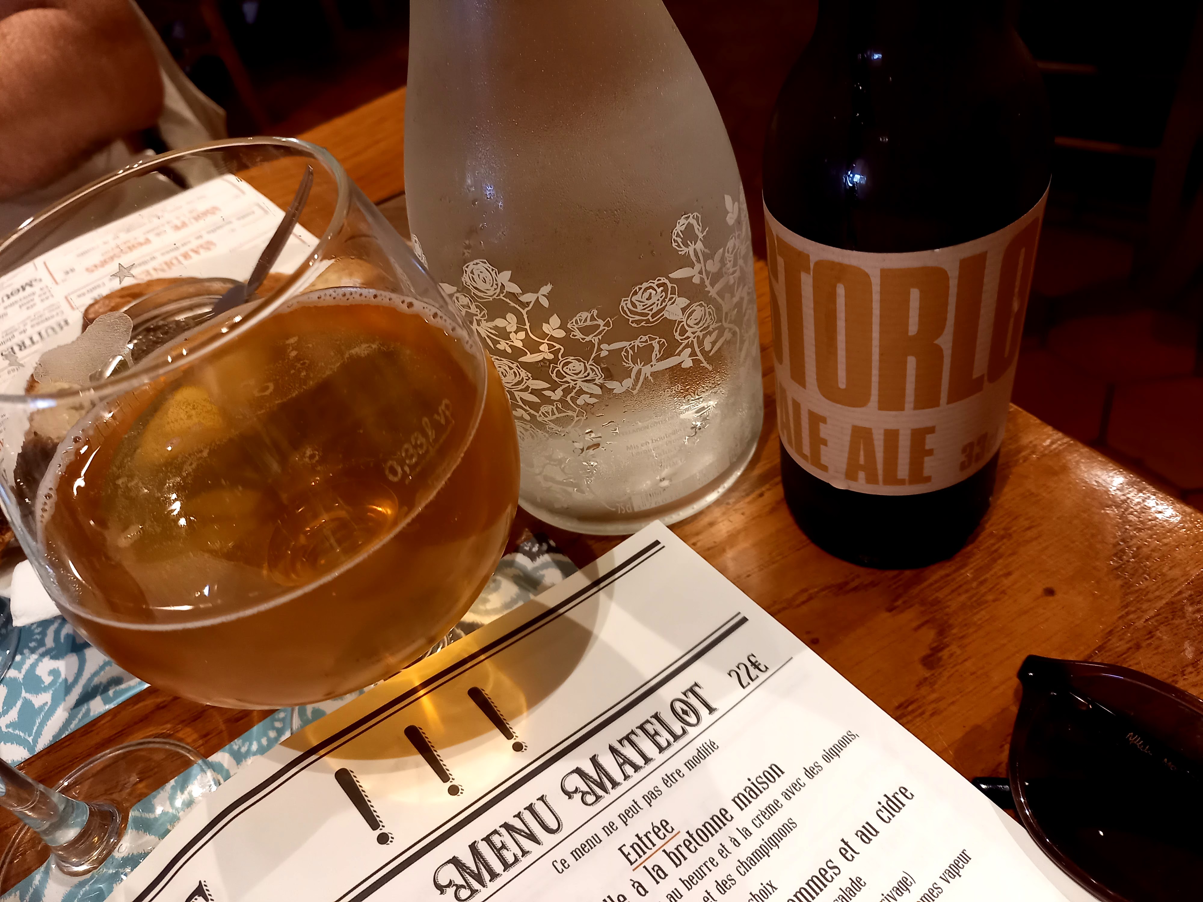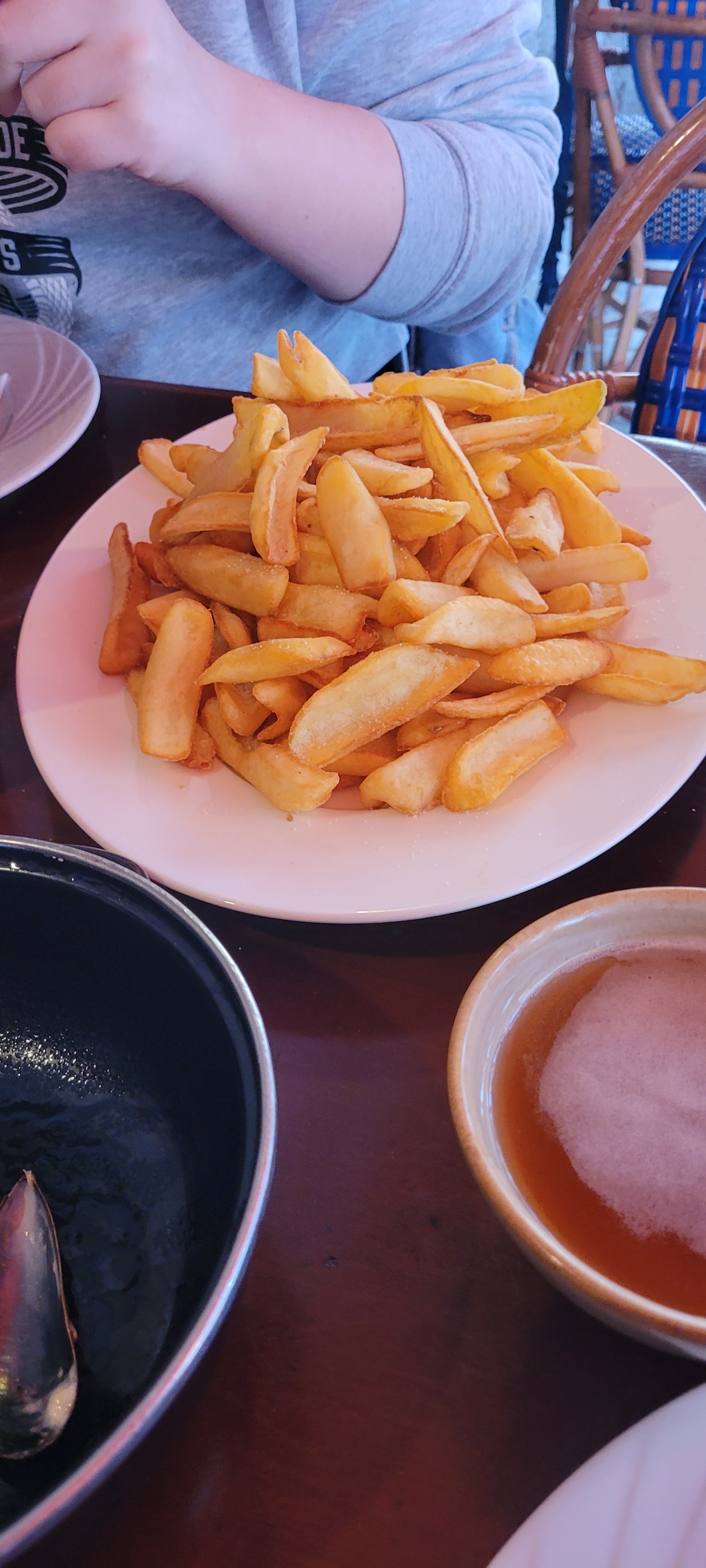 Je n avais pas réservé, on m a trouvé une petite place quand même. Moules frites avec 1 verre de cidre Kerné. Très copieux. Très bien. Je reviendrais.