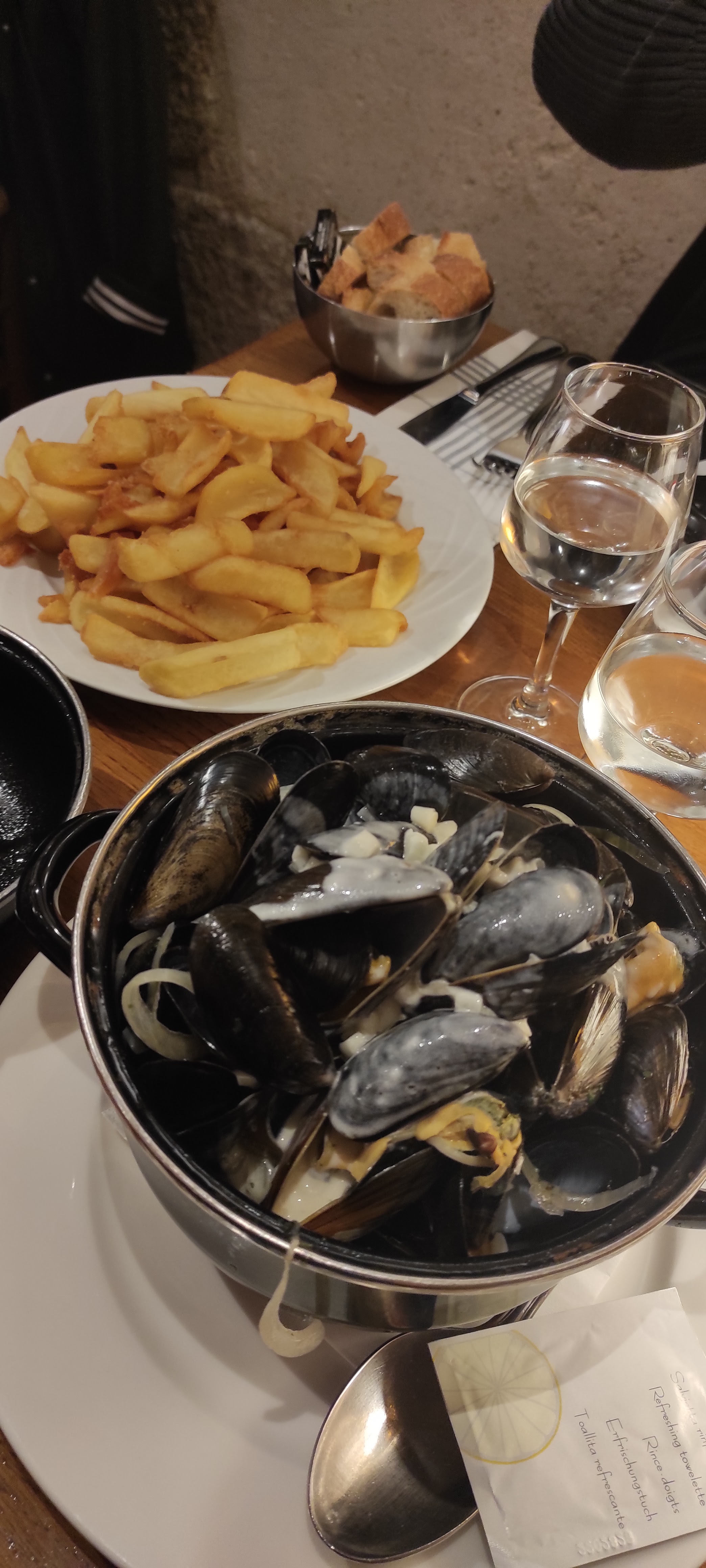 Un bon moment passé dans ce petit restaurant très accueillant. Le personnel est très gentil et l'endroit est très cosy. On se sent rapidement très bien en rentrant. Leurs moules sont très fraîches et la sauce très bonne. Je conseille.