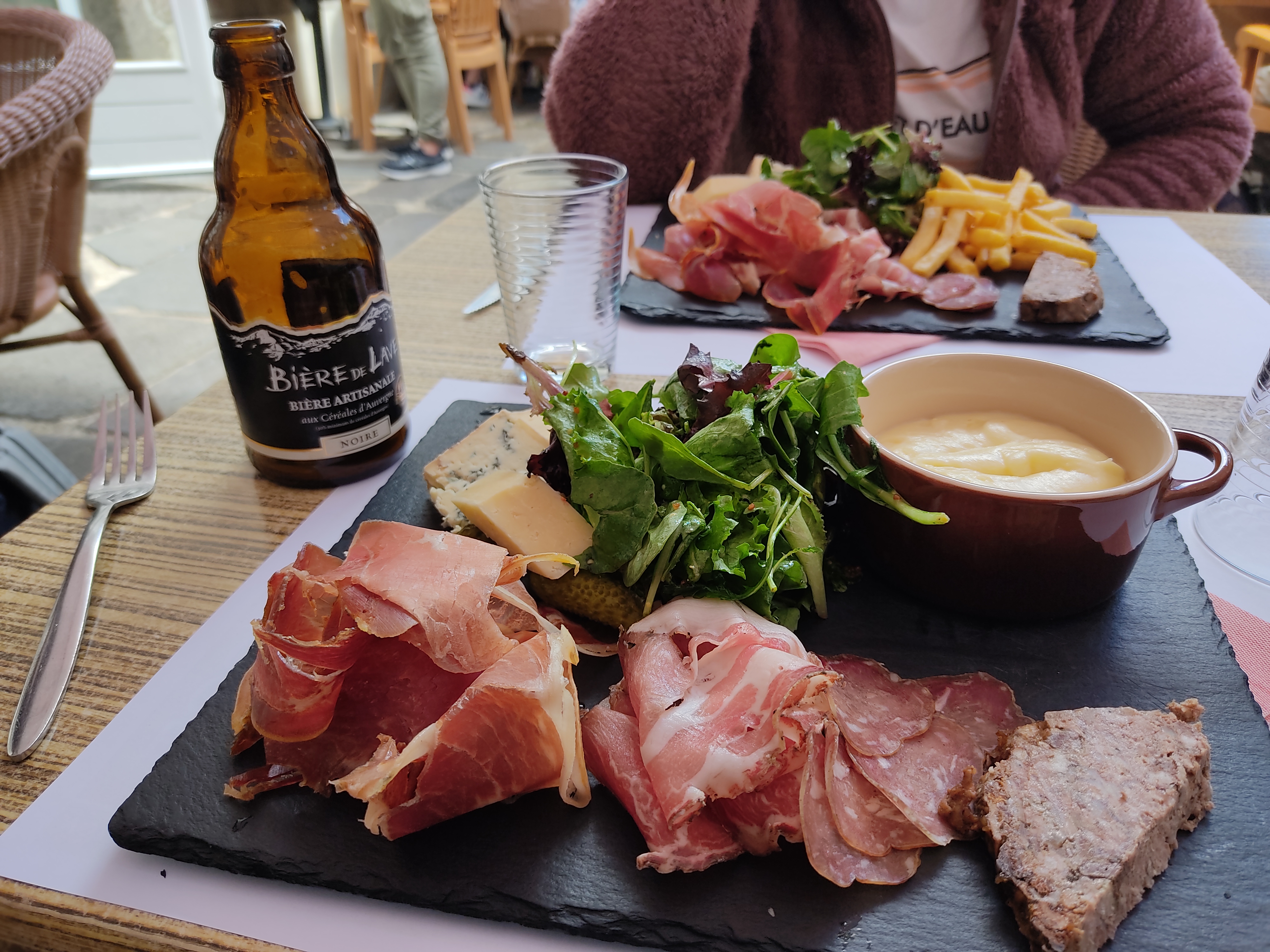 Établissement typique de Salers, petite terrasse ombragée, du personnel serviable et aux petits soins des clients. Et question carte où menu .... Soyez vigilant ... Sinon vous ne finirez pas vos assiettes ... Non seulement c'est excellent ... Mais c'est copieux et très bien présenté ! A recommander sans hésiter !