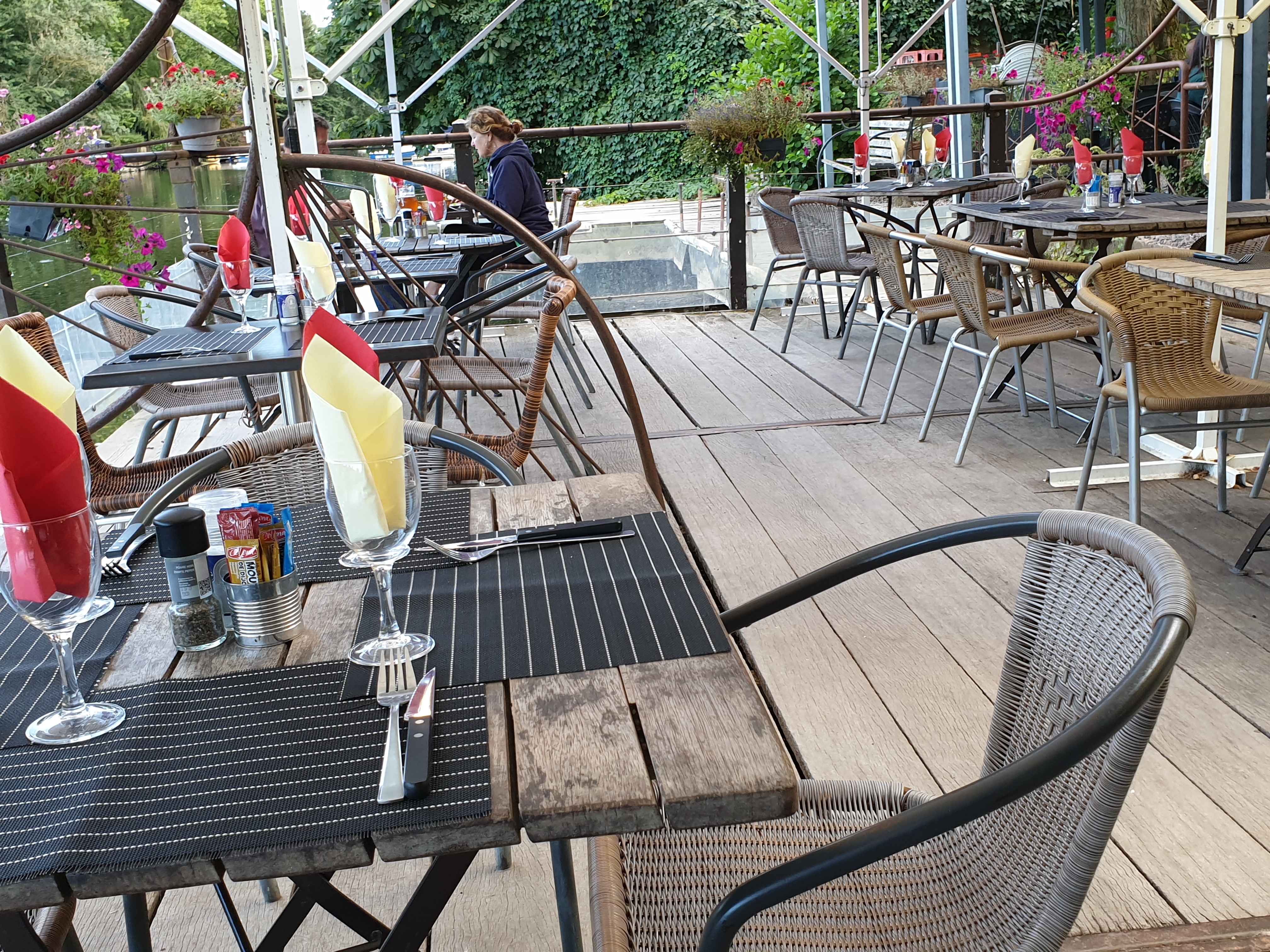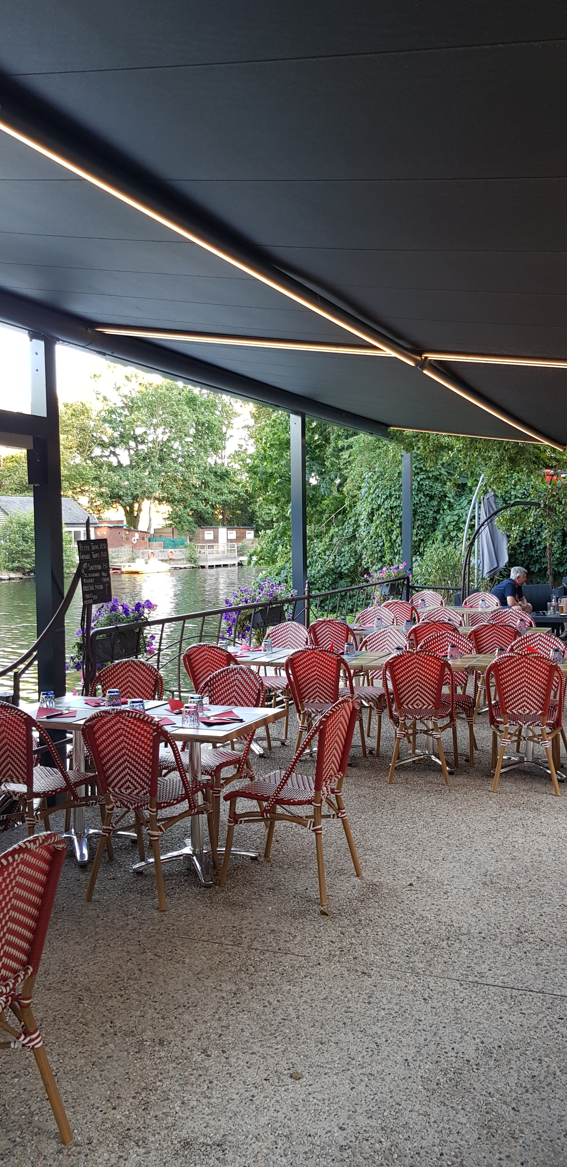 Lieu sympa au bord de l’eau. C’est agréable et le cadre est joli avec du personnel sympathique. Attention quand vous êtes au bord de l’eau il peut aussi y faire vite frais donc pensez à emmener de quoi vous couvrir si vous n’aimez pas vous restaurer en ayant froid. ;) sinon demandez une petite couverture au bar,,,