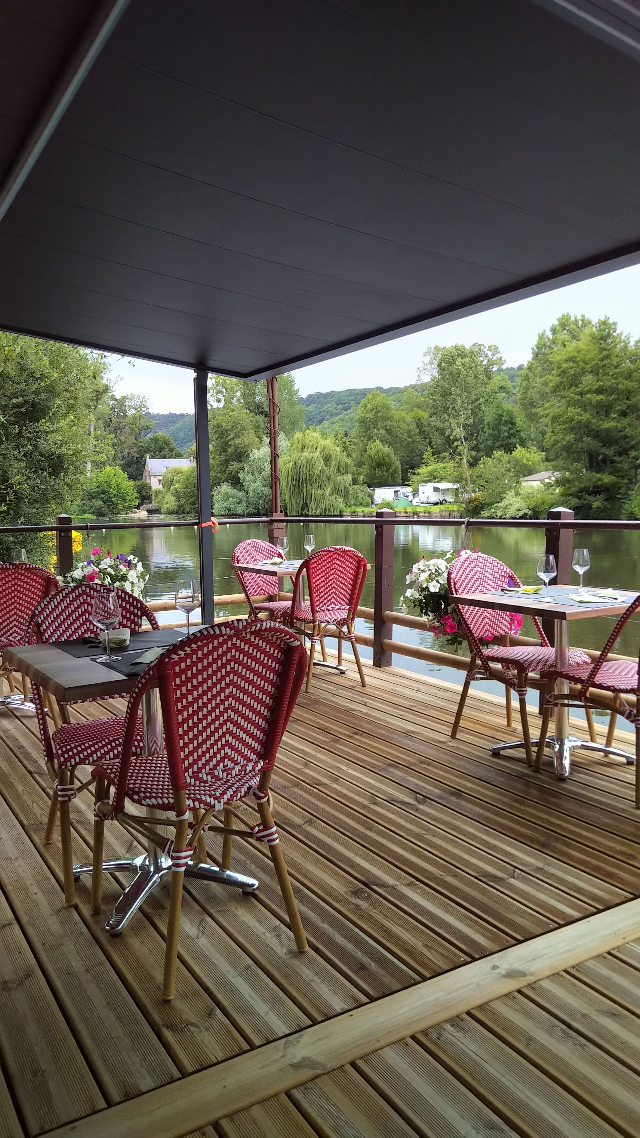 Cadre sympathique avec la terrasse en bord de rivière, ce qui donne un charme et de l'apaisement. Bon rapport qualité-prix, les plats sont préparés avec des produits frais et de la région. En ce qui concerne les serveurs, ils sont très gentils et compréhensible.
