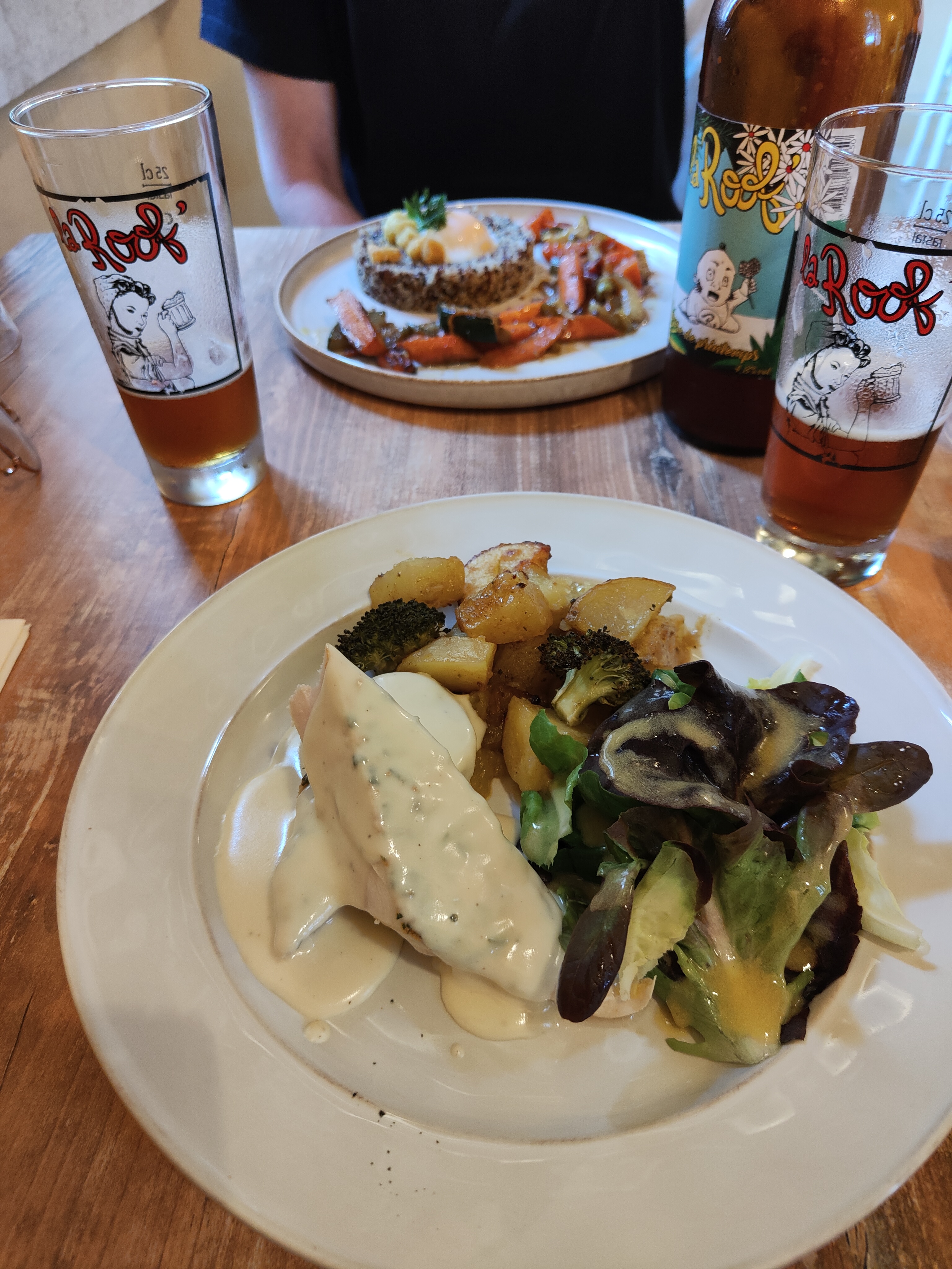 Une soirée sous qq rayons de soleil, un accueil sympathique et un succulent repas : du simple tellement bien présenté, je recommande fortement 😋😋