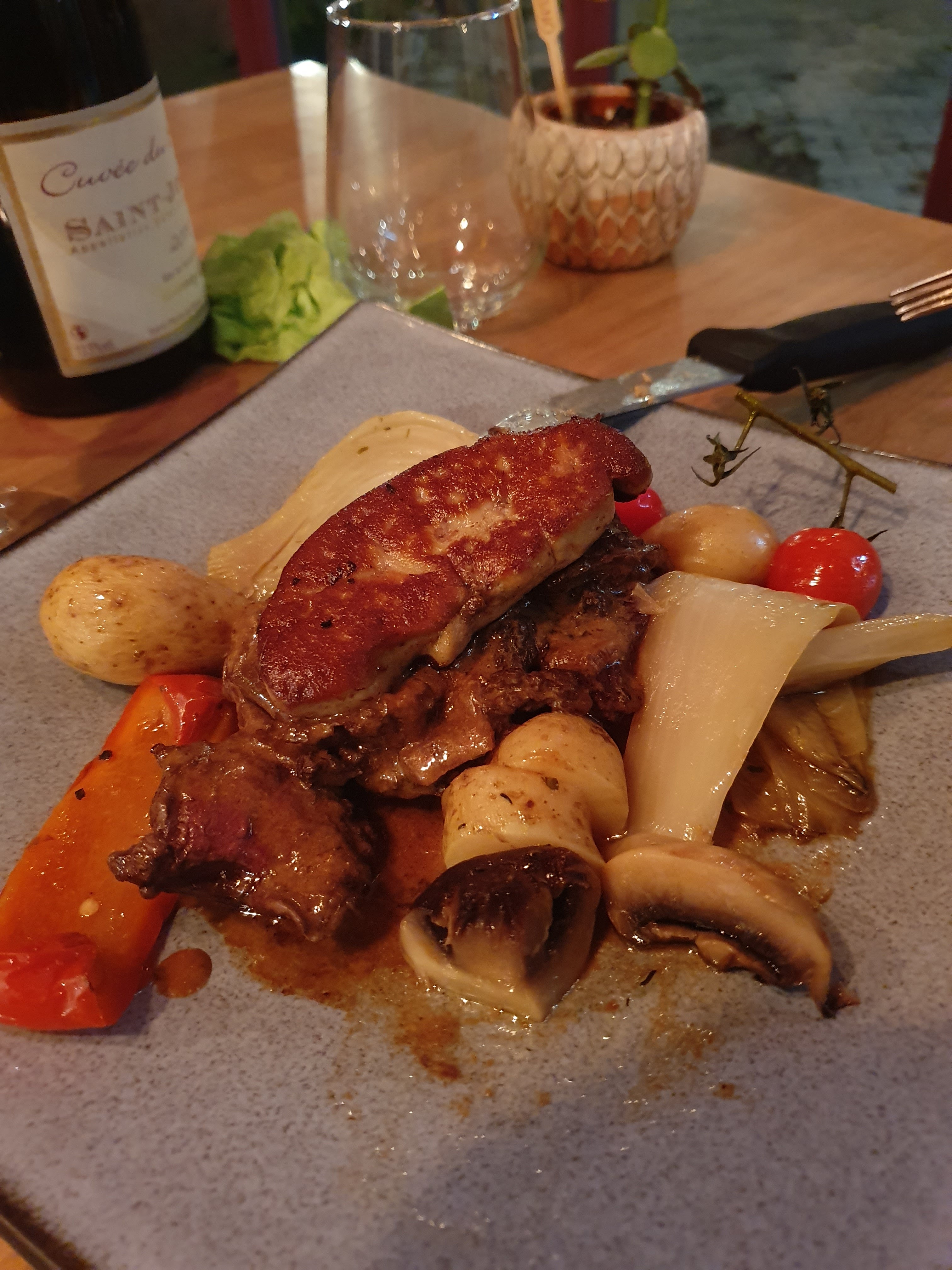 Cuisine de qualité. Je me suis régalée avec l'assiette gourmande au foie gras et que dire des joues de bœuf cuites 7h, succulent ! Merci pour ces bons plats.