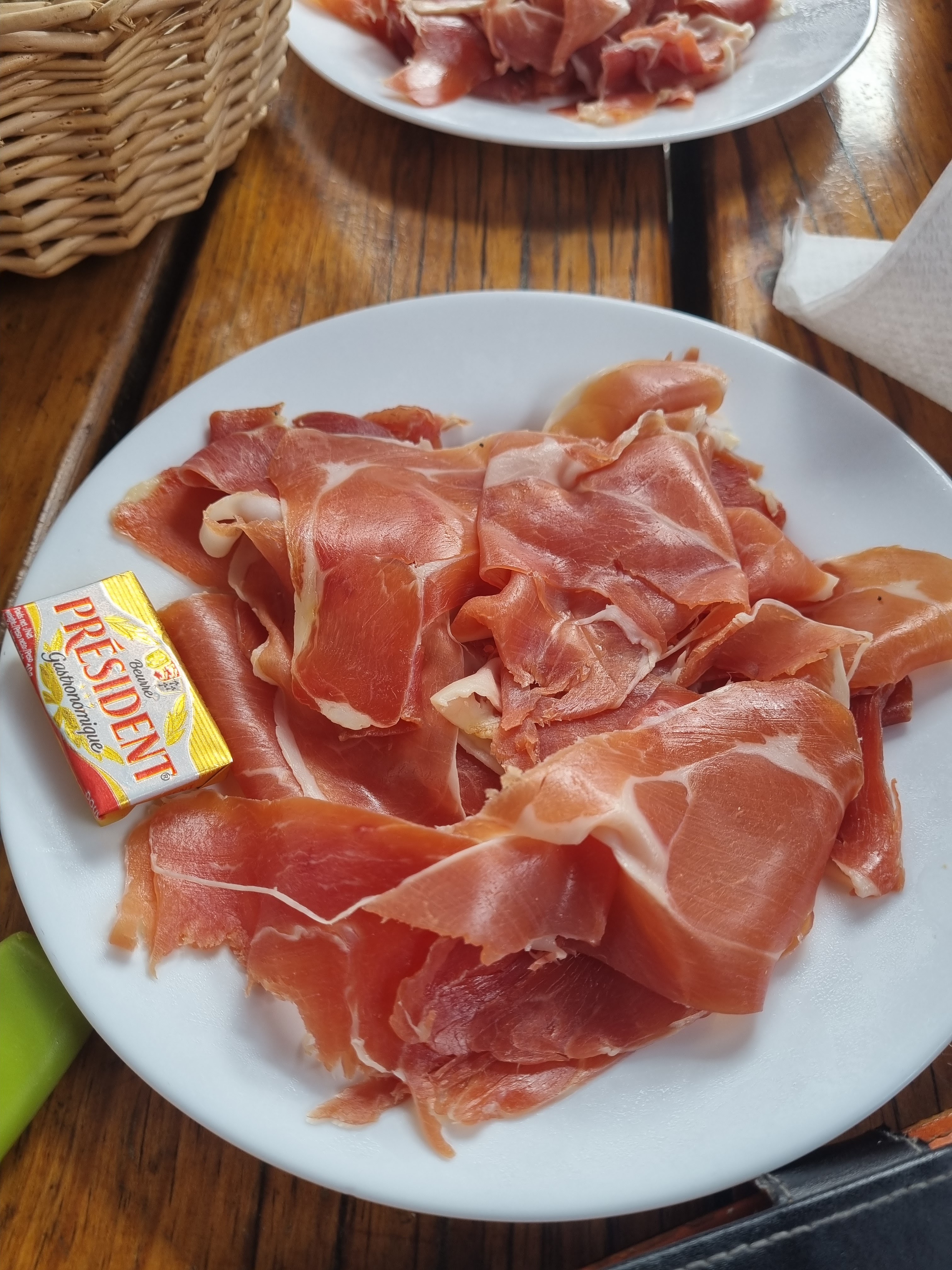 Ce jour petite Dégustation a la Poupe :d huîtres, bulots, pâté de foie ainsi que le jambon évidemment accompagné d une bouteille de vin . Tarif raisonnable. Rien à dire , belle vue sur le lac avec très bon accueil. :)