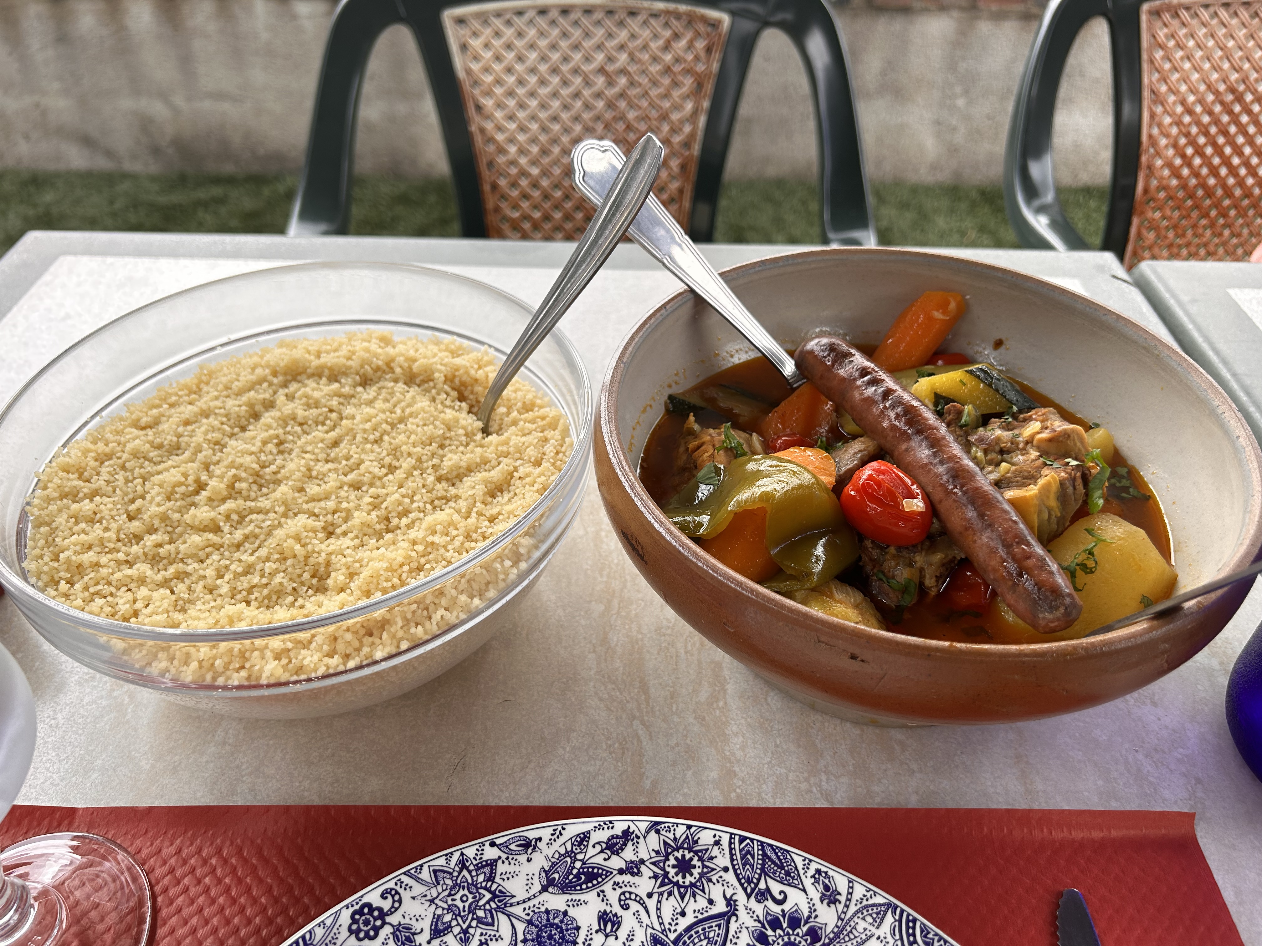 Couscous royal fait maison, excellent! De belles portions et des produits de qualité. Accompagné d’un nouveau pouilly fumé bien frais. Service avec le sourire! Et tarte également faite maison. La cerise sur la gâteau, ils s’adaptent aux demandes de tous. Merci pour ce repas.