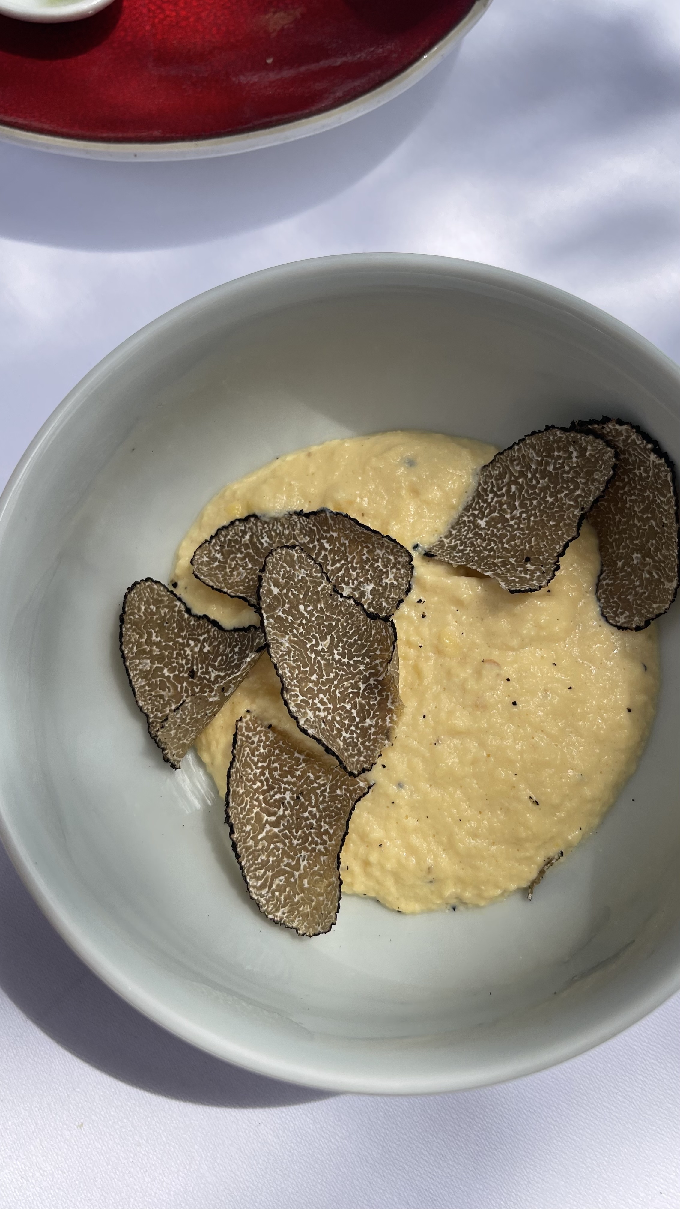Lieu magique et repas de très haut niveau Nous étions 5 et nous avons tous beaucoup apprécié la qualité et les saveurs des plats Le foie gras aux agrumes !!! ainsi que le loup dont la peau caramélisée est un délice La petite visite du chef à la fin est un plus trés agréable. Il nous a donné quelques conseils. Sympa et avec beaucoup d'humour
