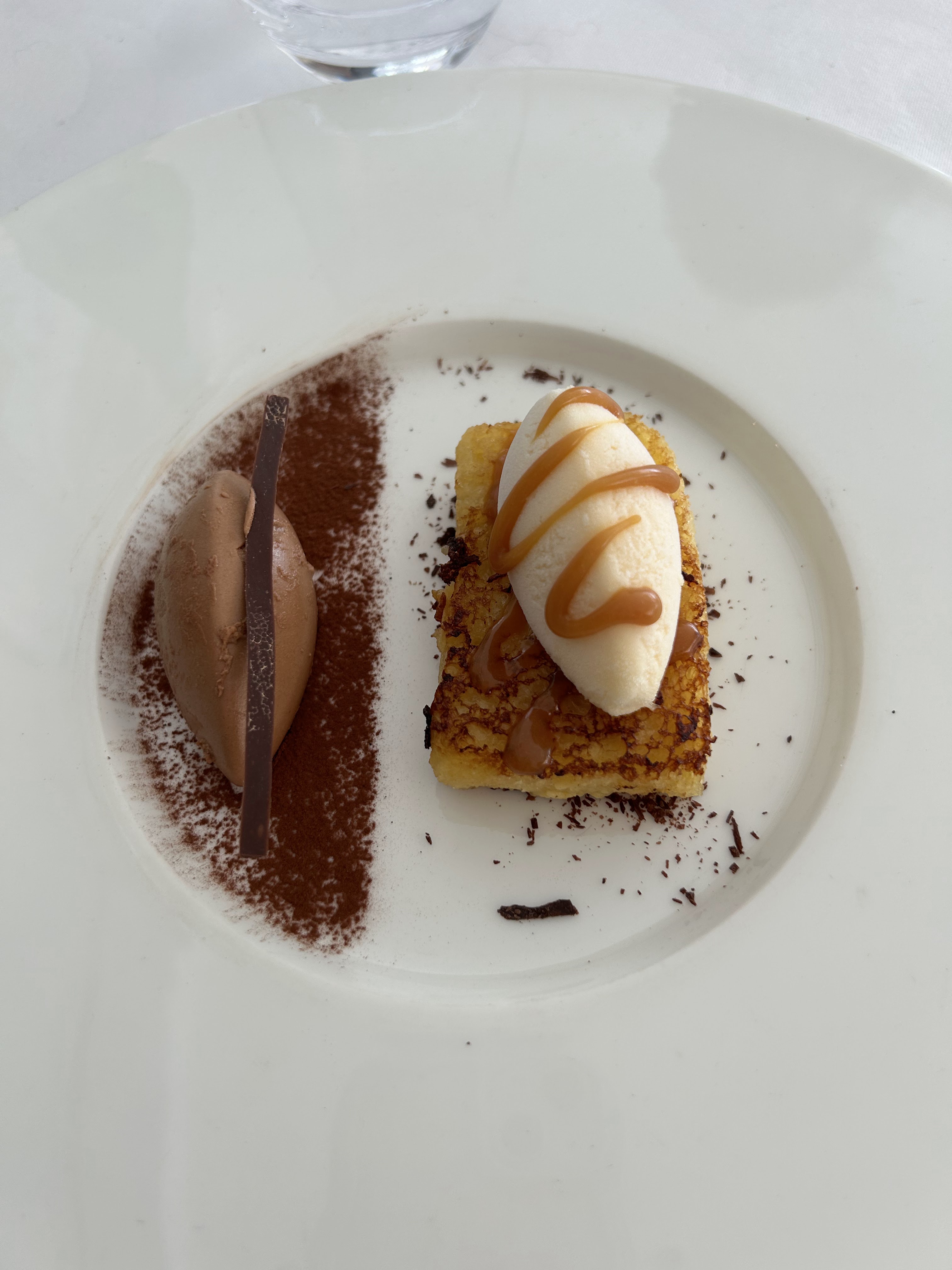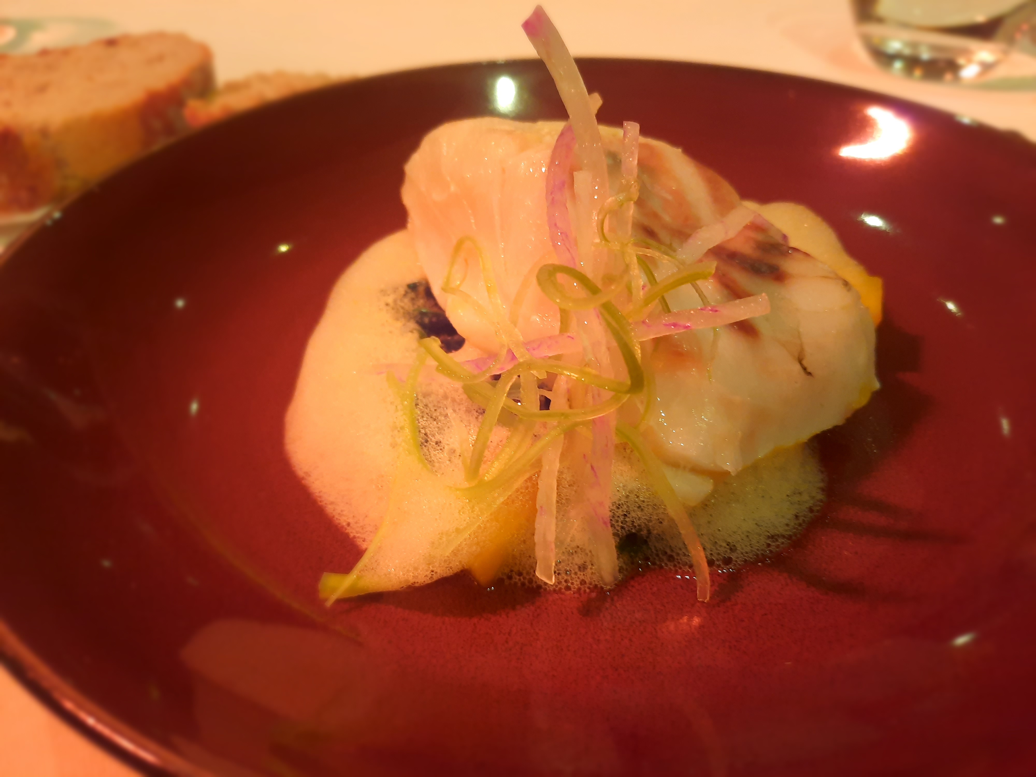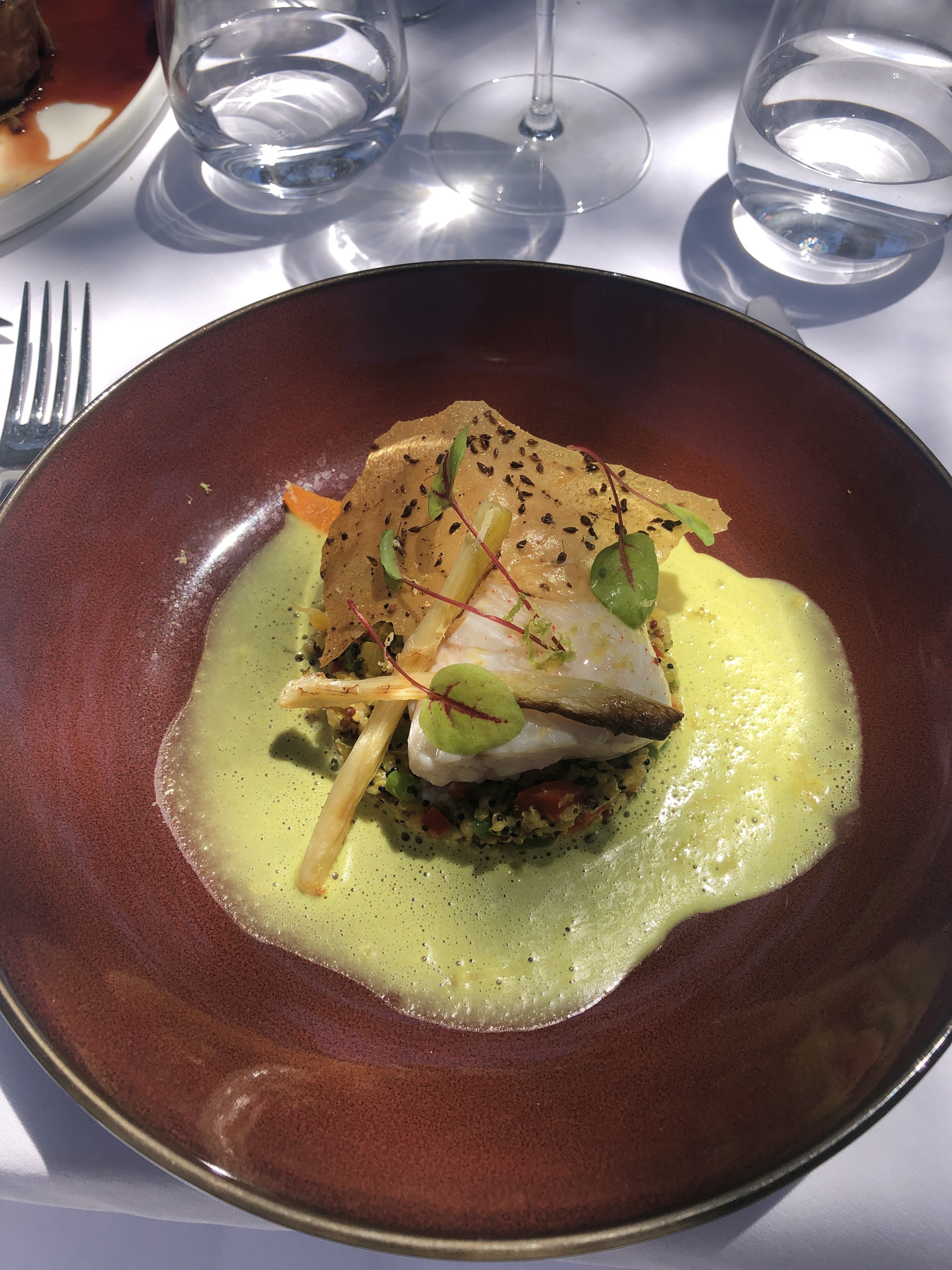 Deux menus possibles lors de notre passage à la Presqu’île, avec de nombreux choix que ce soit pour les entrées, les plats ou les desserts. Une cuisine travaillée et originale, et un service au top du top ! Point négatif, la terrasse de la brasserie juste sous la notre, les photos sont prises d’un autre angle et nous ne nous attendions pas à avoir tant de monde à quelques mètres de notre table … Vraiment dommage car le cadre est magnifique !