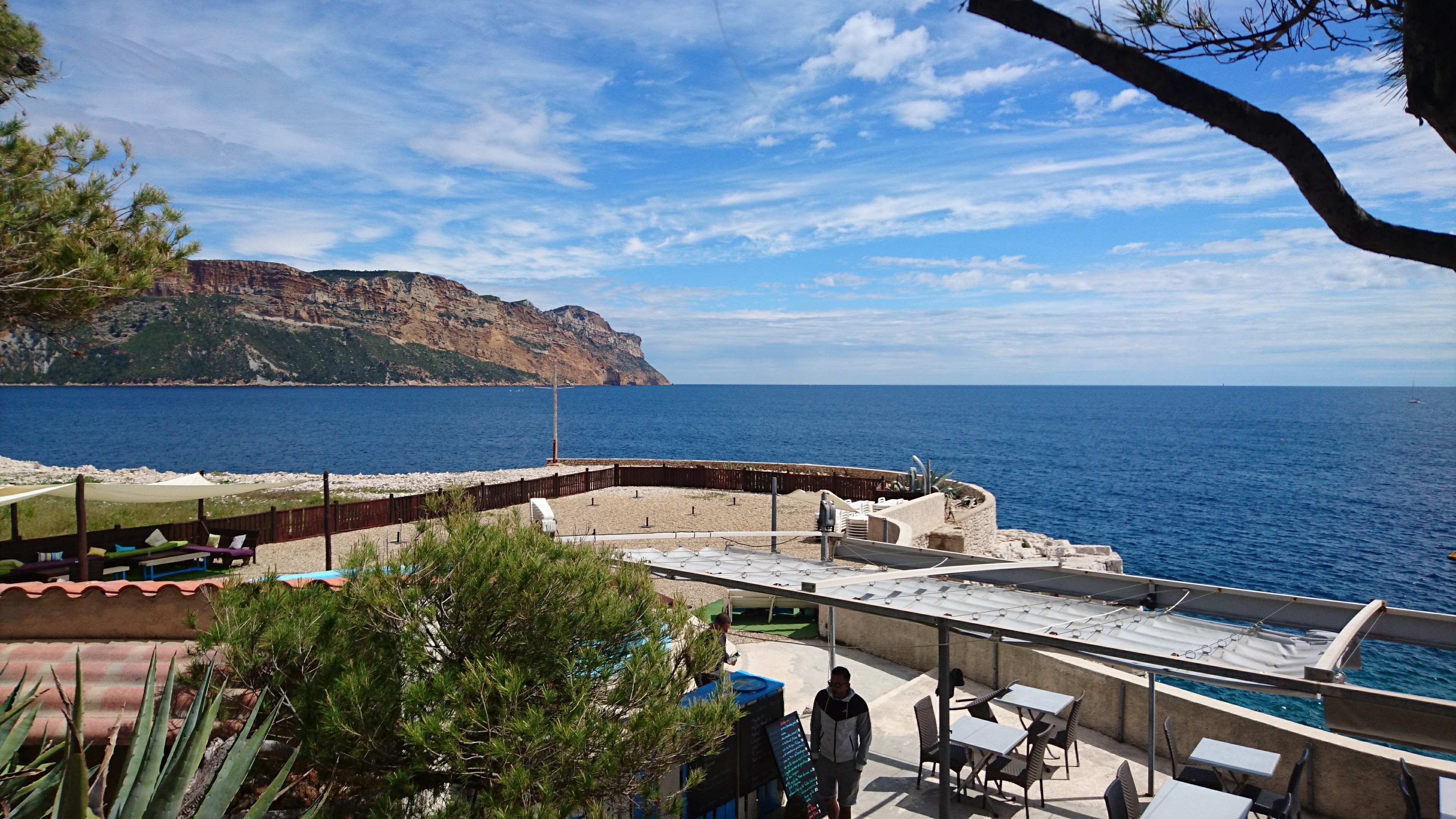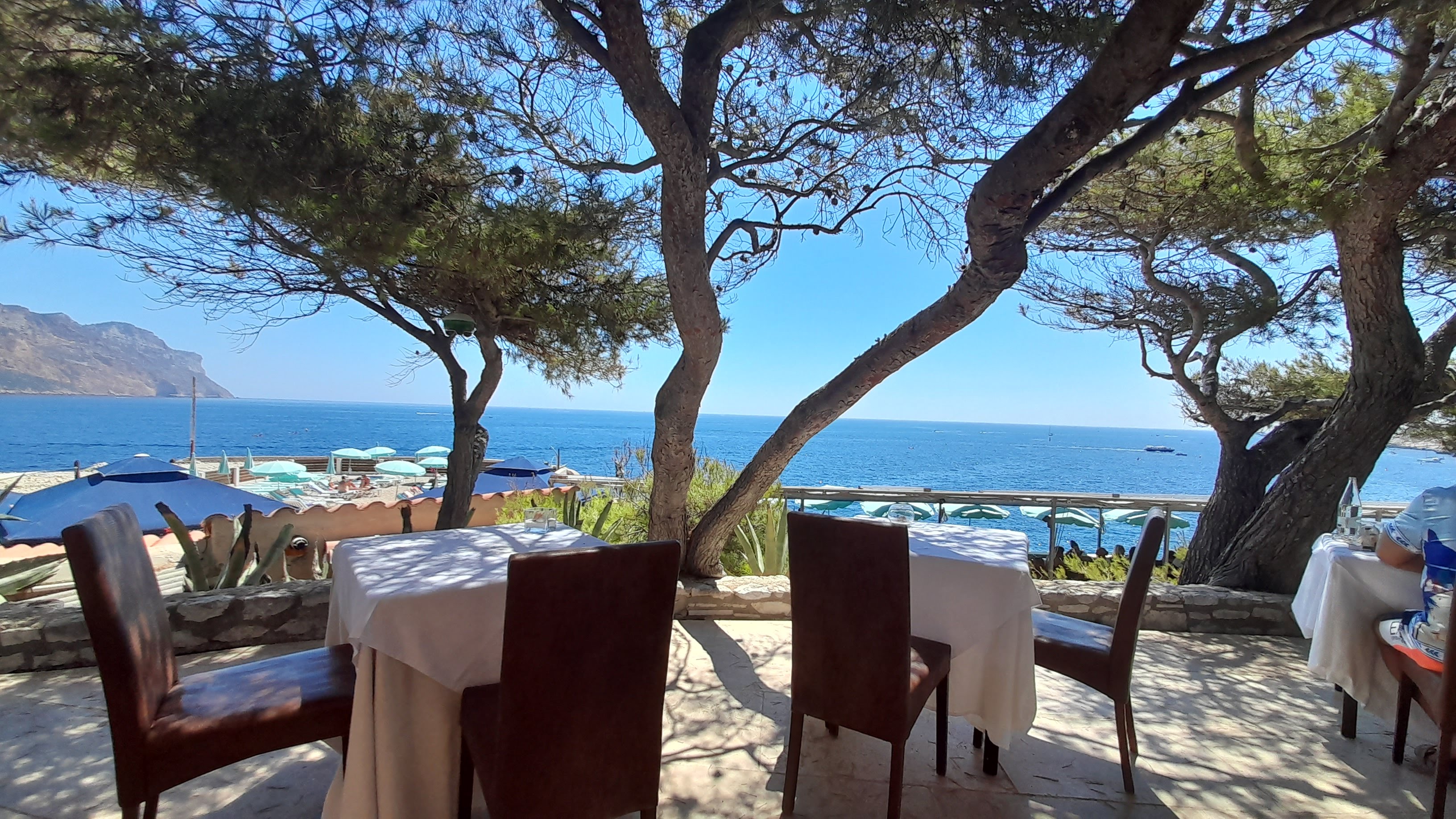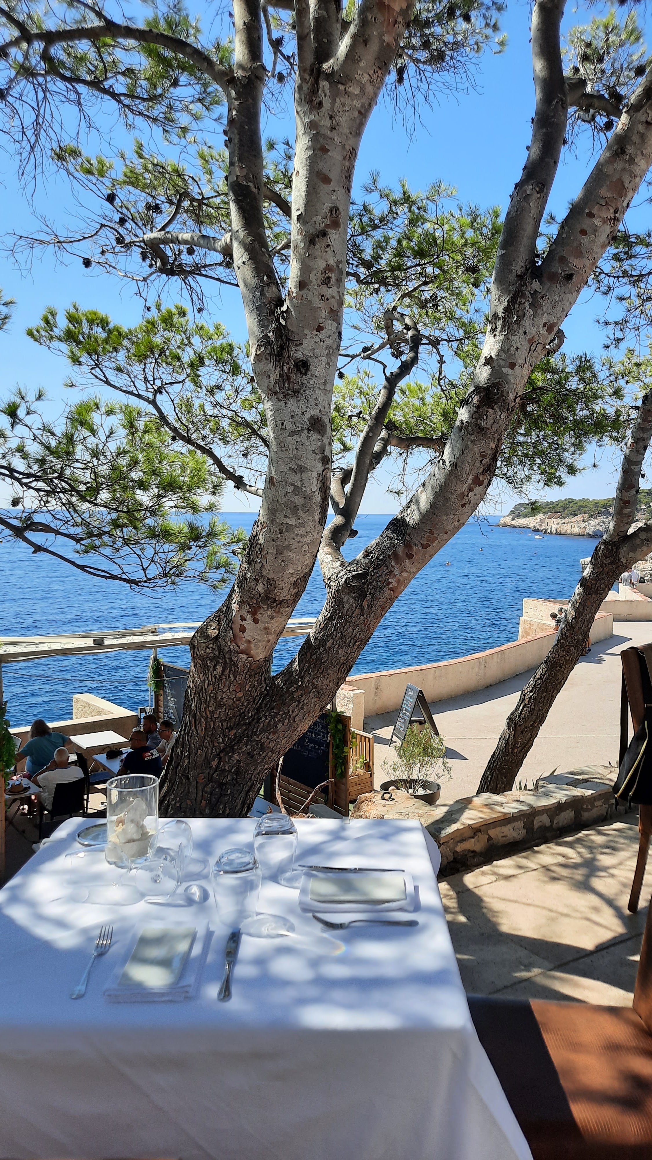 Un cadre et une vue magnifique dans le parc des Calanques... Pour la cuisine rien a redire, c'est bon délicat et même très copieux, le présentation est soignée tout en restant simple, bref on en a pour son argent (comptez 200€ pour deux minimum). Ce qui fait baisser la note c'est plutôt le service, ou là c'est peut mieux faire . Serveurs pas plus motivés que ça et qui vont même jusqu'à se prendre la tête devant les clients. La terrasse à aussi besoin d'un petit coup de jeune, certains éléments sont franchement défraîchis, ce qui dans un établissement à ce tarif n'est pas permis. Bref, pour passer un agréable moment, en mangeant bien dans un cadre magnifique ça le fait largement si on est pas trop regardant.