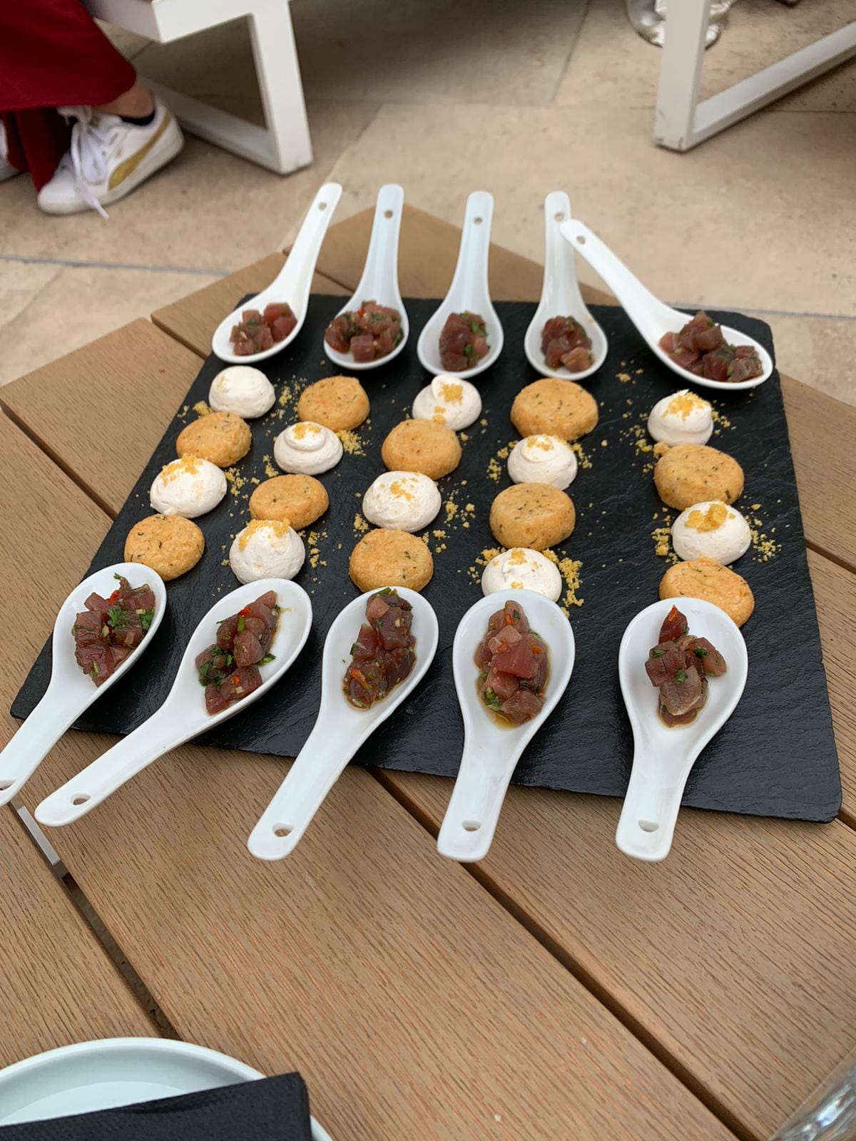 Attrape touristes : certes la vue est sympa , mais clairement la cuisine n’est pas au niveau . A la lecture de la carte ça donne envie , nous avons pris le menu en 5 temps et nous avons vraiment été déçus. - les asperges vertes maquillées : manque de texture , saveurs bof , aucun intérêt de mettre une asperge blanche au milieu si au final elle a le même goût - le poulpe grillé etait raté : beaucoup de mâche , vraiment pas agréable - le dessert : quand on annonce une brioche façon pain perdu , on s’attend forcément à un plat un peu gourmand ! A la place nous avons eu droit à un dessert type ´ finger food ‘ , plutôt bon mais vraiment pas généreux pour finir le repas . On ne recommande pas !