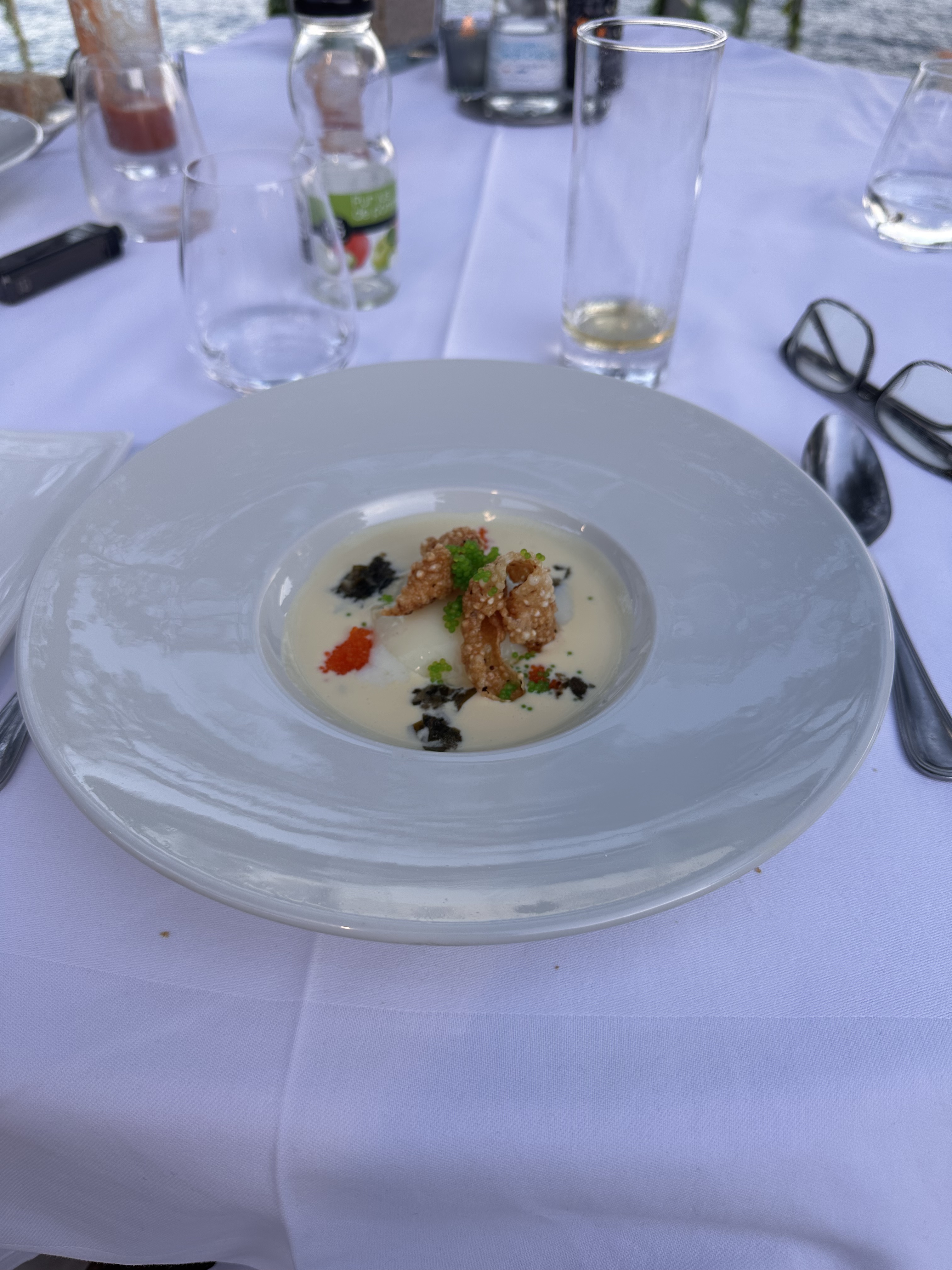 Chaque plat était succulent, des mélanges de textures et saveurs qui ont ravi nos papilles (et nos pupilles)! Le service était impeccable et la vue directe face à la mer très appréciable , même en étant à l'intérieur (terrasse fermée, trop froid!). Je recommande vivement !