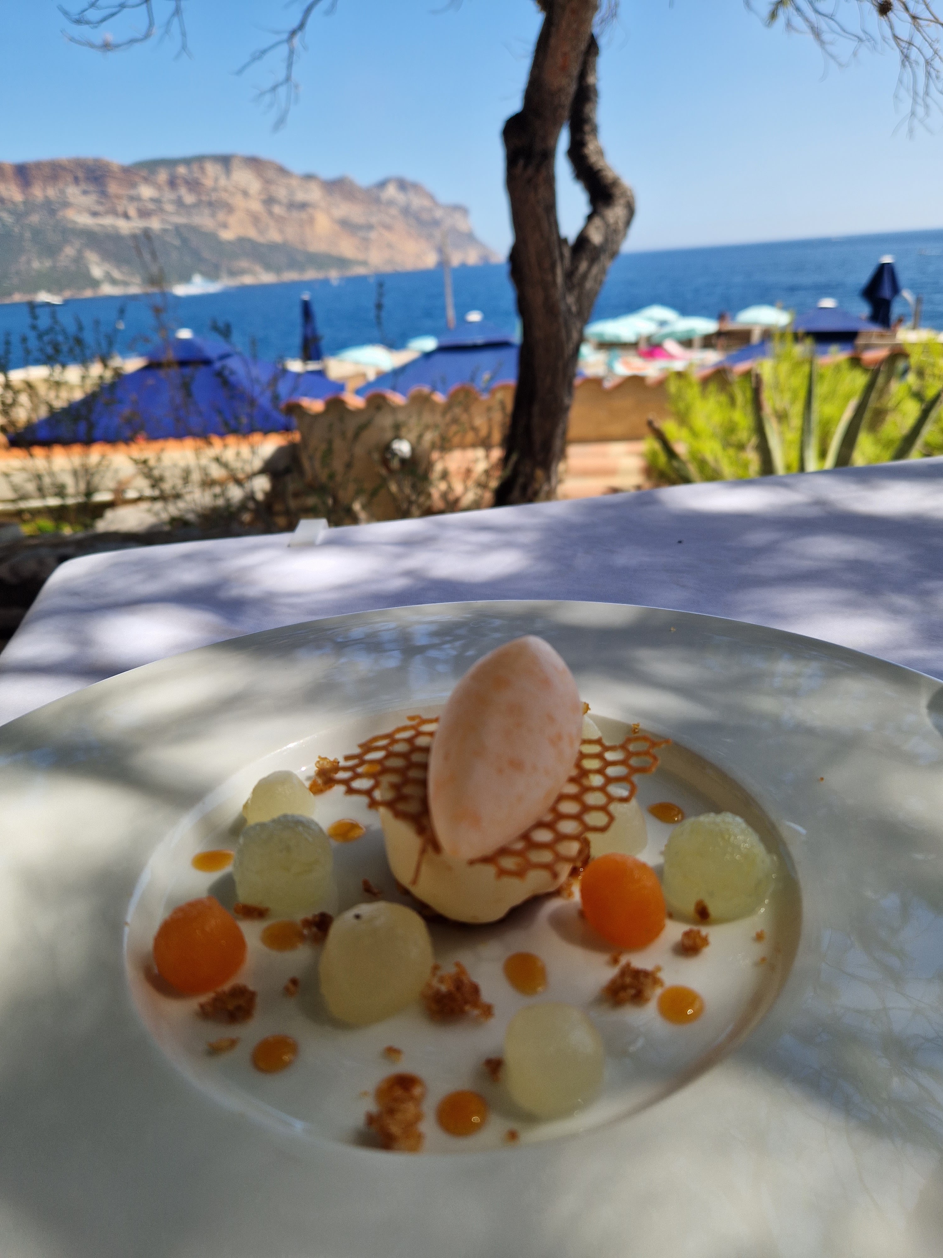 C'est un endroit absolument merveilleux pour dejeuner et ensuite aller se baigner. La nouvelle formule à 5 plats a de quoi séduire. Toujours fin et raffiné. De l'entrée au désert, rien à redire. La cuisson du veau basse température le rend incroyablement fondant. Magique. Ma femme ayant pris le désert framboise lichi et sésame noir, je me suis retranché sur le duo d'abricot. Bon mais pas d'extase mystique alors que j'en ai souvent sur les. desserts. Le service aux petits soins. Bref, merveilleux moment avant un plongeon tout aussi merveilleux dans une eau bien chaude et pleine de poissons. Avec le vin blanc de Cassis et un pourboire, 200 euros à deux. Cela les vaut bien😁