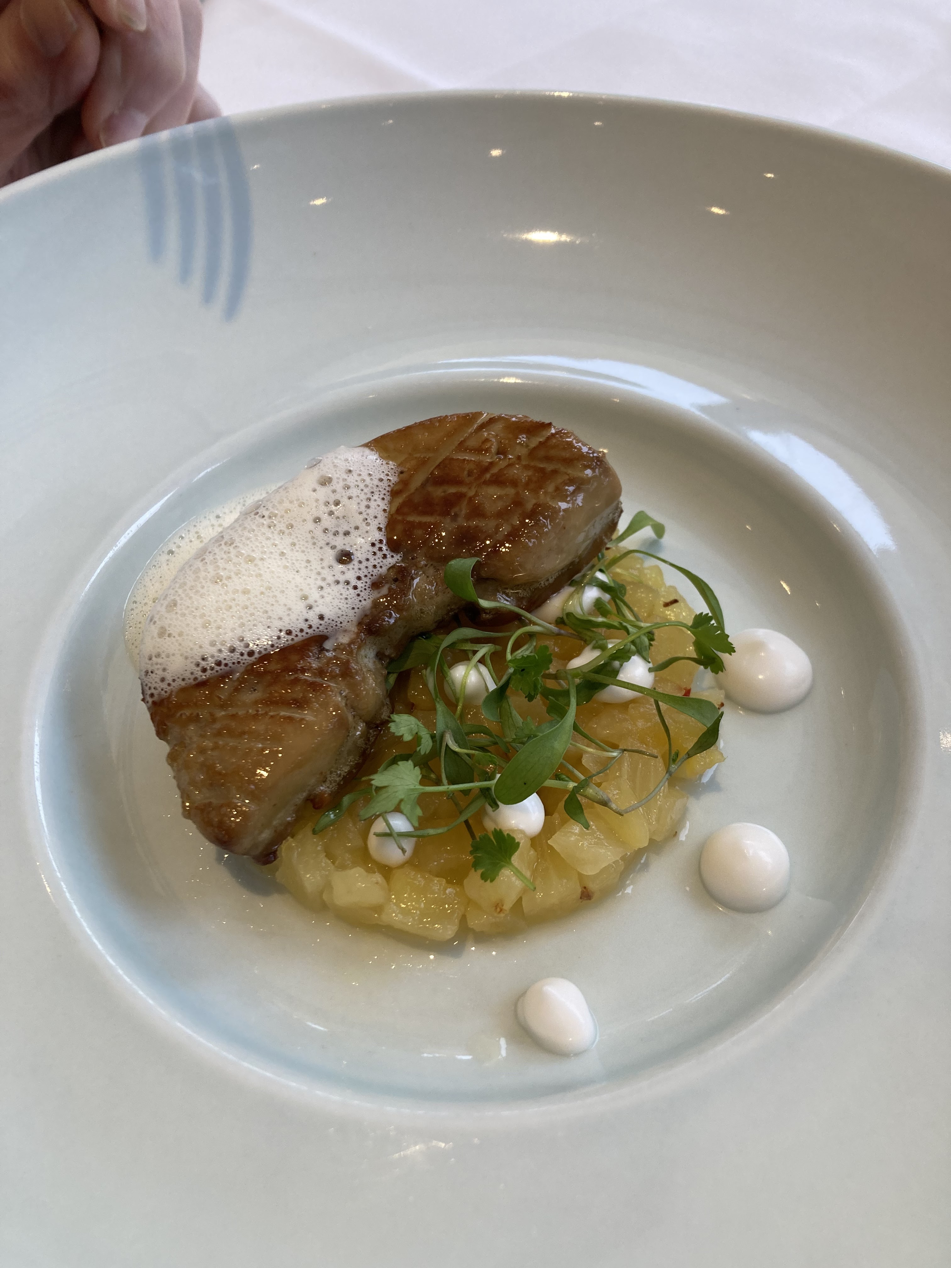 Repas très agréable. Même si j adhérents pas totalement au mélange du salée et des fruits. Et deux détails qui on déranger le repas. L attente très longue entre le poisson et la viande( + 20mn). Et les portion,très très petites. Et surtout tres froid dans la salle. Ce qui gache vraiment l expérience, et qui est décevant pour le niveau de ce restaurant. Le service très bien. Et le choix des aliments top qualité. J y retourne volontiers ,si le nouveau menu revient sur des saveurs plus traditionnelles. Et plus l hiver. Bravo l équipe