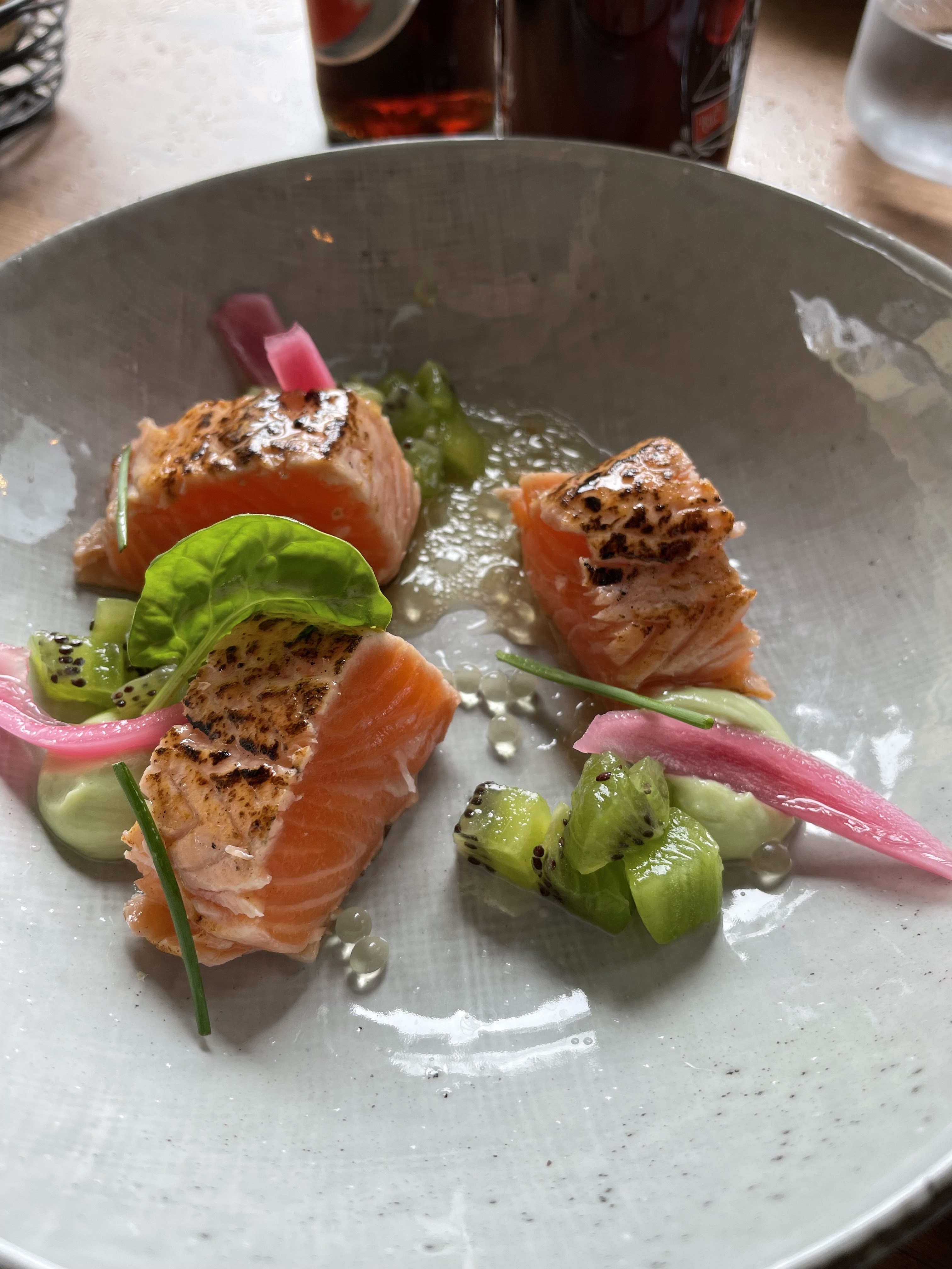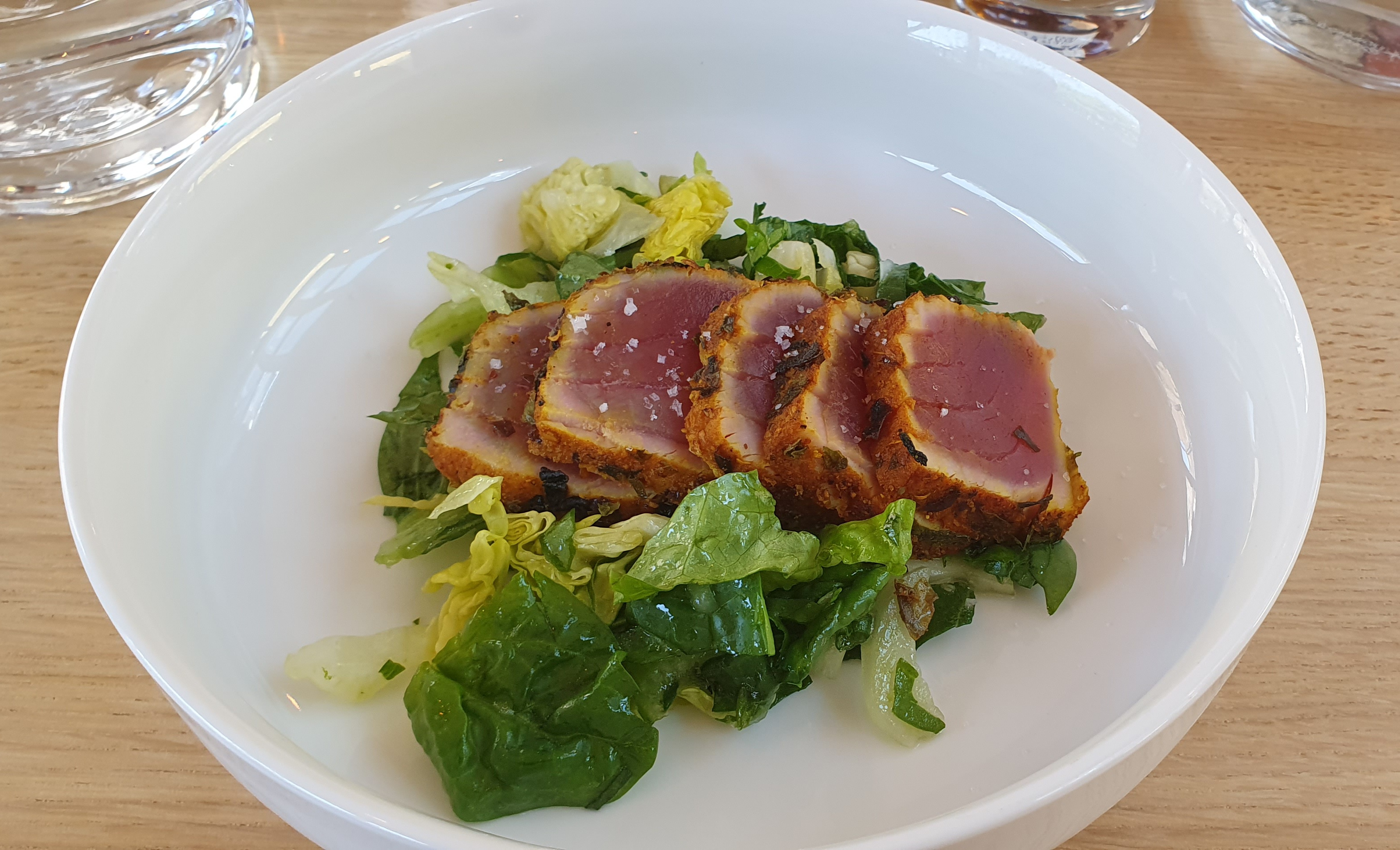 Entrée saumon cuit dans une croûte de sel beaucoup trop salé. Signalé à la serveuse, qui a oublié d’en avertir la cuisine. C’est dommage, le reste était bien