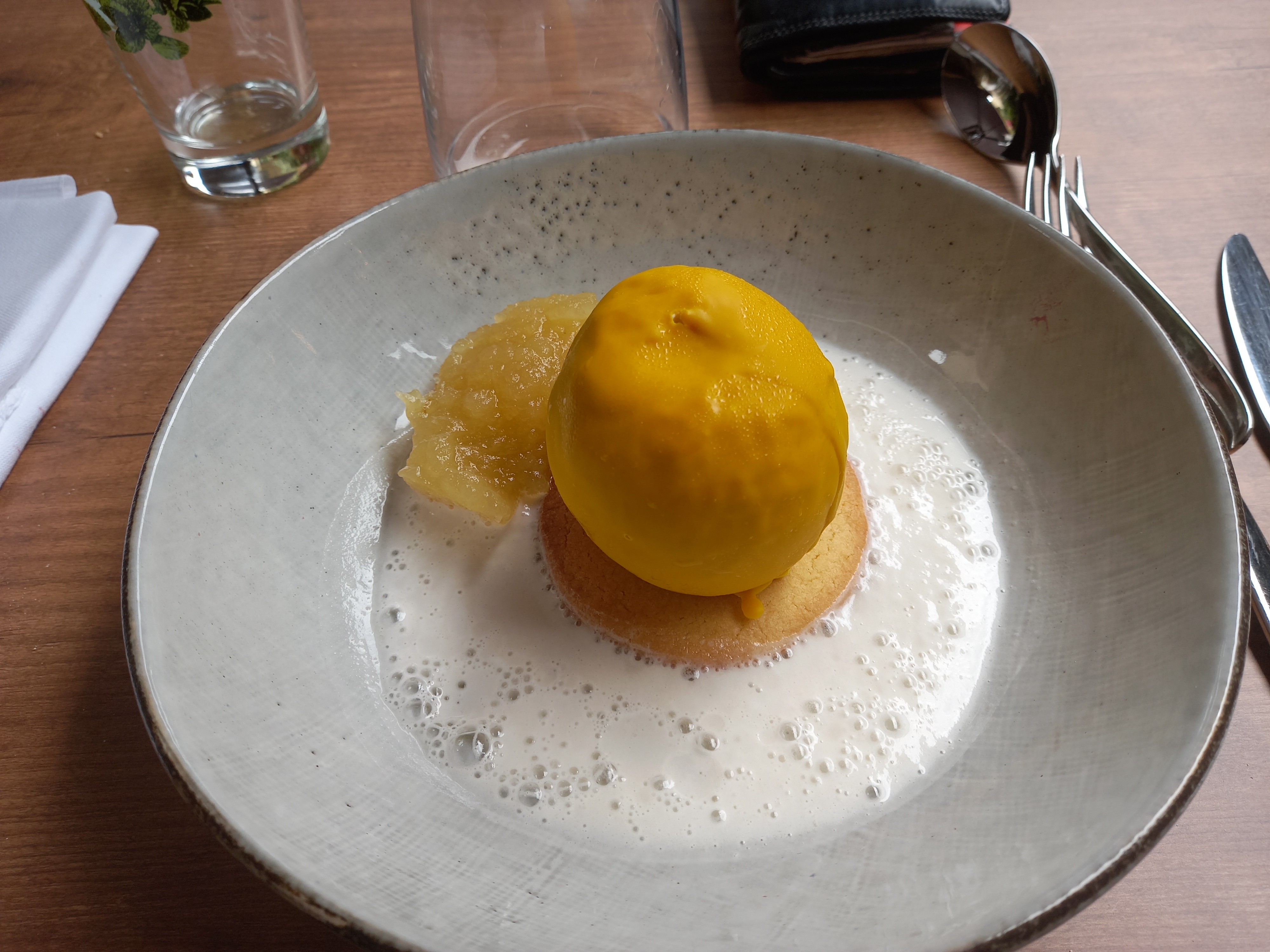 Nous avons très bien dîner? L'amuse bouche avec sa mousse de champignon était excellent. Le saumon brûlé, parfait. L'espadon très bien aussi. Le cabillaud manquait de fermeté. Le citron sublime.