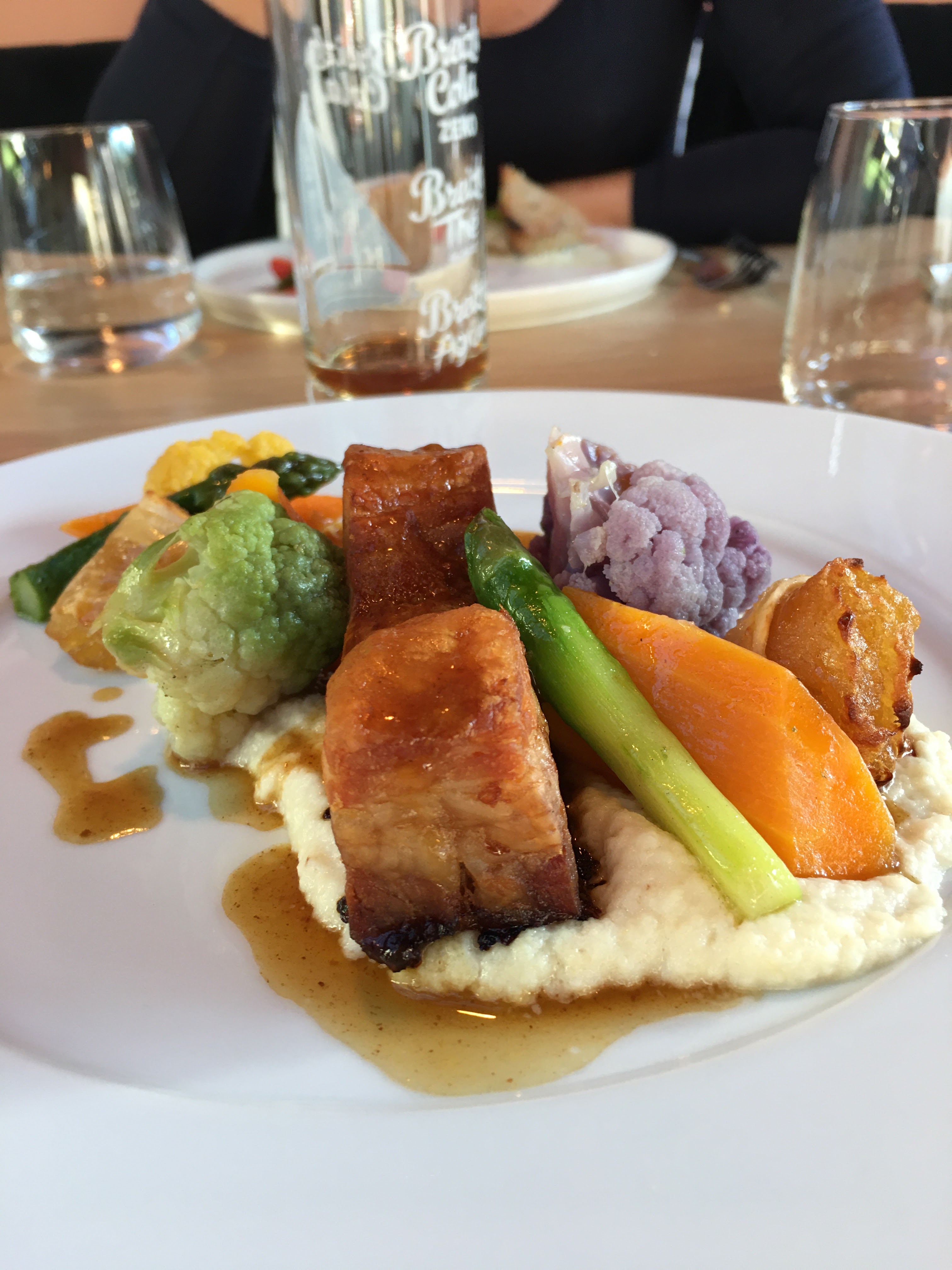 Bel endroit très lumineux et apaisant proche de la rivière. Dimanche déjeuner à la carte. Belles portions de viande ou poisson et belle présentation. Desserts très originaux et délicieux. Par contre on évitera le fromage: aucune originalité et portions minuscules... Service très agréable discret mais efficace et pas d'attente malgré que le restaurant affichait complet. On reviendra.