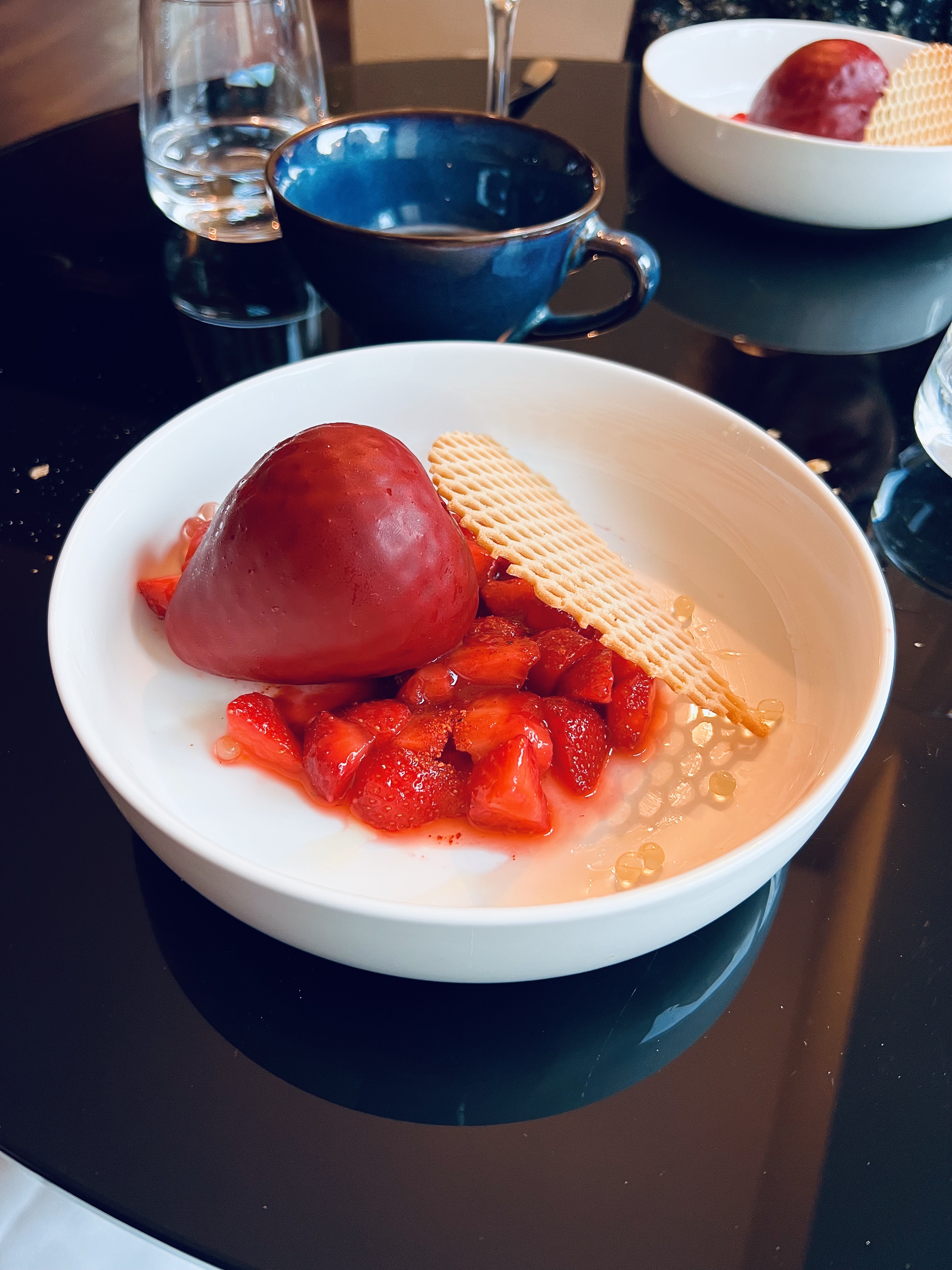 Une merveilleuse expérience culinaire où le chef s’amuse avec nos sens au moment du dessert. Bravo !!