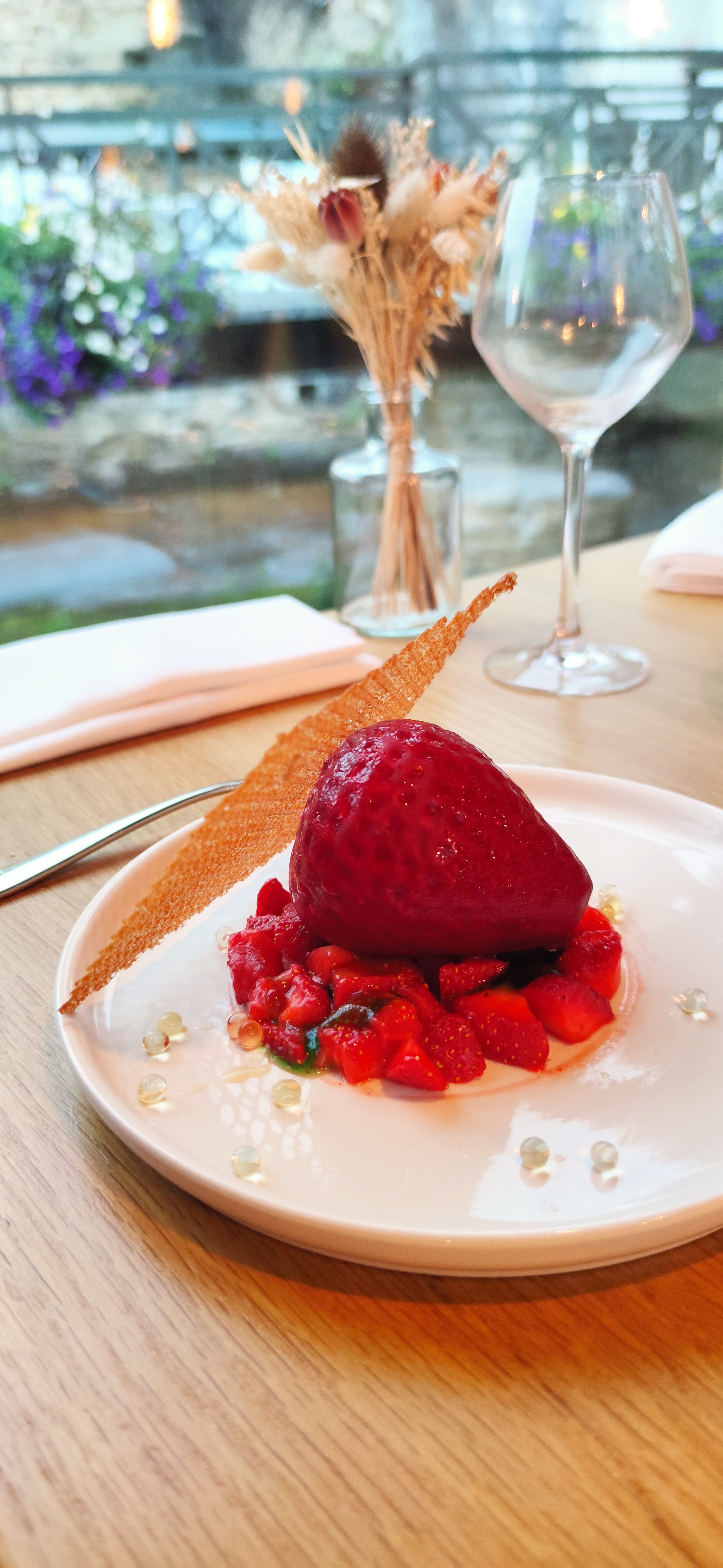 Nous avons eu une très jolie table , très intimiste dans une alcôve avec vue sur la rivière . Les plats étaient délicieux et originaux . Merci pour la délicate attention pour l’anniversaire de notre ami ! En bref nous reviendrons et nous transmettons l’adresse autours de nous !