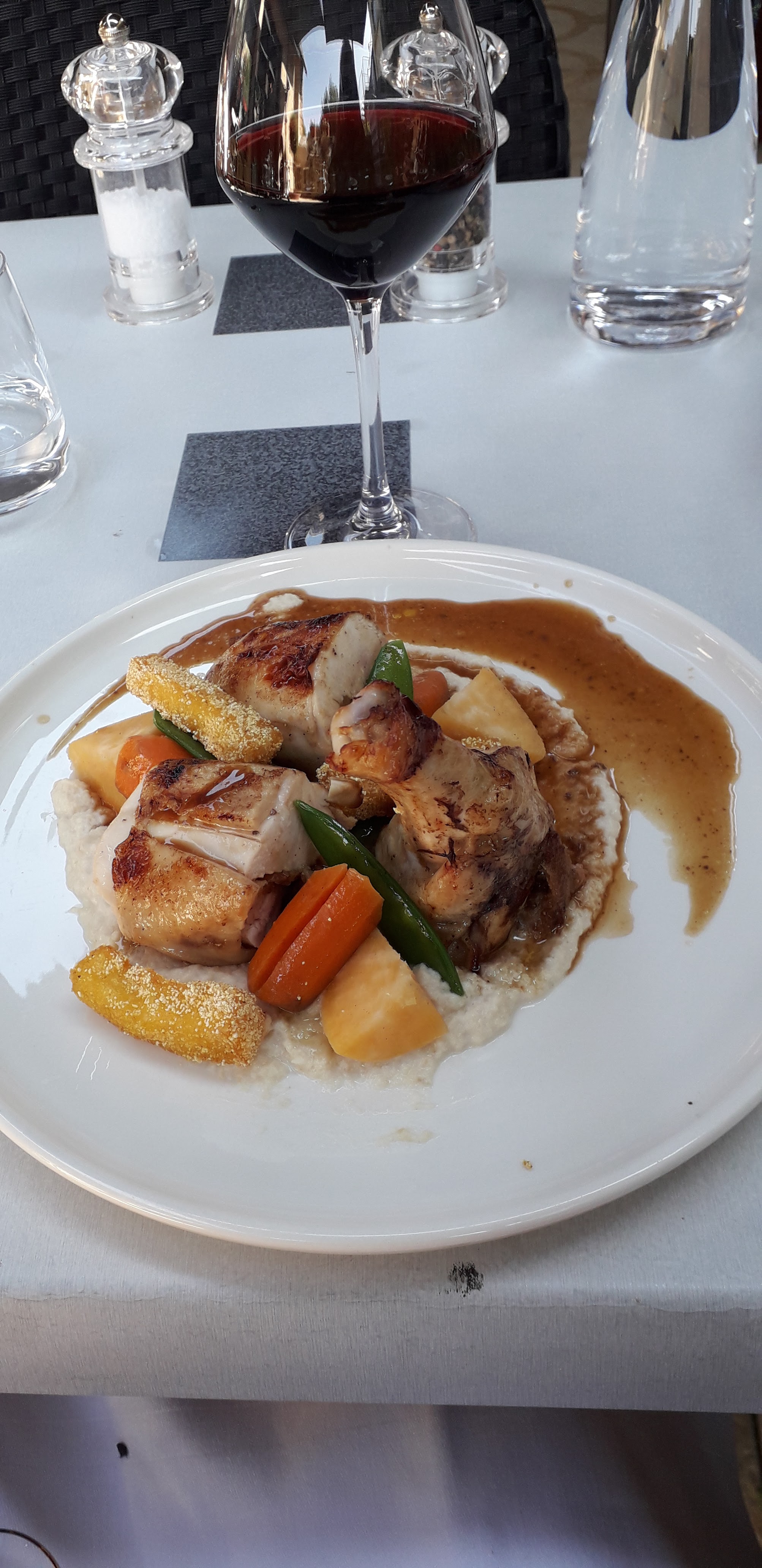Superbe cuisine raffinée, copieuse, et gouteuse, avec une cuisse de poulet servie sous cloche whaaaou trop bon en plus avec un dessert au citron exelent chapeau chef Je recommande vivement et a bientôt