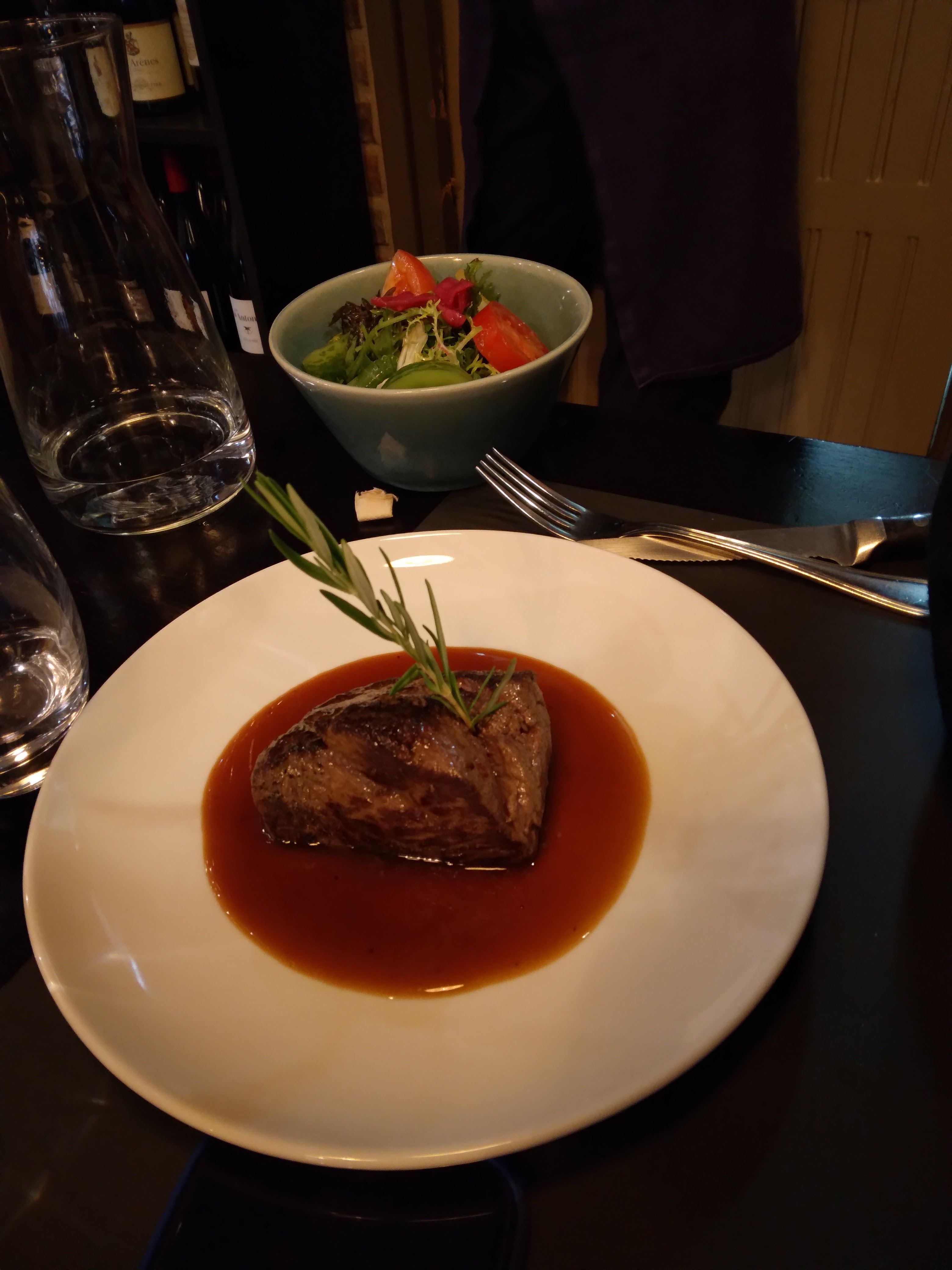 Je recommande la pièce de bœuf et son jus : un régal ! Ainsi que le crémeux chocolat ! 😮 Service très aimable 👌👍 L'ambiance est très réussie (mais la pièce un peu petite pour accueillir un grand groupe. Qui rit. Beaucoup. Juste a côté. ^^) Prix très correct, en particulier pour la région. Merci au personnel d'offrir cette expérience fort sympathique !