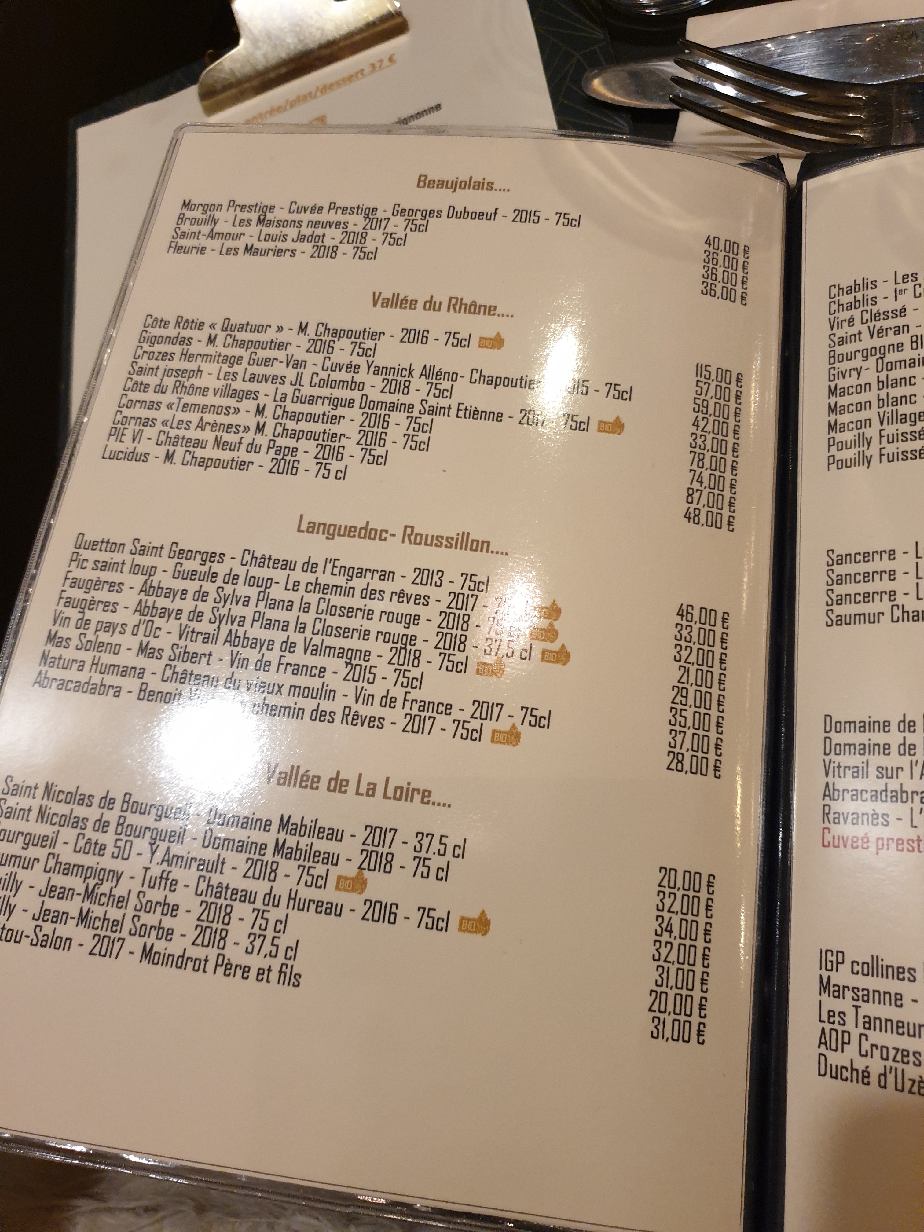 La carte est trop chère (38€ entrée/plat/dessert) pour ce que l'on mange. C'est bon, mais je ne mettrais pas au-delà de 28€... Déçue par les plats, les deux fois où j'y suis allée. J'avais gardé un très bon souvenir d'il y a quelques années, mais depuis depuis le changement de propriétaire, la carte est beaucoup moins raffinée et fait bistro plus que gastro. Le temps d'attente est aussi très long : pour un repas le midi nous avions mangé en 2h, et ce soir, au moins 1/2h pour venir prendre la commande ! Bref, plus joli que bon, trop cher, trop long et un peu surfait. Dommage...
