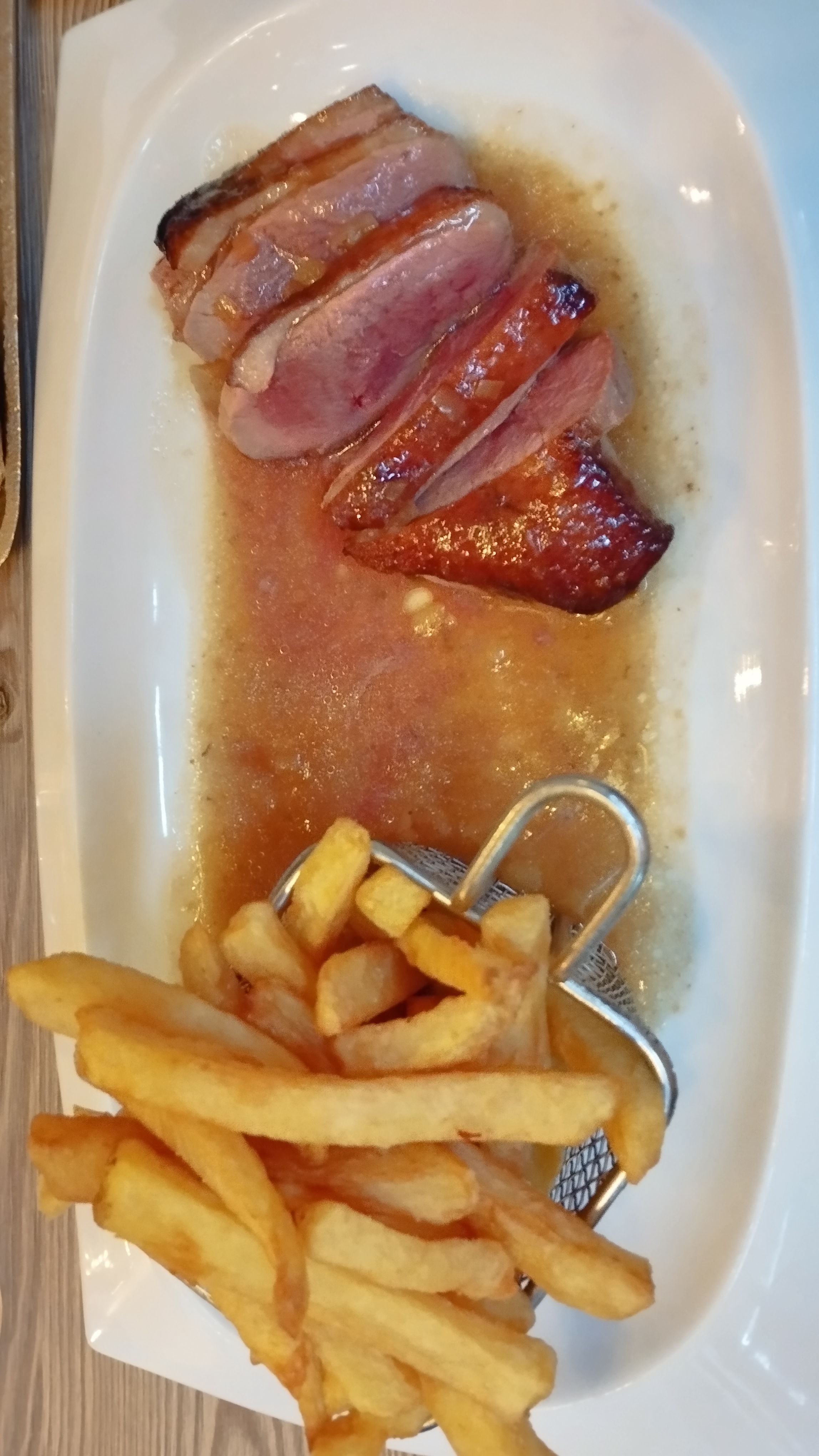 Repas excellent un bon foie gras présenté originalement, Un magret de canard rose comme demandé, avec des légumes de saison dans un bouillon excellent, bien relevé. Félicitations à la brigade et à la chef qui fait face pendant le coup de feu sans se departir de son sourire . J y retournerai sans hésiter!!!