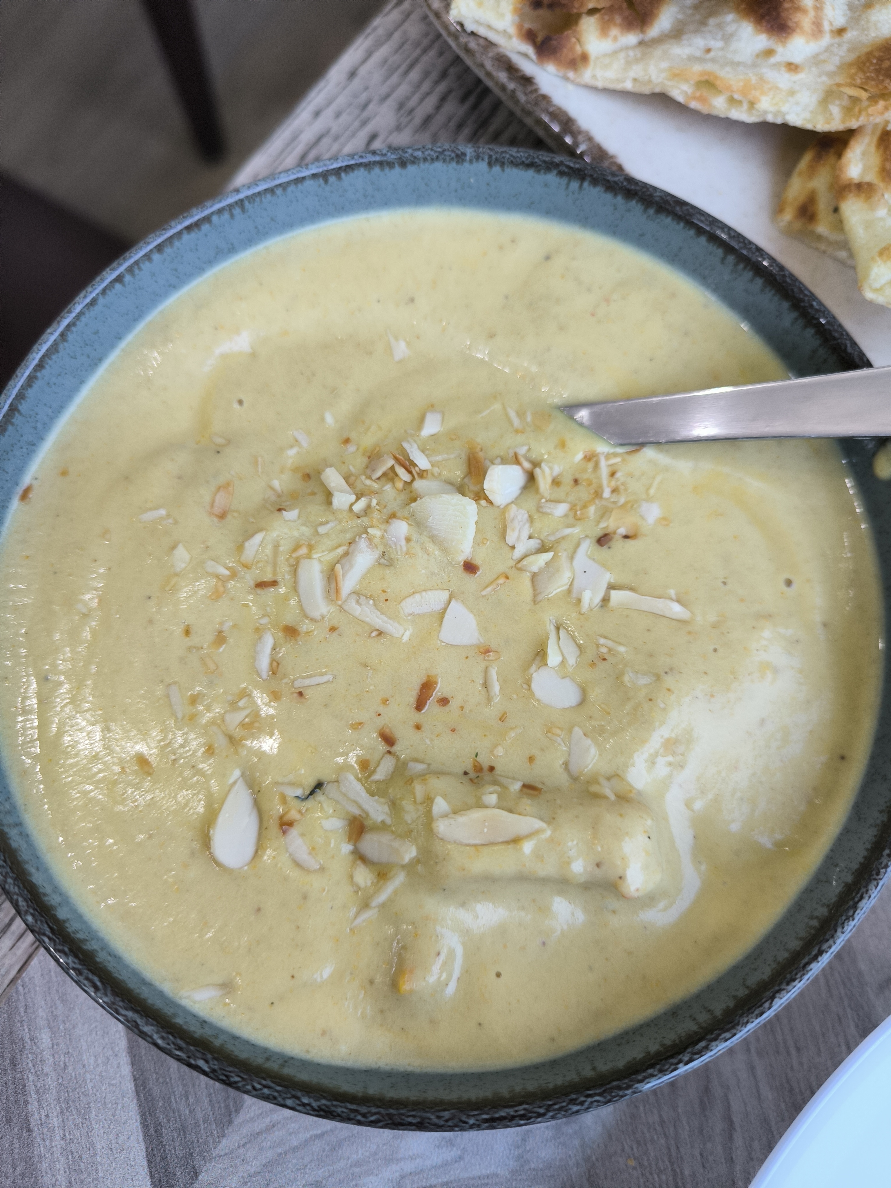 Sérieusement bon curry - tout ce que nous avons mangé jusqu'à présent a été délicieux et les plats ont un goût différent les uns des autres, contrairement à la plupart des restaurants indiens où tout a plus ou moins le même goût, peu importe ce que vous commandez ! Cohérent aussi - nous sommes revenus plusieurs fois. Premier cours 👍🏻