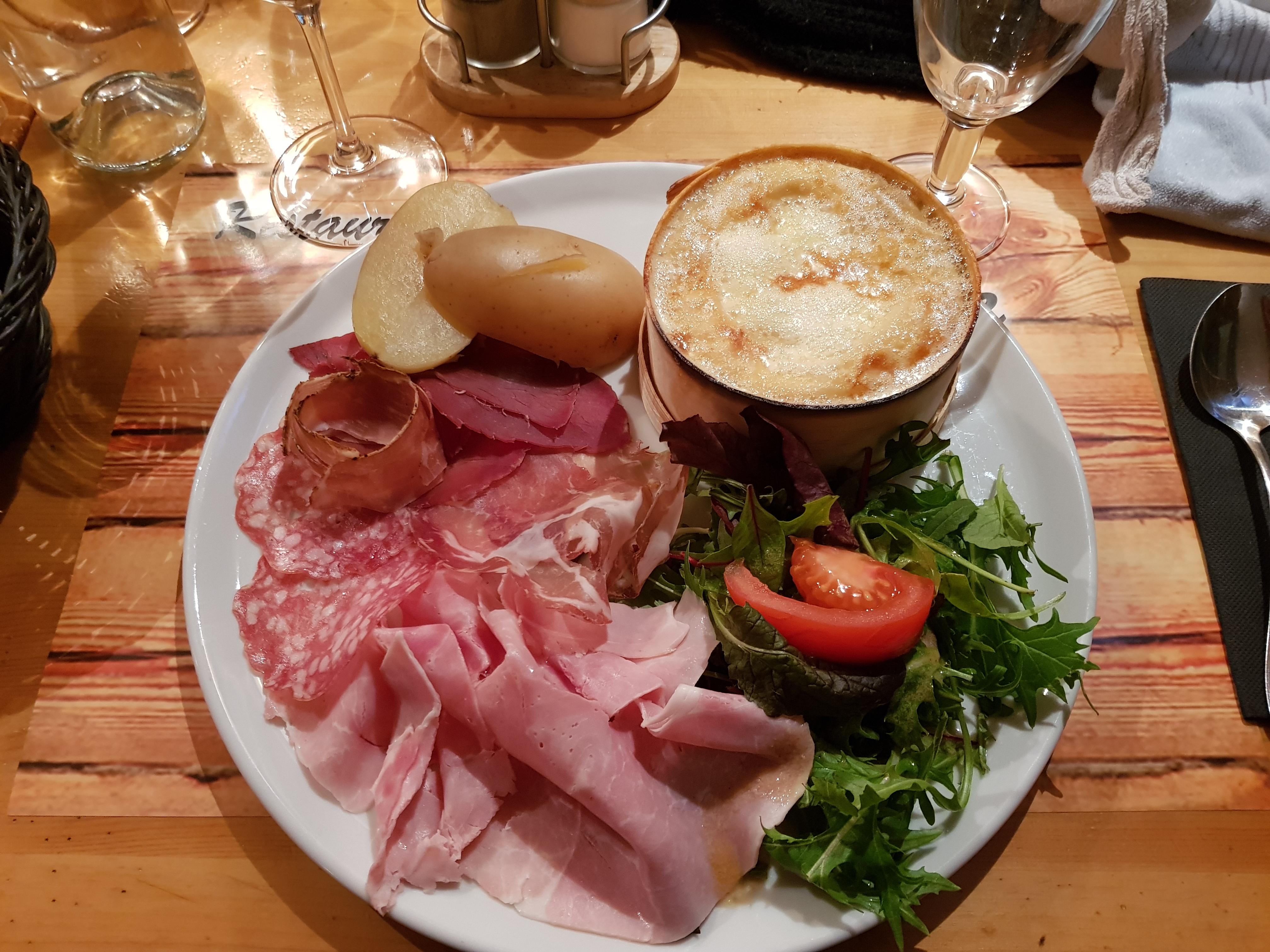 Raclette à l ancienne avec une belle tome. Bien régalé mais un peu cher à mon goût par rapport au plat. Beau lieu.