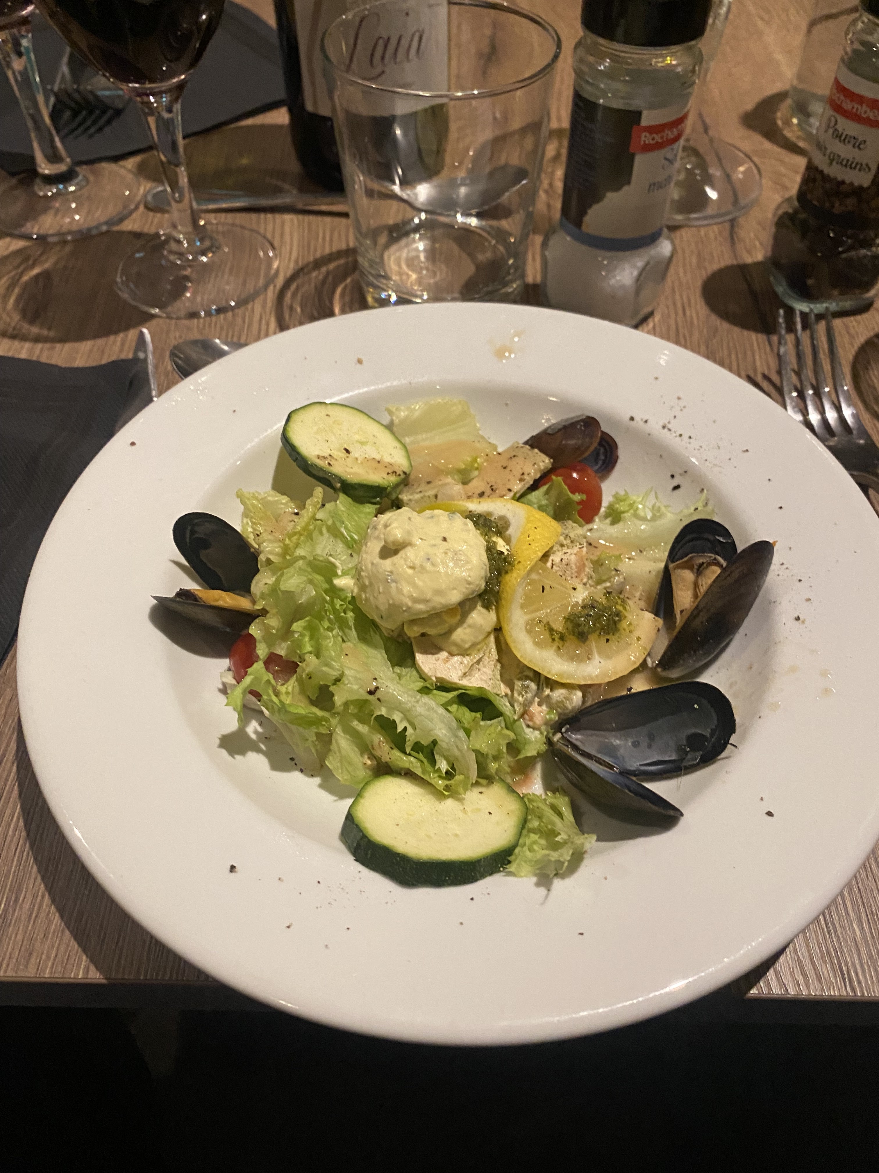 Accueil chaleureux, le chef a régalé nos papilles, nous revenons demain soir, merci 😍, merci à notre hôte dont nous avons apprécié l humour .