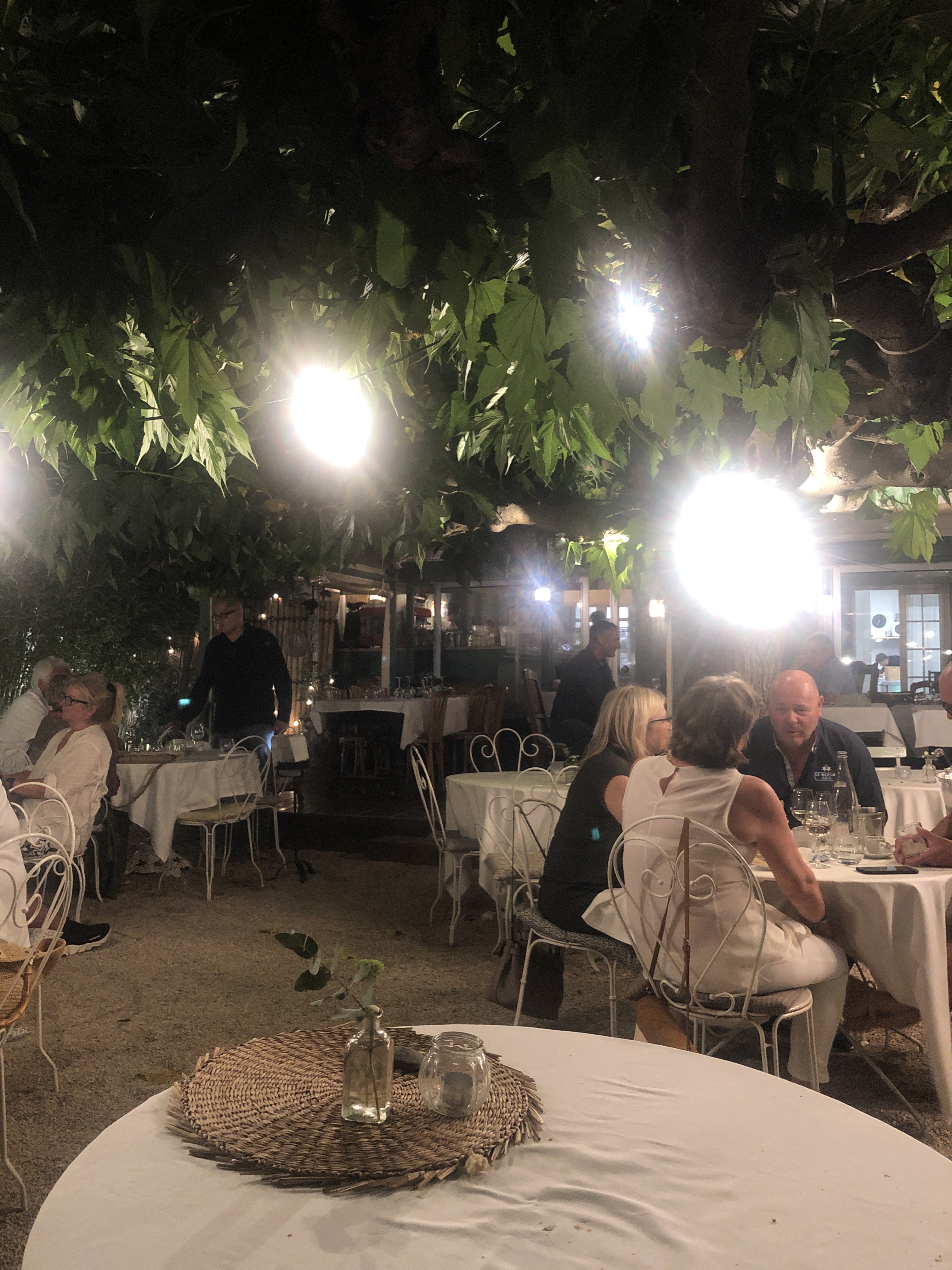 Excellente adresse, beau cadre, cuisine au feu de bois et addition normale hors des délires tropezien. Dîner en famille dans un jardin cosy et tranquille. Pensez à Reserver à l'avance. Équipe pro et attentionnée. Bonne cuisine. Prix normaux (46€ le bar de 700g pour 2, apéro à 4-6€ pour les enfants, excellente pana cotta en dessert, glace artisanale...