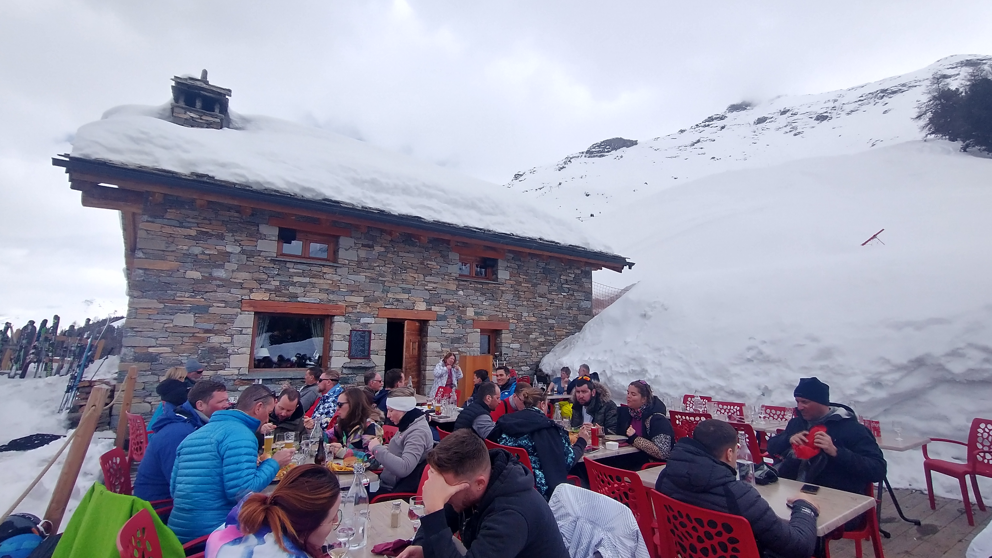 Un bon endroit pour faire une pause après de nombreuses descentes de pistes. Nous avons eu la bonne surprise d'y rencontrer Jérôme de Verdières et Stéphane Rose (équipe Revue de Presse) 😂