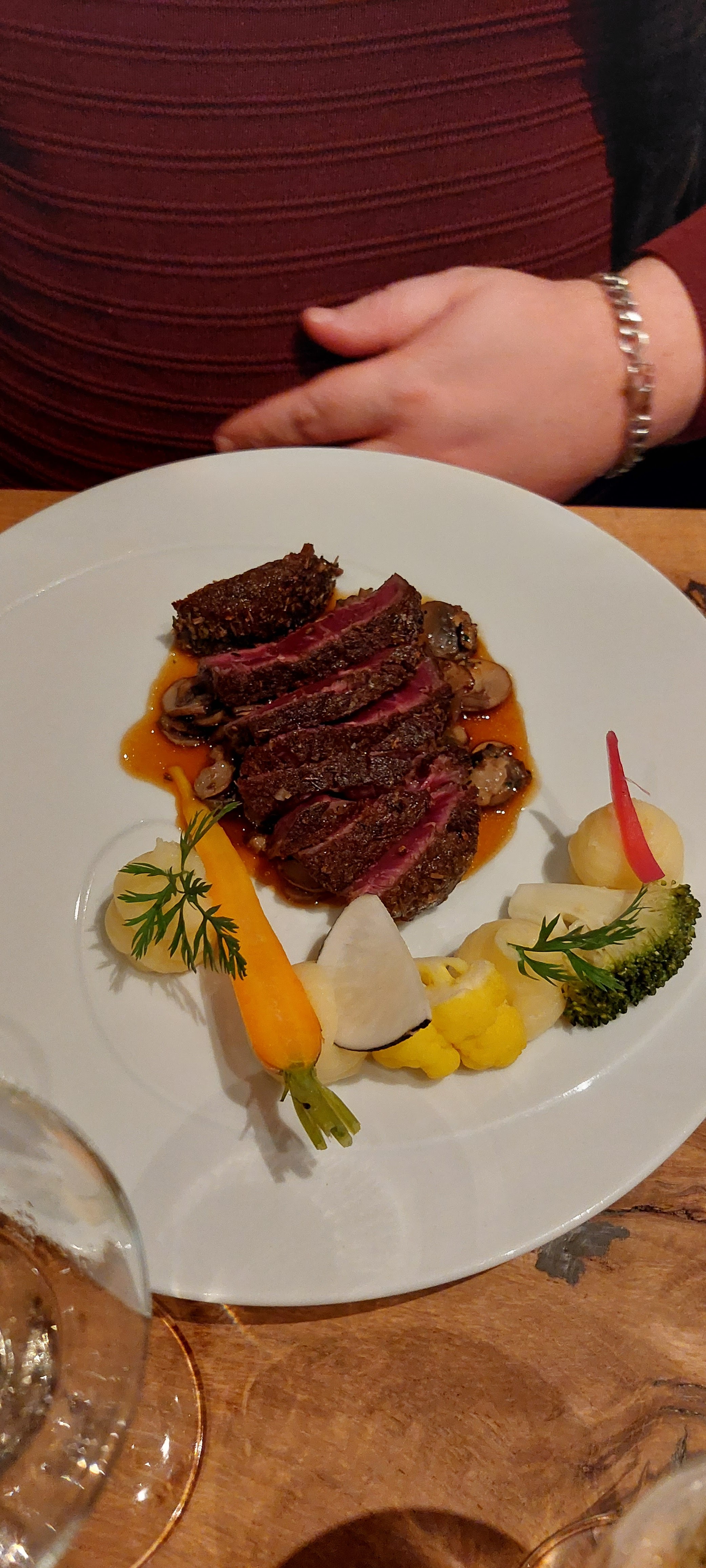 Excellent de l’entrée au dessert. Très bon vins! Personnel agréable et de bon conseil. Je recommande ce restaurant. Nous avons passé une agréable soirée.
