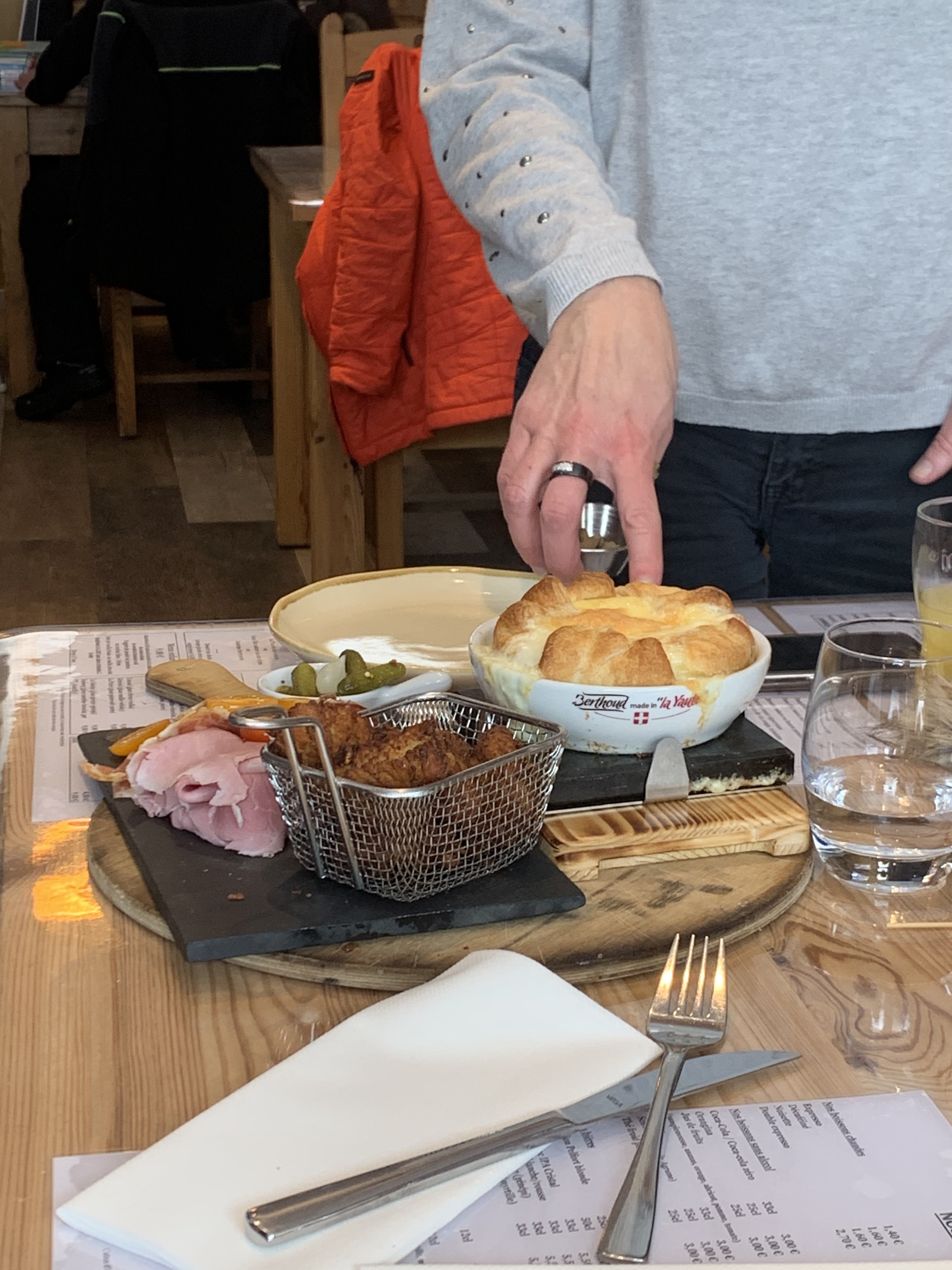 Plâts de la région, fait maison, avec des produits de qualité. Pour un prix honnête (comptez un peu moins d'une vingtaine d'euros sans le vin) on fait un repas de la montagne qui remplit bien, et sacrément bon. N'ayez pas honte de tremper les beignets de pomme de terre dans la fondue aux ceps, c'est magique !
