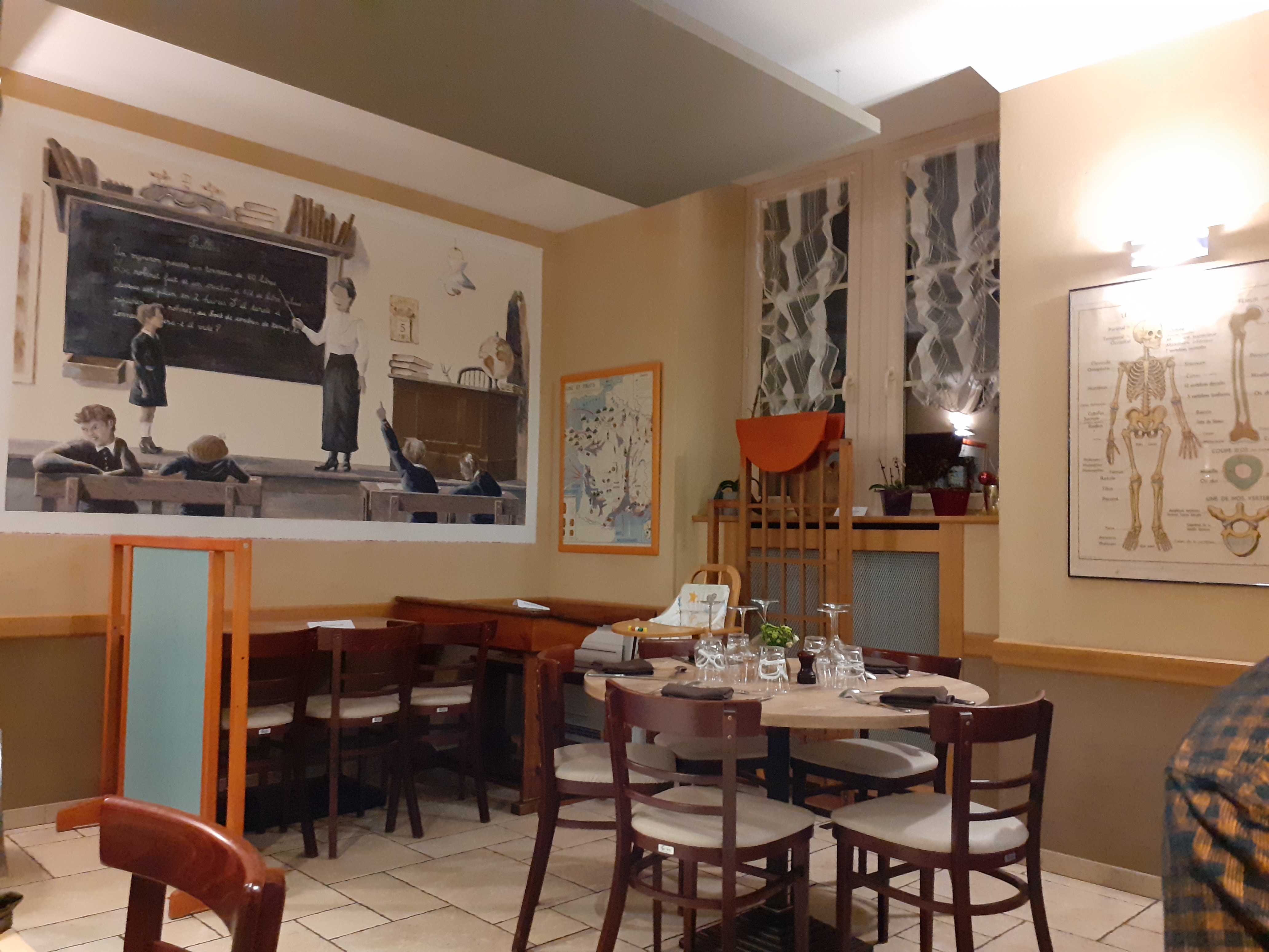 Quel bonheur de se replonger dans la classe de notre enfance où les seuls devoirs sont de choisir ses plats et les bons points, de les déguster. La cuisine est originale et de très bonne qualité. De l'entrée au dessert on se régale et on peut le dire avec plaisir au chef lorsqu'il circule en fin de service. N'hésitez pas à vous offrir ce petit voyage dans le temps, vous ne le regretterez pas !