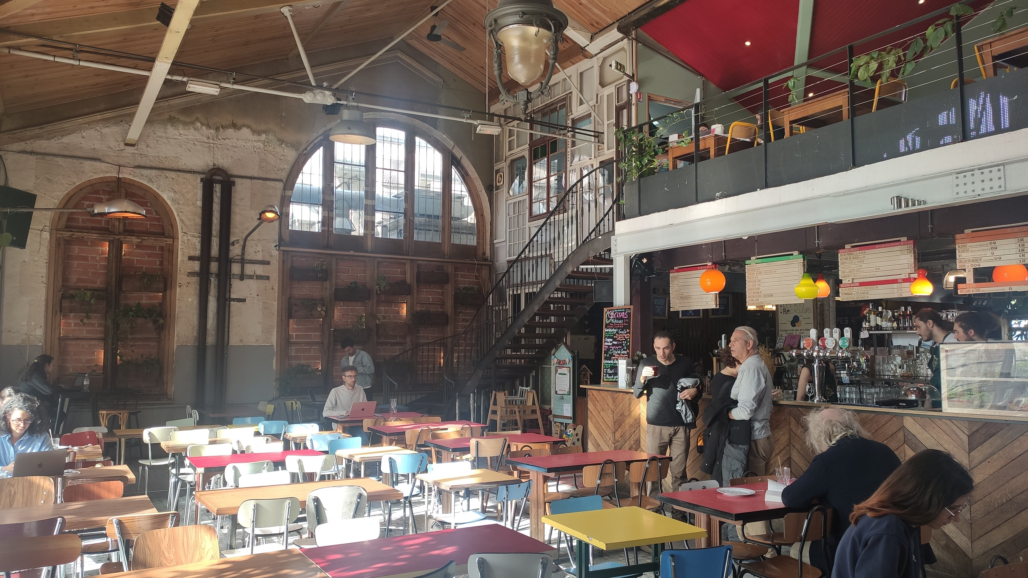 Un tiers lieu convivial, où l'on se sent bien. On déstresse, on profite, on travaille, en sirotant une boisson délicieuse et en mangeant de bons petits plats sains et équitables. On peut aussi profiter de l'atelier bricolage (cours ou utilisation des outils), acheter des habits de seconde main, assister à des animations. Un chouette lieu dans une ancienne gare de la petite ceinture, juste devant une station de métro.