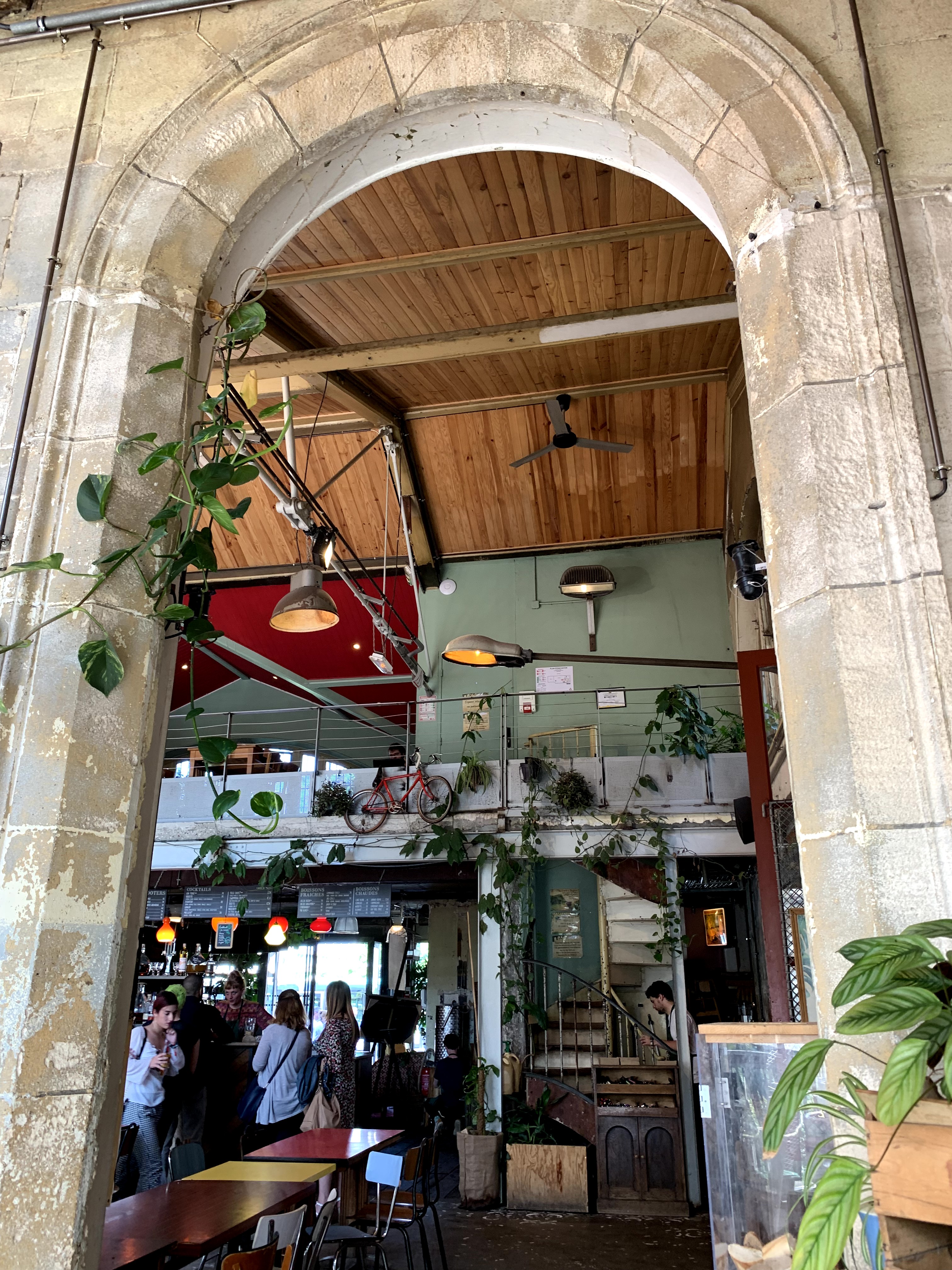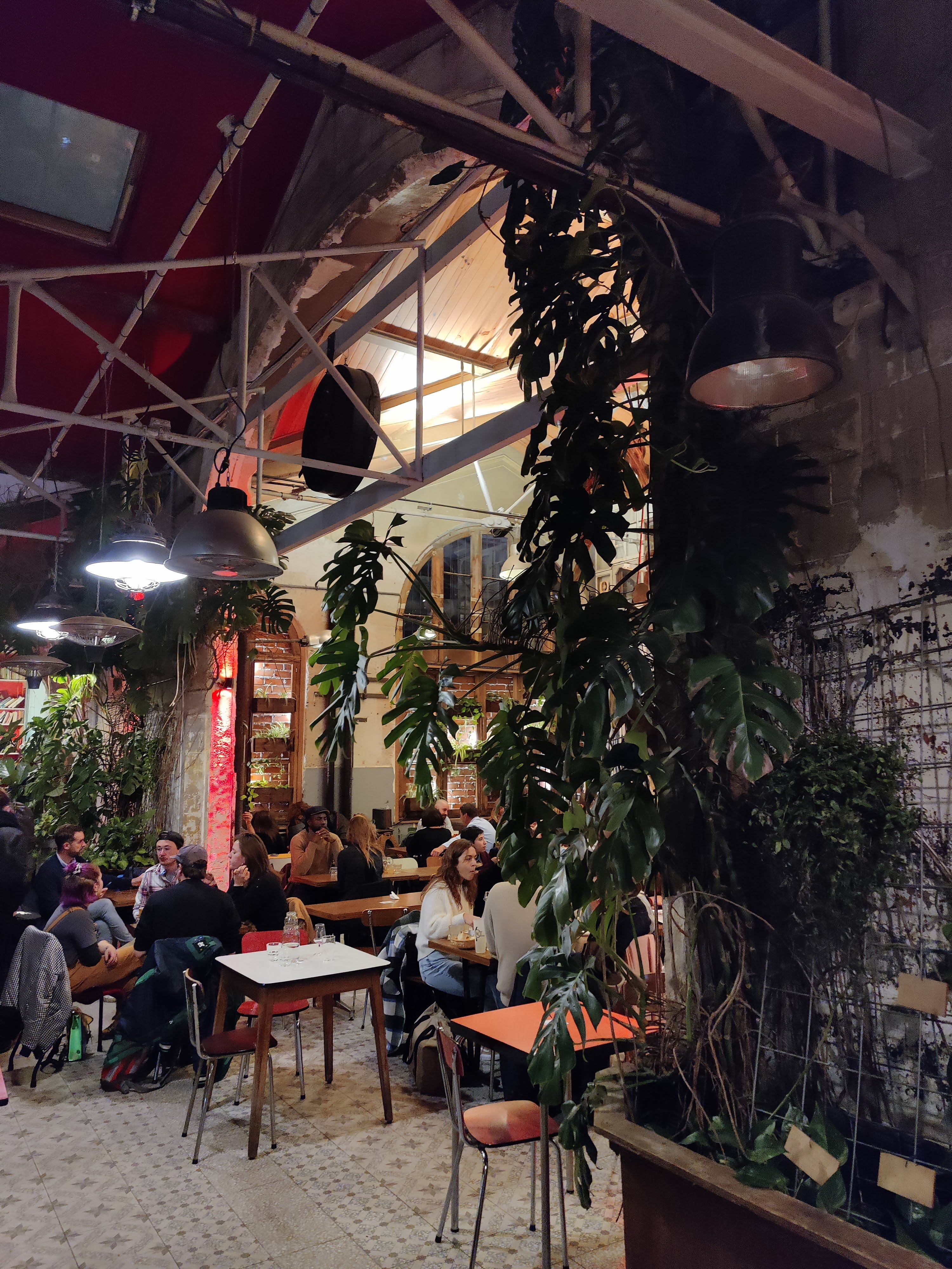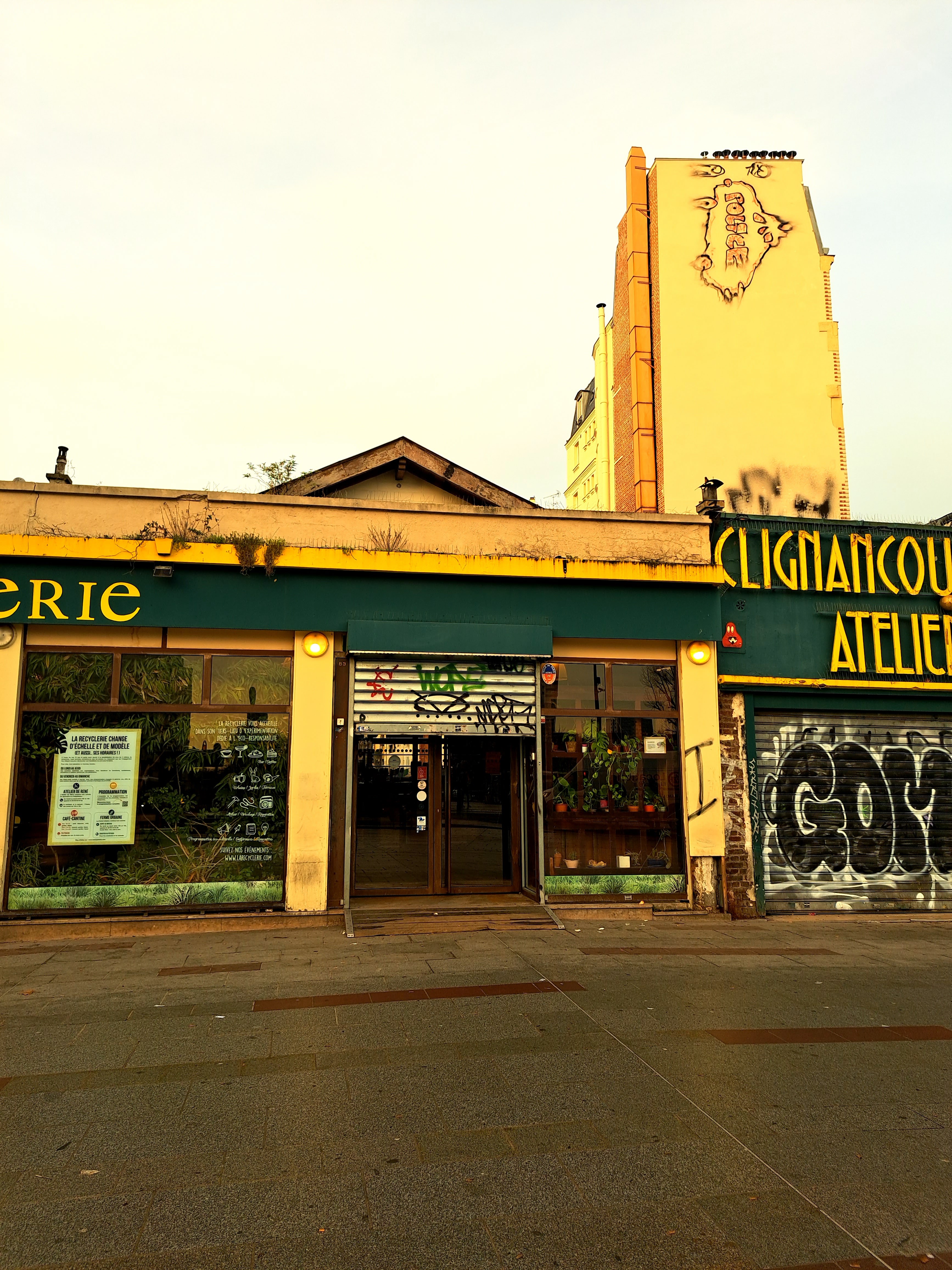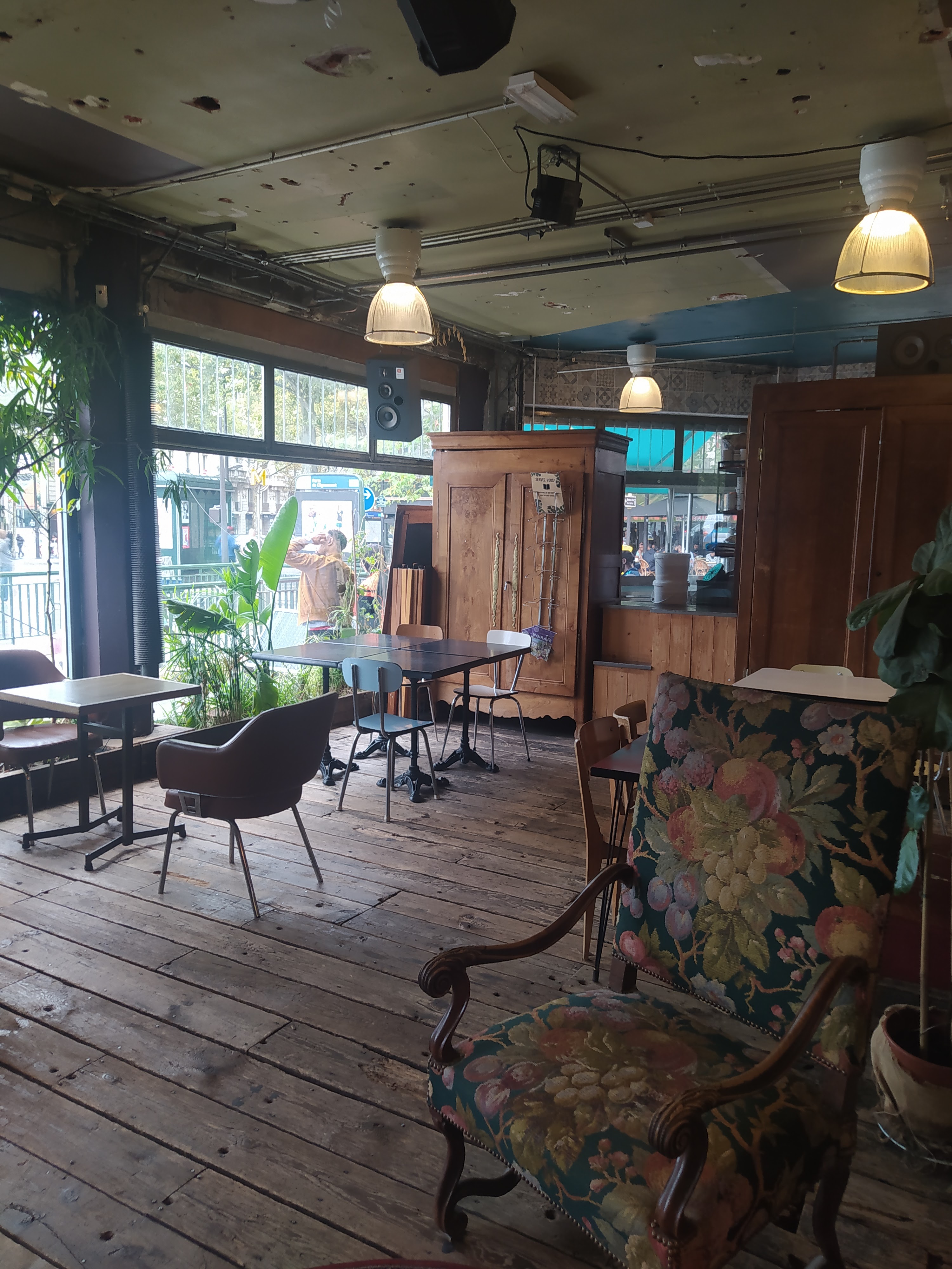 Je peux pas vraiment parler pour les autres aspects de la Recyclerie mais j’adore le coin café/restauration (seulement ouvert du vendredi à dimanche ) avec de très bonnes pâtisseries, des plats sympas, un café plutôt bon, et des serveur•ses trop mims et serviables. Bon, faut compter 8€ pour un cappuccino et un carrot cake mais le cadre les vaut. Ancienne gare, on voit plusieurs éléments de recup, la déco met dans la l’ambiance, y a des chats et des plantes. Bref, c’est cool pour bosser la journée, chiller avec ses potes en soirée, y a des ateliers réparations, souvent un coin fripes et une partie extérieure sur la petite ceinture avec terrasse et agriculture urbaine. Deux choses à redire, la musique est un peu forte et les prix sont pas très bas, voilà