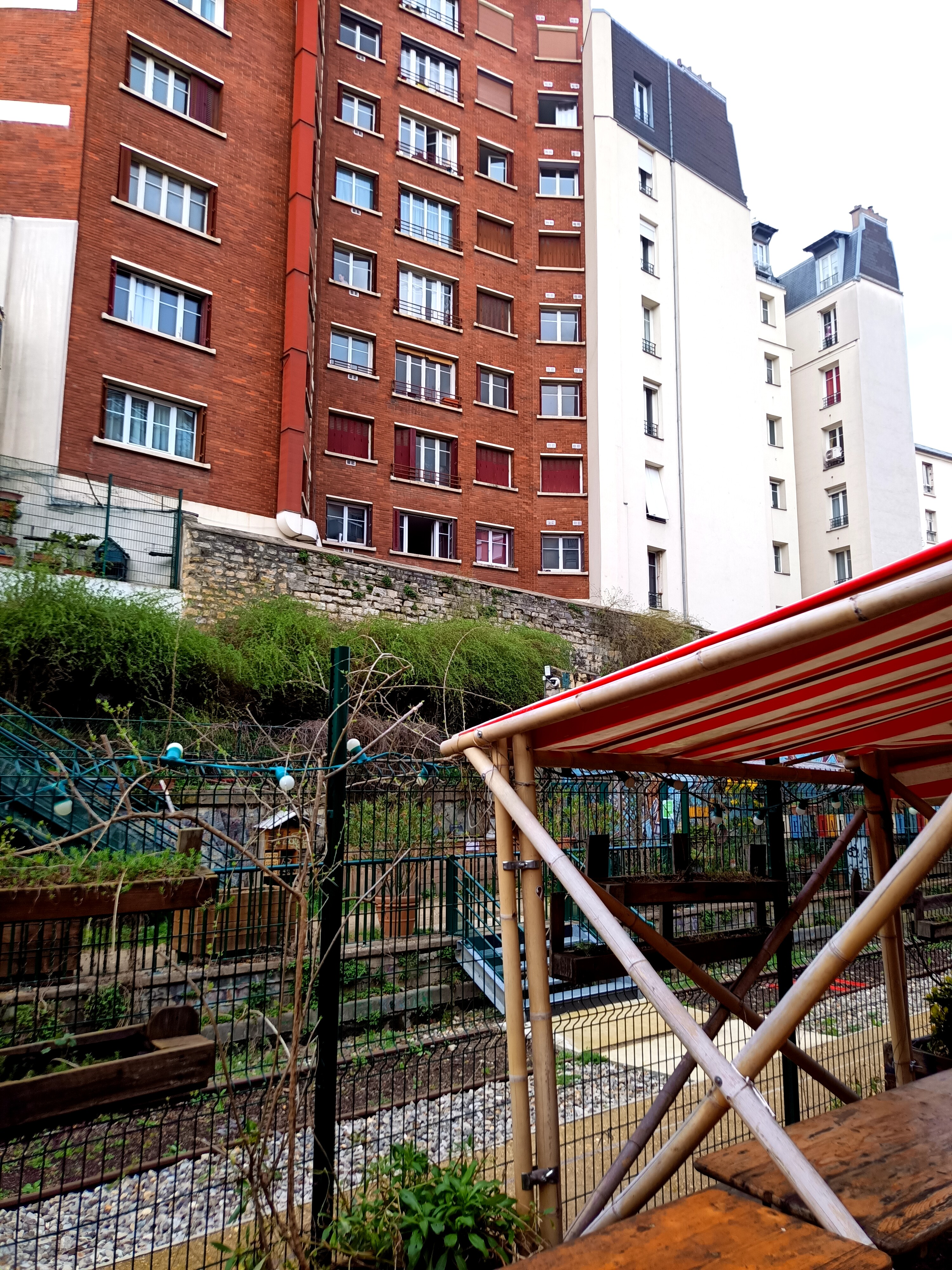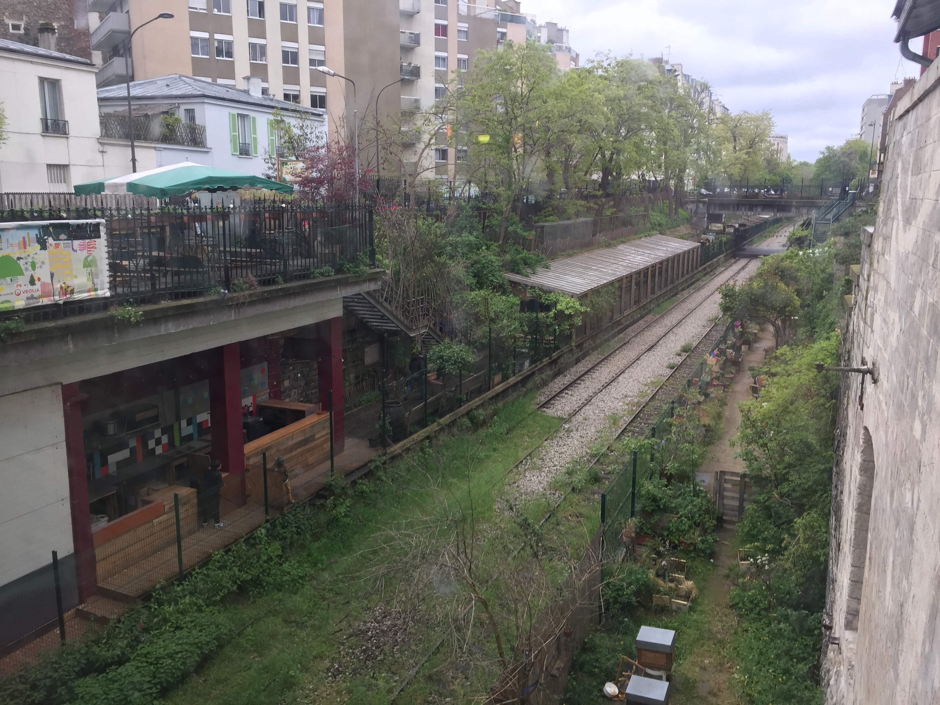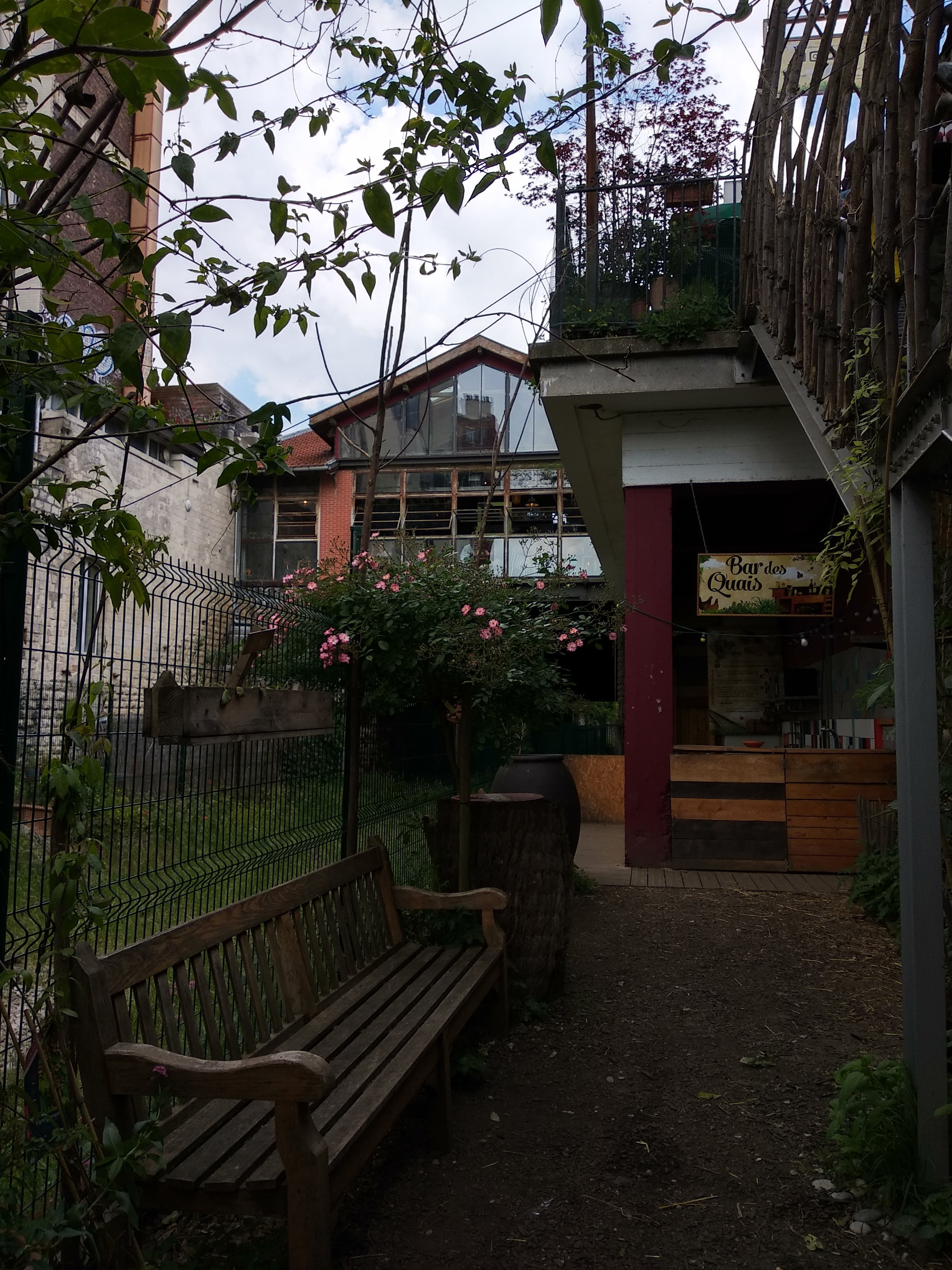 Ce bar éco responsable est situé juste en bas de chez moi à la sortie du métro porte de Clignancourt sur les anciens rails de la petite couronne, j'aime beaucoup y emmener mes enfants. C'est un super endroit ludique pour les enfants (il y a des poules et des poissons qu'ils peuvent nourrir) tout comme pour les adultes (conférences et débats y sont organisés, on peut y emprunter un livre ou faire réparer un appareil électroménager...). Honnêtement c'est un endroit très sympa.