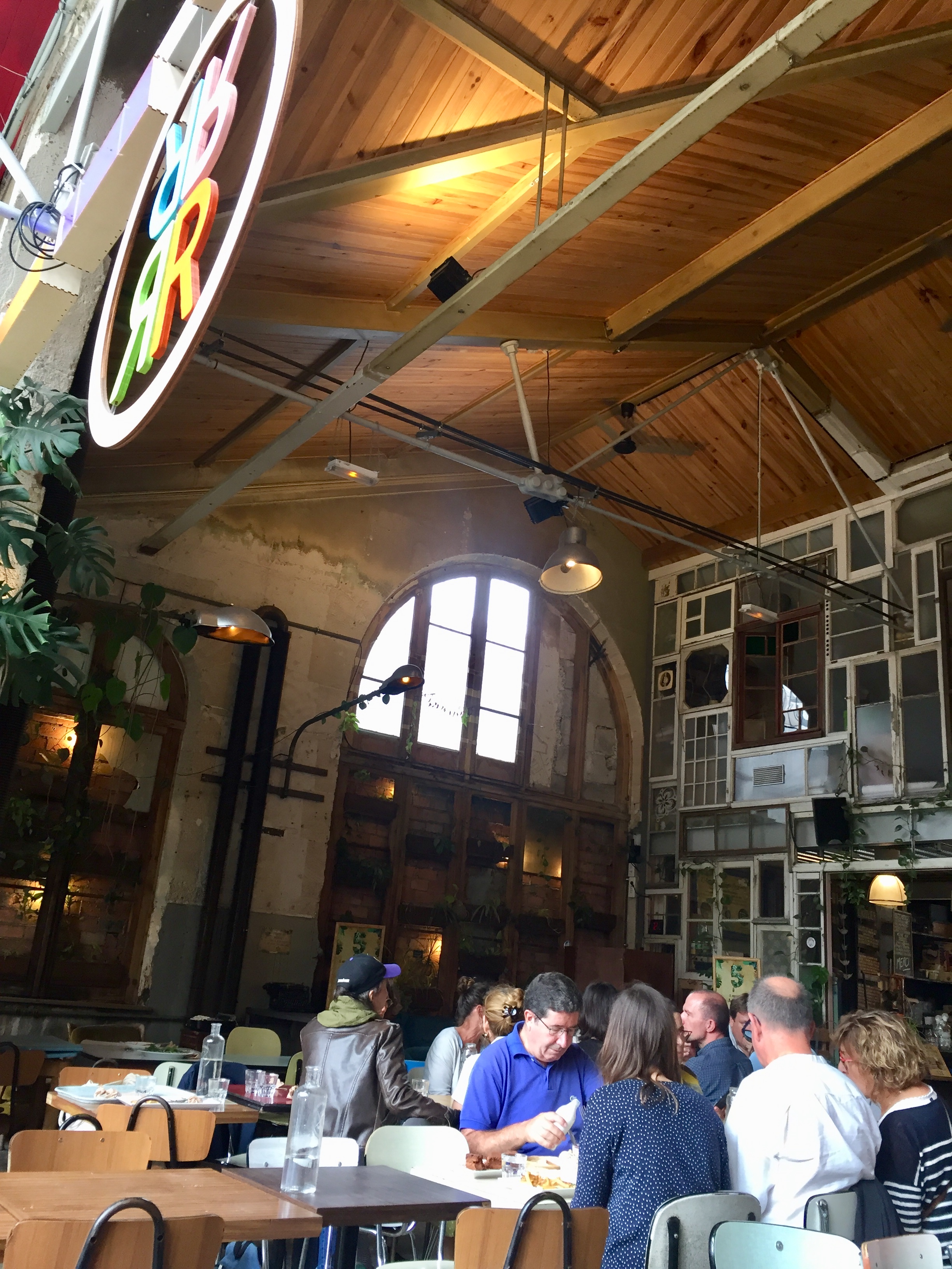 Super endroit pour bruncher, en même temps on a droit à assister à différents atelier de réparation ou de création d'objet. Un lieu hors du commun ou se mêle modernité et ancienneté, Les animaux pour les enfants, une pétanque le long des anciens quais, et sans oublier le bar en bord de quai pour le bonheur des verres de fin de journée..