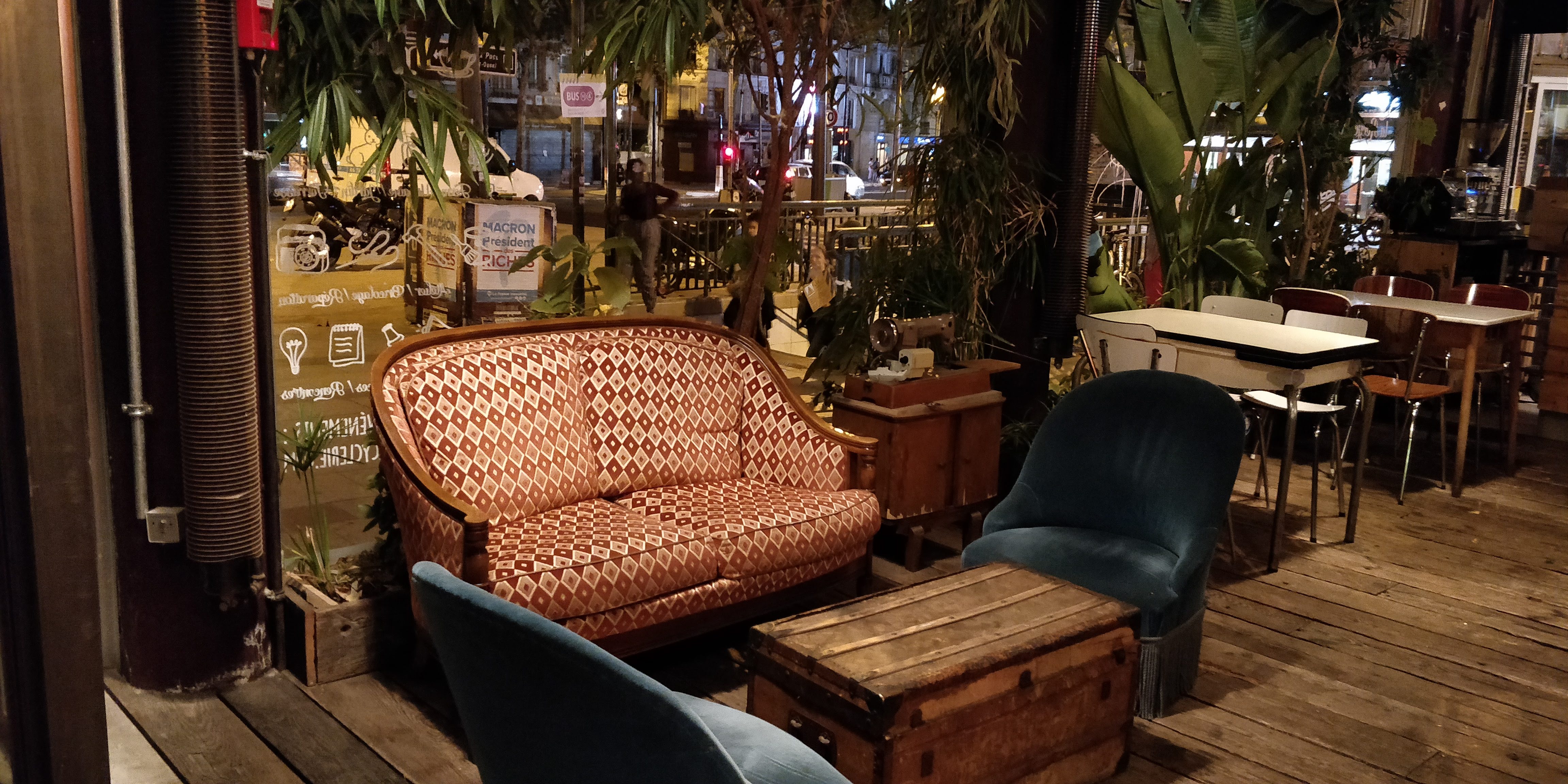 C'était très sympa au début, désormais le service, l'ambiance intérieure, le confort réel est comme l'extérieur de l'établissement, façade et rue, médiocres, malpropres voire glauques si on regarde de plus près. Attention aux vols. Dommage car les ressources pour se poser au calme sont inexistantes dans le quartier pour les étudiants et coworkers :( Fermé maintenant en semaine. Il doit y avoir un lien