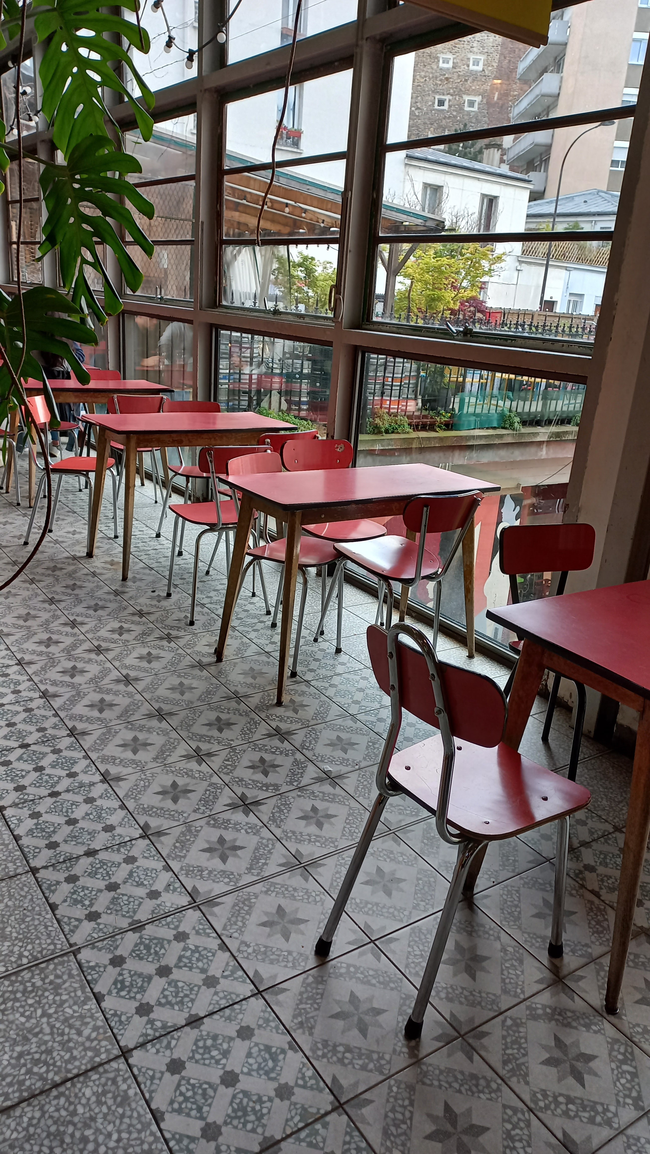 Endroit très agréable avec de belles hauteurs sous plafond, meubles esprit brocante et une superbe vue sur la petite ceinture. Bref un lieu très chaleureux où nous avons bien mangé pour un bon rapport qualité prix ! À refaire aux beaux jours pour profiter des extérieurs !
