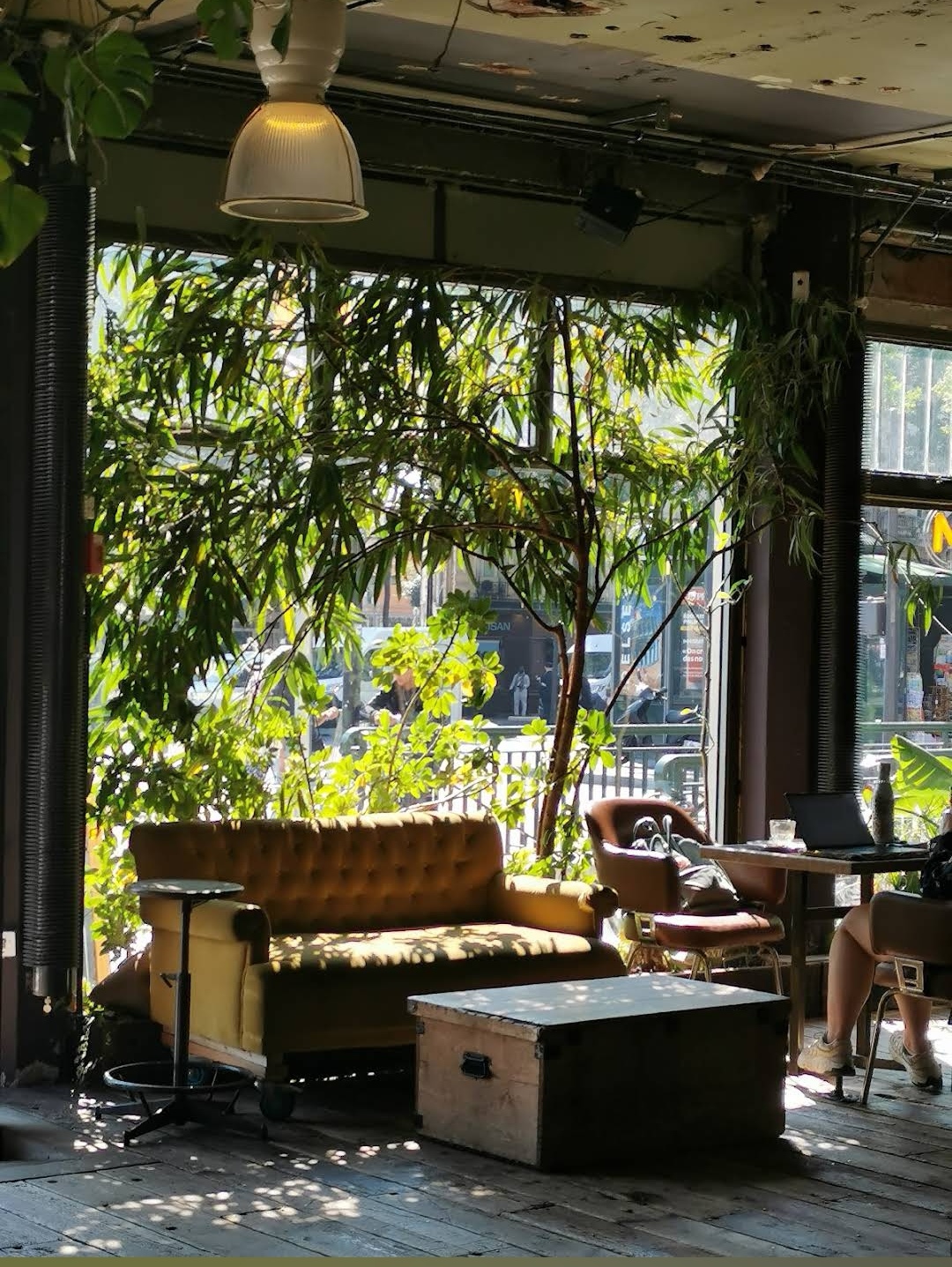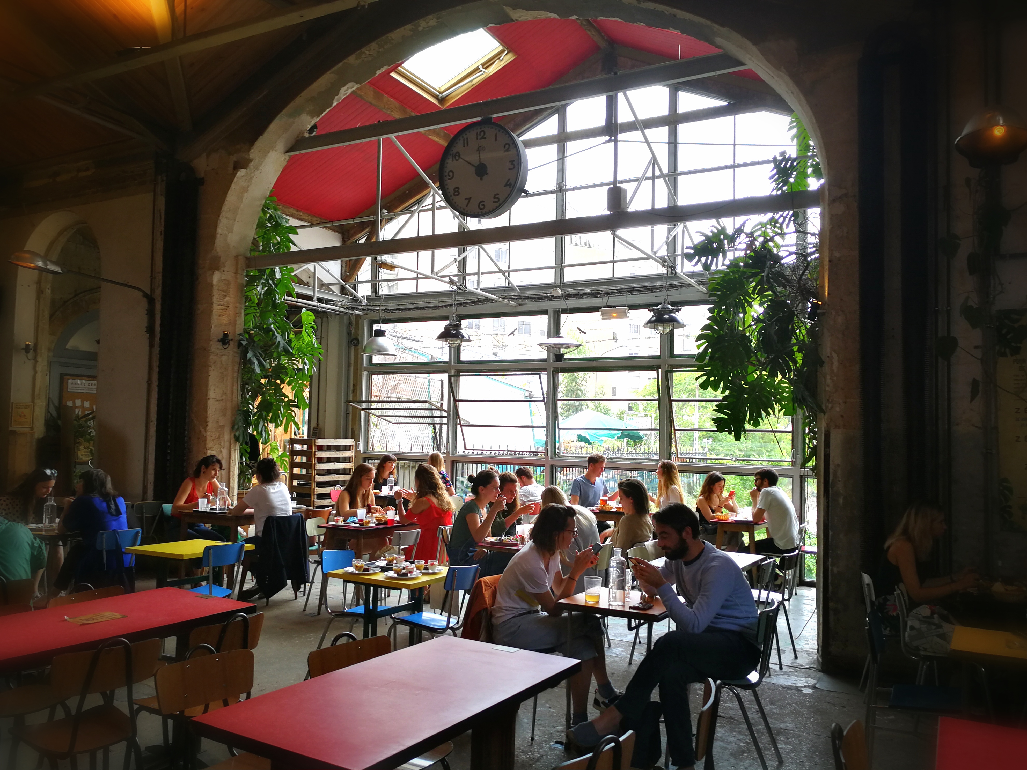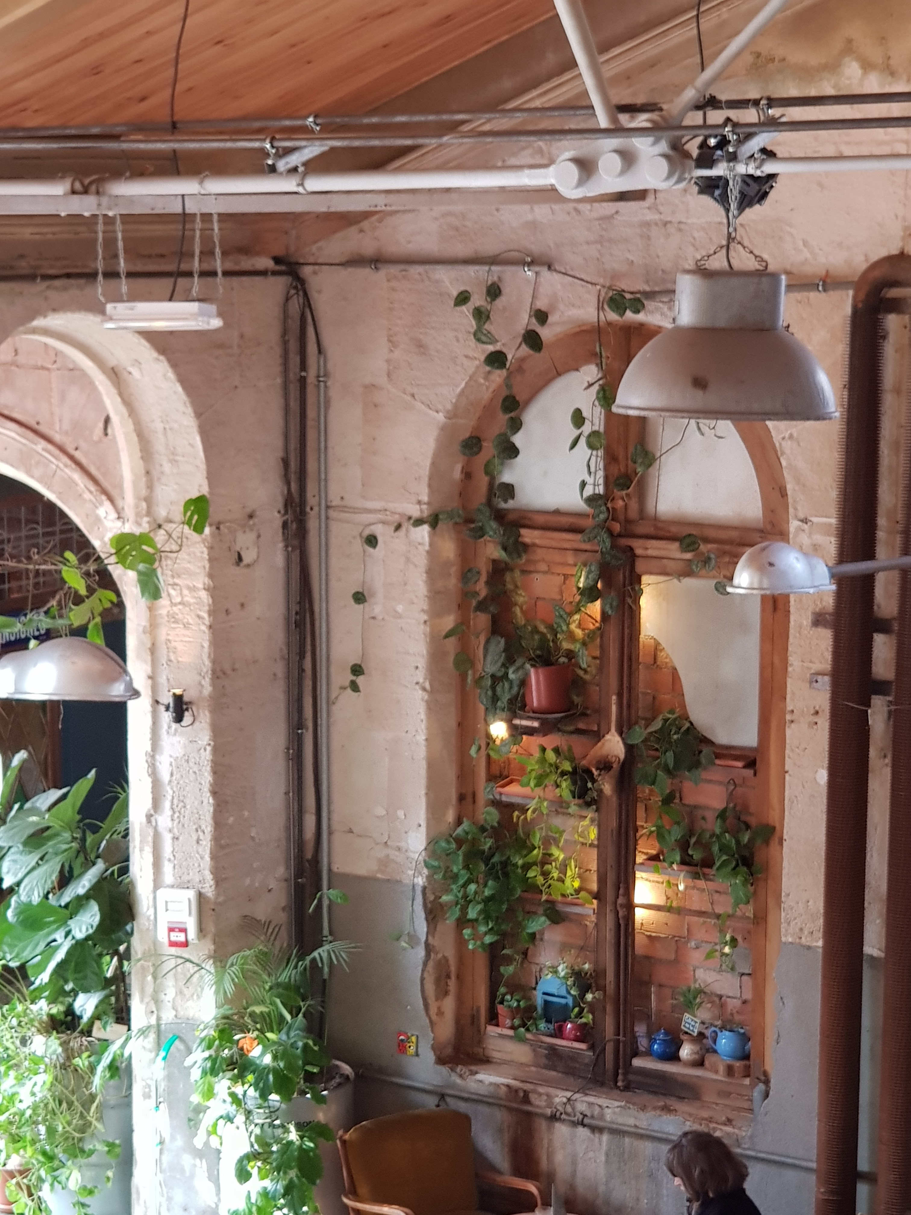 Endroit génial avec beaucoup de meubles à usage de recyclage vinatage. Le café fait la promotion du respect de l'environnement et du bio-vert, construit sur une ancienne voie ferrée qui est tellement cool ! La file d'attente était folle pendant le brunch. Ils servent du pain et des confitures et une boisson pour 5€, 25€ pour un petit-déjeuner complet et 20€ pour un petit-déjeuner végétarien. Cet endroit propose également des ateliers hebdomadaires auxquels vous pouvez vous inscrire. Consultez leur Facebook pour plus d’informations sur les ateliers de la semaine.